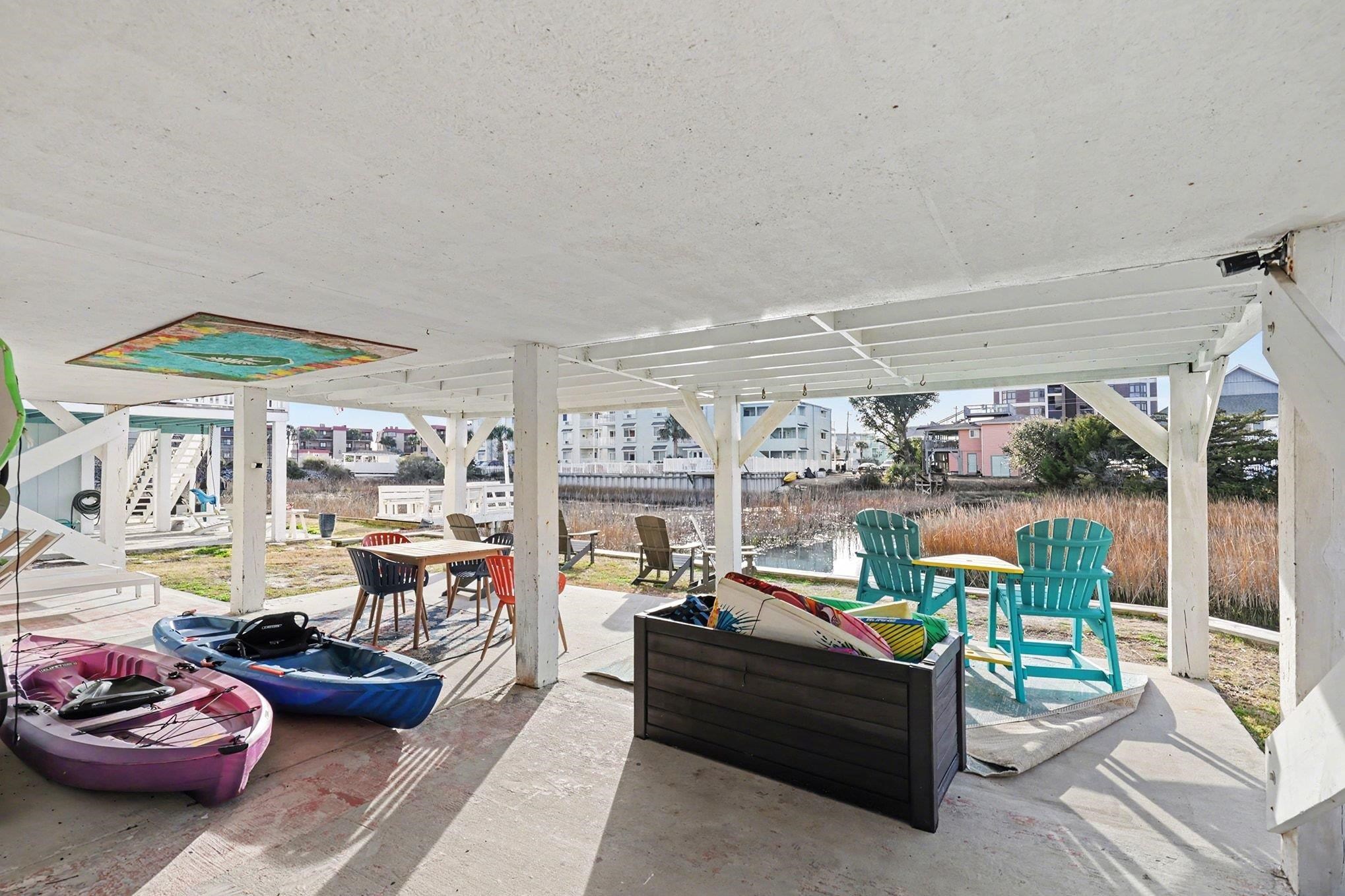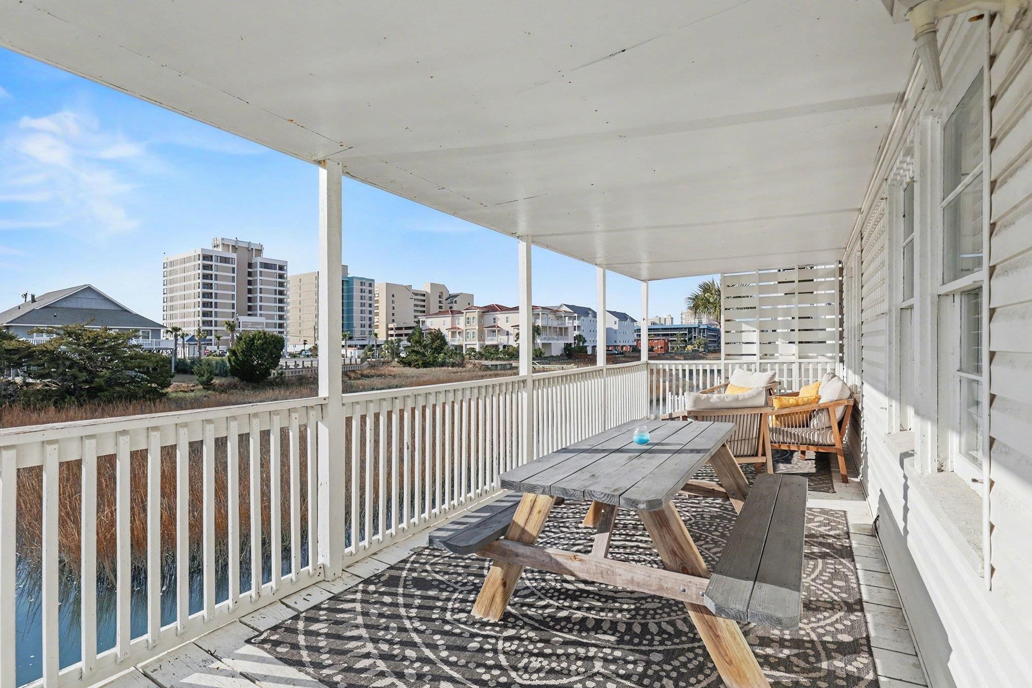 Views of the Ocean and Views of the creek!!! Wonderful 6 bedroom, 4 Bathroom, 2 Kitchens (Technically a Duplex) Beach Home in Cherry Grove Beach!!! Located just 3 homes from the Northernmost point of Cherry Grove Beach. This home has Kayak and Paddleboard access out to Cherry Grove point on the right tide via a creek that comes up directly behind the home. Incredible sunrises and incredible sunsets from the enormous rear balconies. Although this home is technically a duplex it has been rented as a a single home giving renters two separate 3 bedroom 2 bathroom living spaces on the 2nd and 3rd floor. This is an old charming beach house that has retained many qualities of its original construction such as the 1inch tonged and groove paneling and red oak hardwood floors but has been upgraded with modern bathrooms kitchens and fixtures. Both HVAC were replaced since 2020 and a new seawall was added in 2021. Being sold fully furnished, This is a turnkey rental and is flexible in so many ways with the separate units. This is one of the few homes in Cherry Grove that would give you the ability to stay in one unit and at the same time receive rental income from the second unit. Cherry Grove Beach is located in North Myrtle Beach SC and is very close to all the shopping and dining that the Grand Strand has to offer. This is the dream! Make it yours!!!