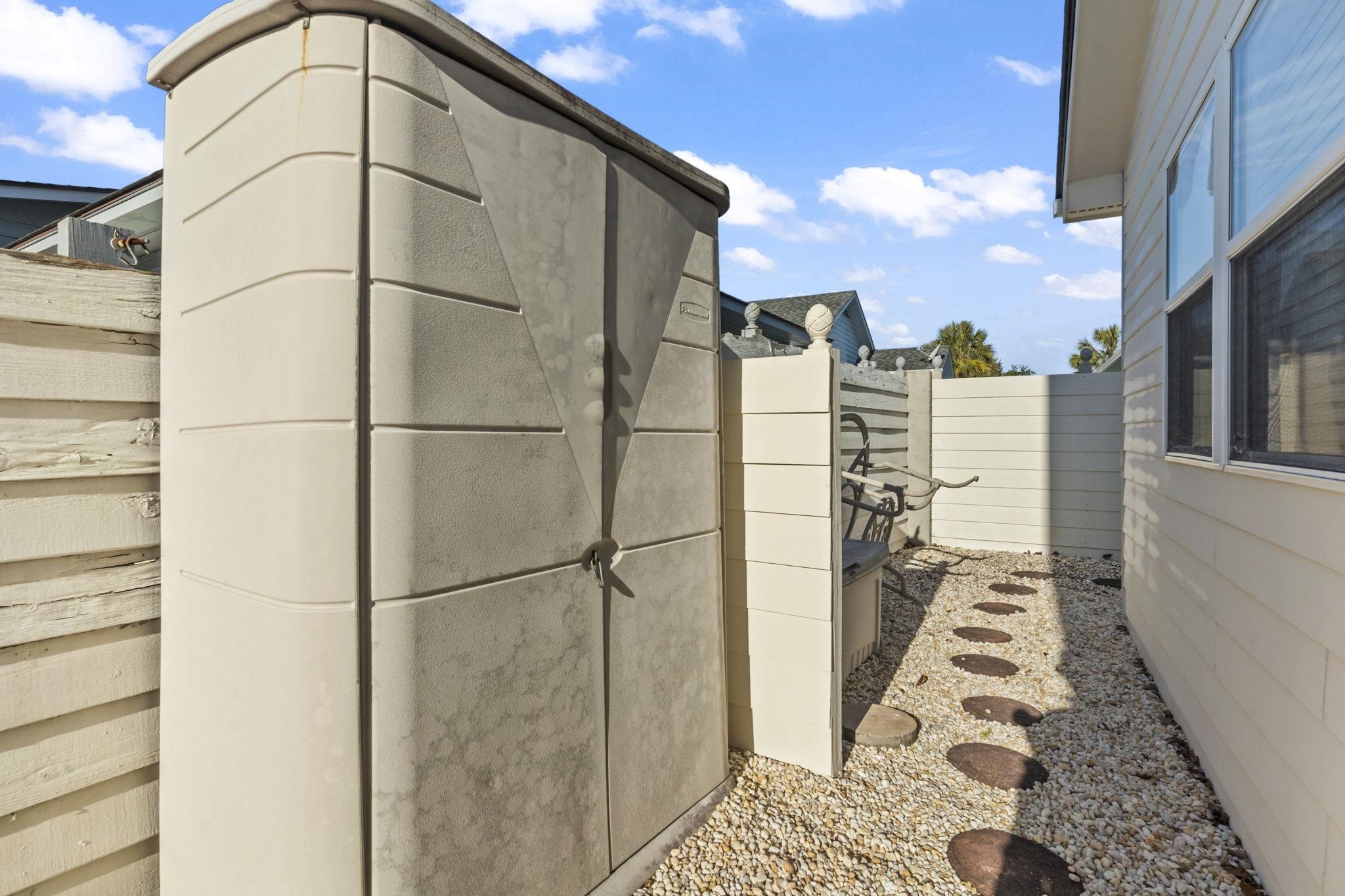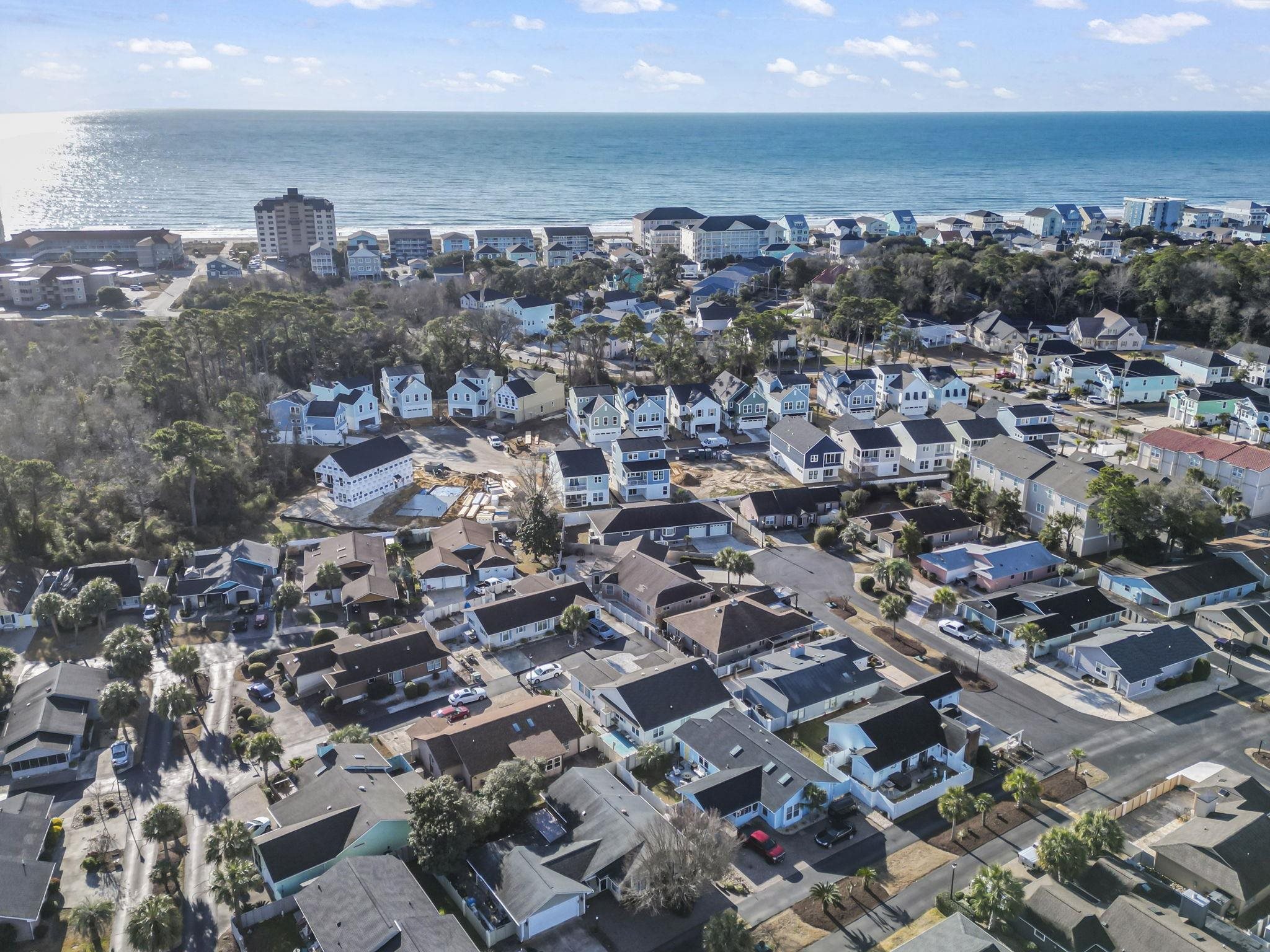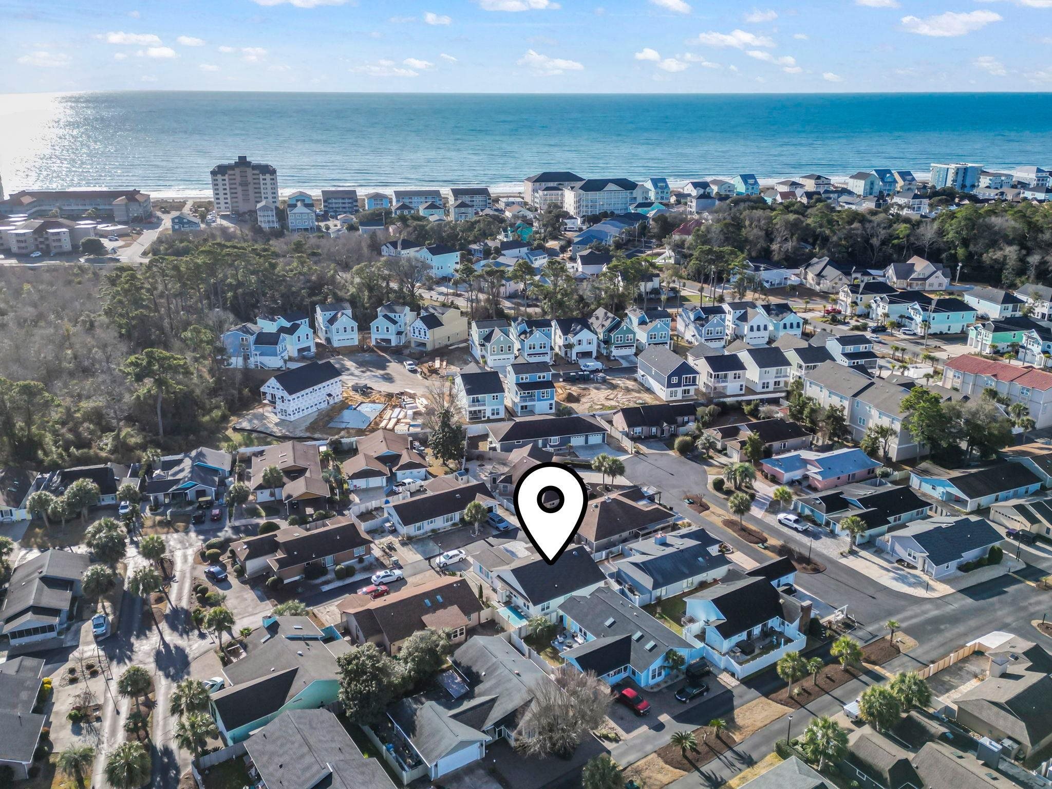 Welcome to 622 Persimmon Ln, a move in ready home in the desirable Ocean Oaks Plantation golf cart community, located less than half a mile from the ocean and just a short walk to the beach. Situated at the end of the street for added privacy and east of Highway 17, this well maintained single story home features 2 bedrooms and 2 bathrooms with an open concept layout, vaulted ceilings, and abundant natural light throughout. Bright LVP flooring installed in 2023 enhances the kitchen, entryway, sunroom, dining area, and bathrooms, creating a fresh coastal feel. The kitchen offers stainless steel appliances, solid surface countertops, a pantry, and ample cabinet space, while the sunroom provides flexible space for a third bedroom, home office, or additional living area. The exterior features durable HardiePlank siding, a one car garage for added storage and convenience, and outdoor living highlighted by a large concrete patio with an enclosed outdoor shower, perfect after a day at the beach. Conveniently located near Barefoot Landing, shopping, dining, golf courses, and entertainment, this property is ideal as a primary residence, second home, or investment opportunity, with major updates including a roof replaced in 2022, hot water heater in 2023, HVAC system in 2018, and exterior paint completed in 2025.