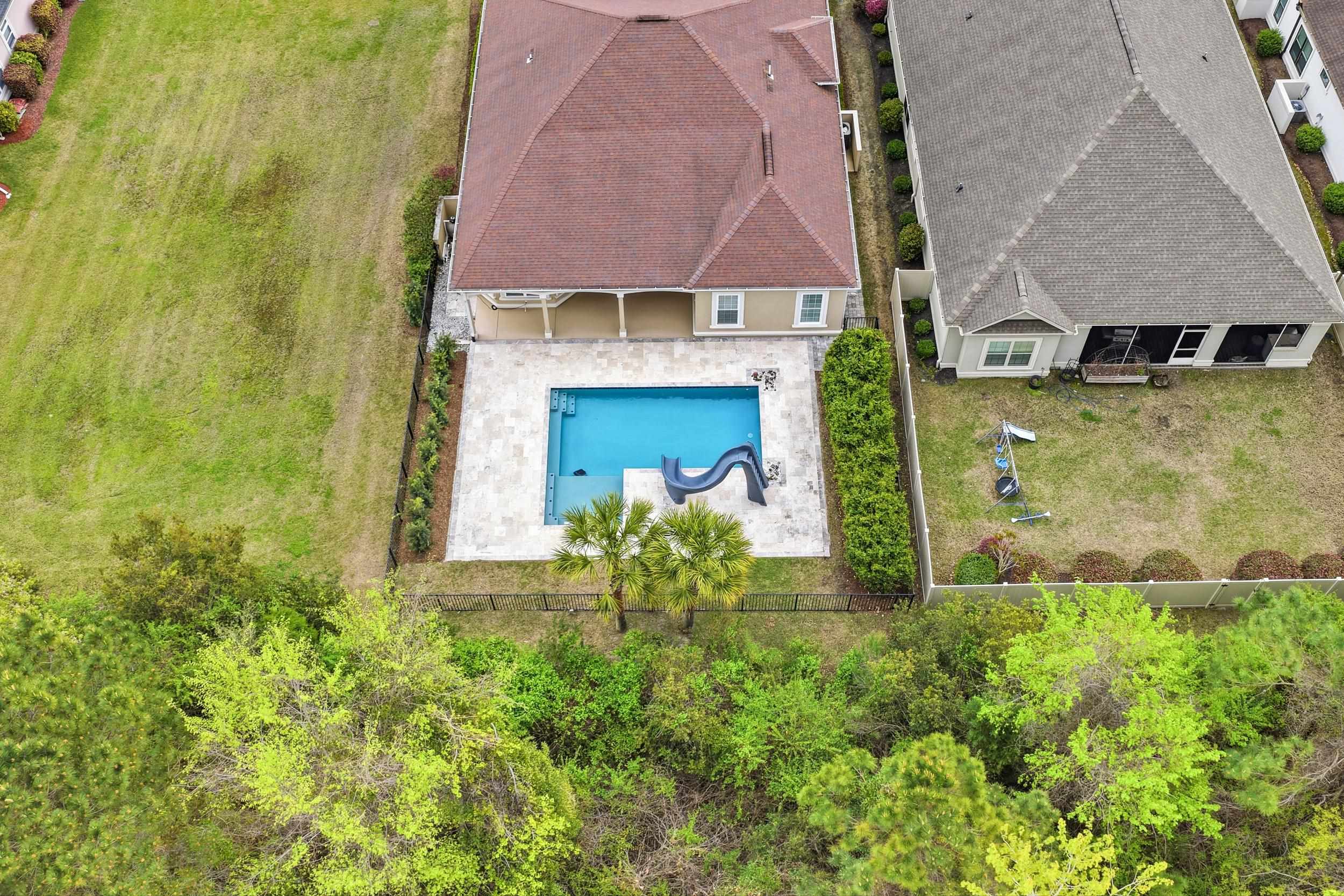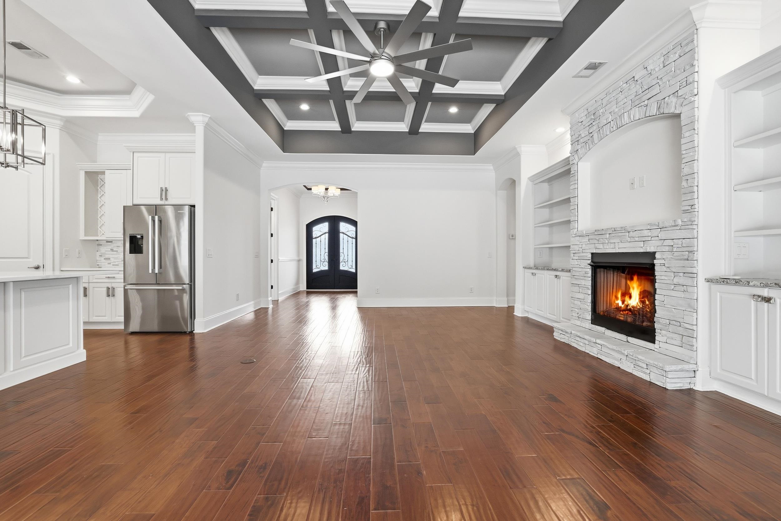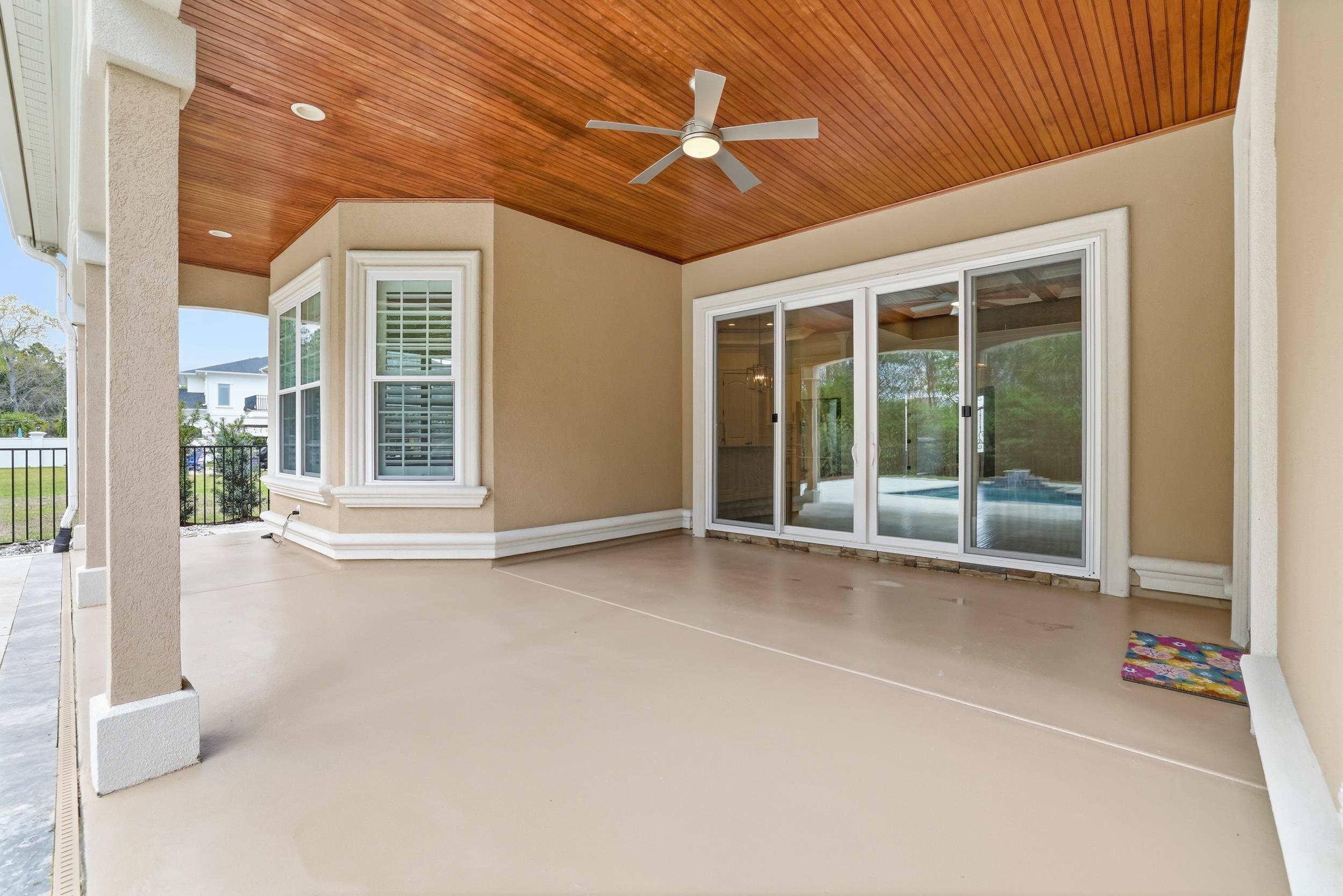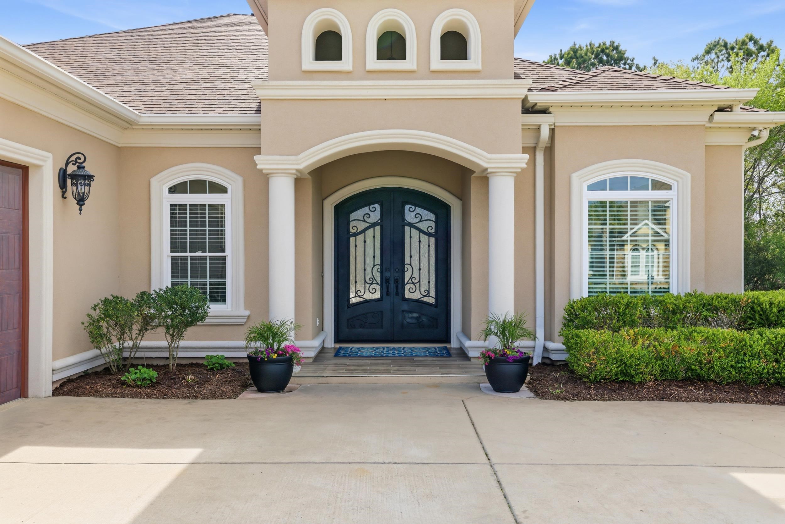 Beautiful 4 bedroom, 3 bath Mediterranean-style home located in the prestigious Bluffs on the Waterway. Enter through grand wrought iron double front doors into an open-concept layout featuring a fireplace, custom built-ins, and extensive crown molding. The dining area, kitchen, living room, and primary suite showcase elegant multi-tray and coffered ceilings. The gourmet kitchen is equipped with a center island with bar seating, wall oven, gas cooktop, wine rack, granite countertops, stainless steel appliances, and custom cabinetry. The spacious primary suite offers dual vanities, granite countertops, a large tiled shower, garden tub, and separate his-and-her closets. Enjoy exceptional curb appeal with a stucco exterior and mature landscaping. The oversized rear lanai provides the perfect setting for morning coffee or evening relaxation. Additional features include a tankless gas water heater. Located in The Bluffs on the Waterway, a gated Intracoastal Waterway community offering upscale homes and outstanding amenities.