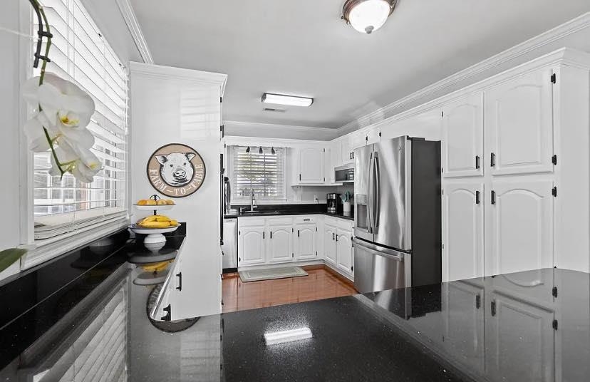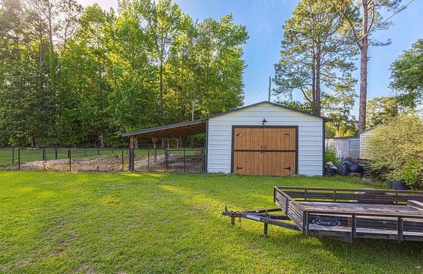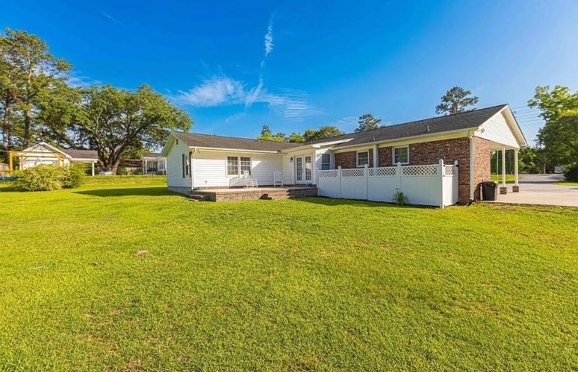 Located just outside the city limits of Andrews, SC, this impressive brick residence sits on a spacious, well-maintained lot. This home features three bedrooms and two full bathrooms, with an open living area that seamlessly connects the living/dining room, den, and kitchen. This home has been well-maintained and combines wood, tile, and carpet flooring. Freshly painted cabinets in the kitchen with granite countertops, tile showers in the bathrooms, a spacious mudroom, and much more. The property's standout feature is a remarkable 900 sq. ft. enclosed space behind the main home, complete with a full bathroom. With a large covered area that functions as an oversized porch, this space boasts a full kitchen, pine walls and ceilings, and recessed lighting. This additional space has endless opportunities for entertaining, an additional area for guests, and the list goes on. Furthermore, the property includes a 530 sq. ft. enclosed utility shed with a lean-to. The additional dwelling can be accessed from Lakewood Drive and has a separate driveway. Lot size/House Sq ft to be verified by buyer(s)/buyer's agent.