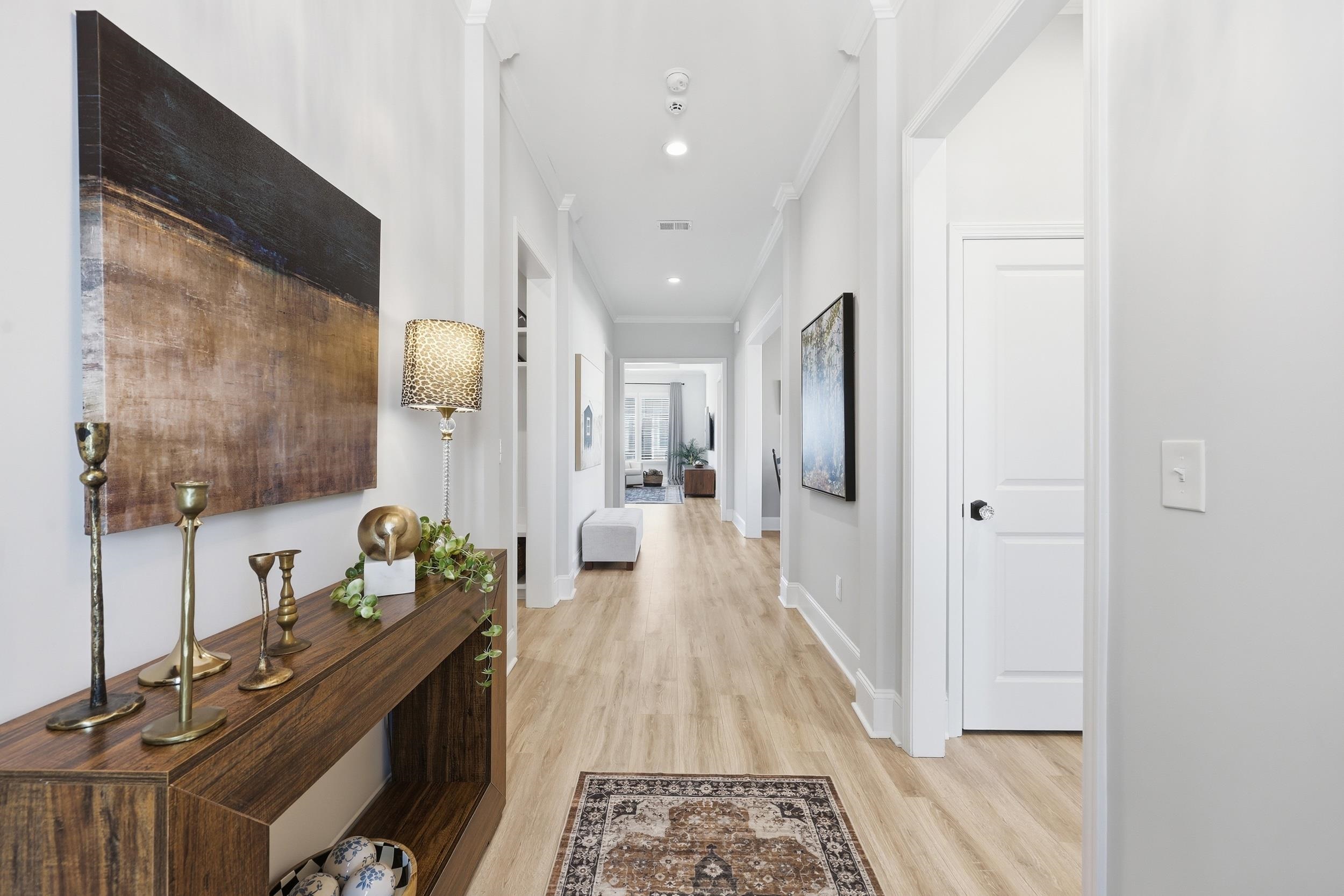 Immaculate, light-filled home on a desirable corner lot — warm, welcoming, immaculate and move-in ready. A large, inviting front porch leads to an open-concept interior thoughtfully enhanced with custom features and numerous upgrades. The bright kitchen showcases stainless appliances, abundant cabinetry and generous counter space ideal for cooking and entertaining. The primary bedroom is a peaceful retreat with a tray ceiling and an ensuite bath featuring a walk-in shower and custom closet cabinetry. Outside, the property offers plenty of parking, a fenced yard, an expansive patio for outdoor living, and multiple gardens and plantings that create year-round curb appeal and privacy. Enjoy resort-style living in a welcoming community featuring two sparkling pools, pickleball courts, basketball and tennis facilities, and scenic walking trails. Conveniently situated close to golf, shopping and dining, with the beach just minutes away — perfect for both relaxation and recreation.