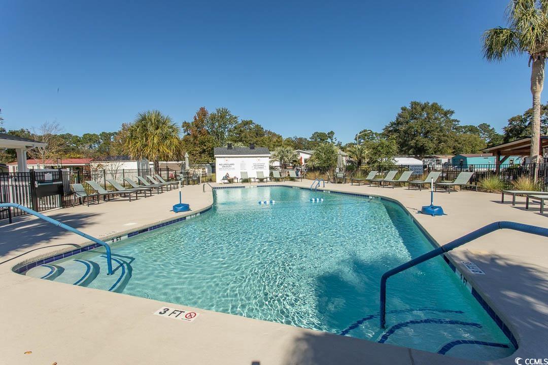 Affordable Coastal Living in a 55+ Community! Enjoy life at the beach in this spacious 2-bedroom, 2-bath home featuring a huge screened-in front and side porch totaling 455 sq. ft. of outdoor living space. Step inside to a flexible bonus room, a split floor plan, and a large kitchen that opens to the family room. Partially furnished with ample storage, including a 14' x 14' shed and plenty of cabinets and closets. Located in the desirable Oceanside Landing 55+ community, enjoy a clubhouse, pool, small dog park, pickleball court, and outdoor gathering areas. With planned social activities and proximity to the MarshWalk, beaches, dining, shopping, and Brookgreen Gardens, this home is perfect for full-time living or a vacation getaway. Sellers are motivated!