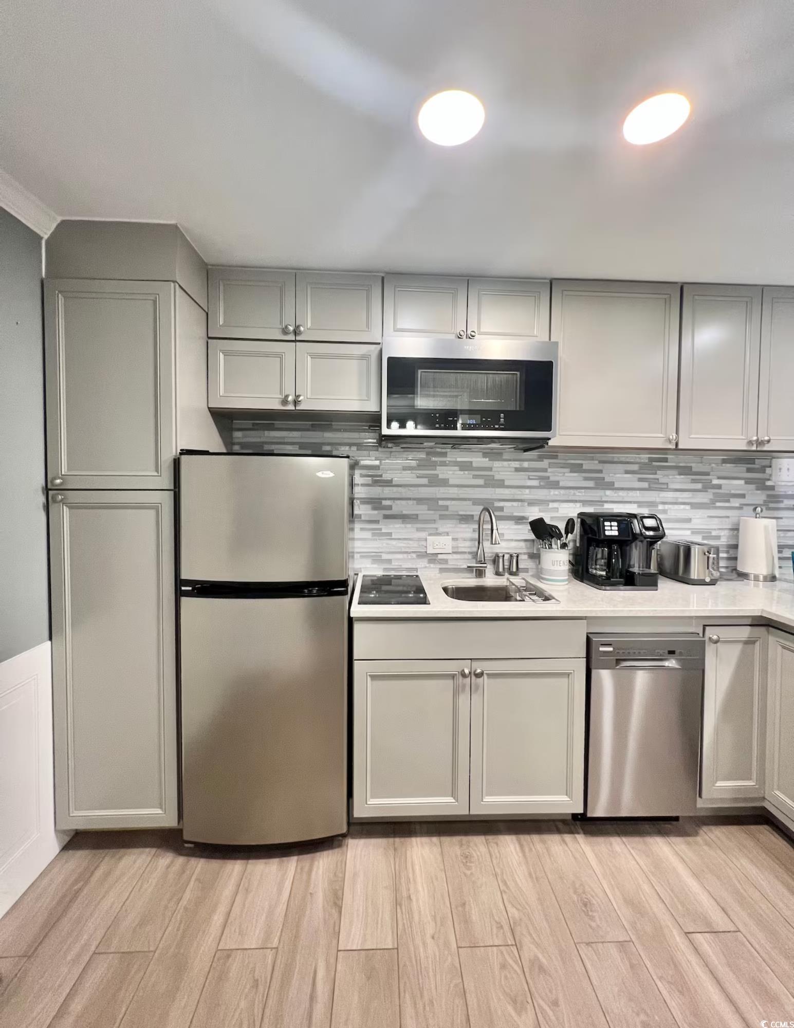 Coastal Comfort Meets Vintage Charm at St. John's Inn Tucked away in the timeless charm of St. John's Inn, this beautifully renovated first-floor one-bedroom condo is your perfect slice of Myrtle Beach paradise. Just a short stroll to the sparkling shoreline, this breezy beachside retreat is all about effortless coastal living. Step inside to discover designer finishes throughout—from gleaming quartz countertops to stylish LVP and tile flooring that keep things cool and comfy underfoot. The kitchen is thoughtfully equipped with stainless steel appliances (yes, there's a convection oven, two burner cooktop and even a coffee maker!) so you can whip up easy meals or sip your morning brew before a beach day. Kick back on the cozy sofa, share a sunset dinner at the charming two-person dinette, or sink into the plush queen bed after a long day of sun and surf. Out back, your private covered patio is the perfect spot to catch the salty breeze and unwind with a cold drink in hand. Feel like a dip' Head to the newly refreshed pool area where the water sparkles and the sun deck invites you to stay a little longer. And with on-site laundry, extended stays or weekend getaways are easy-breezy. And let's not forget this condo is a fantastic rental income opportunity with this beautifully managed 1-bedroom coastal retreat! Nestled in a prime beachside location and locally managed for peace of mind, this turnkey gem is perfect as a getaway or investment property. St. John's Inn has just completed a full renovation, giving this vintage gem a fresh new feel while keeping its nostalgic coastal soul. Whether you're looking for a personal beach retreat or a turnkey investment, this condo is ready to welcome you home to the laid-back rhythm of Myrtle Beach.
