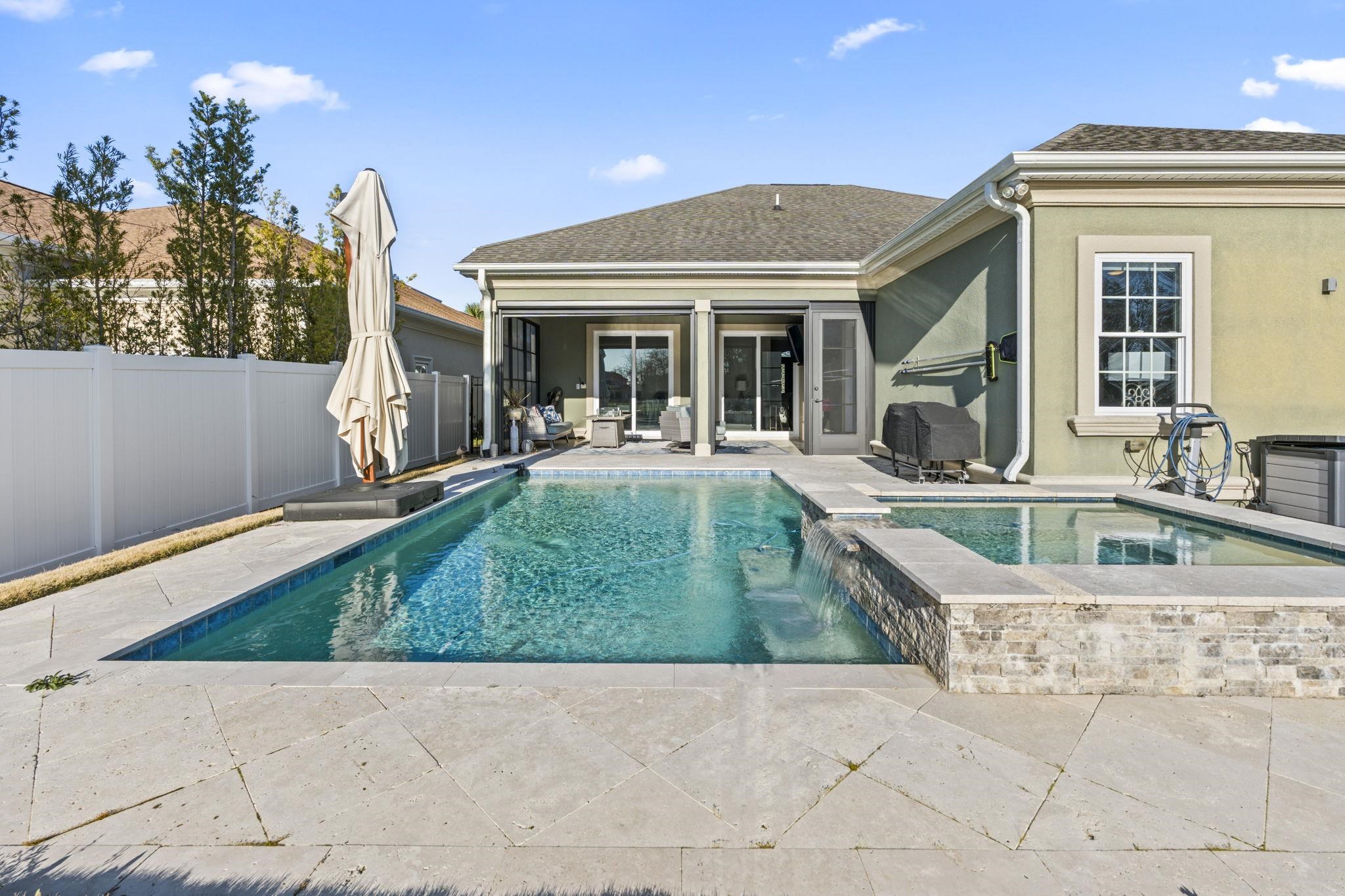 Amazing 4BR 3BA Mediterranean open floor plan home in the gated neighborhood of The Bluffs on the Waterway. This custom home has marble tile, hardwood floors, custom designed kitchen and bathrooms, a fireplace, a lanai overlooking the pool, a heated and cooled garage, walk in closets, trey ceilings, walk-in shower, salt water heated swimming pool with spa, outdoor kitchen, fenced in back yard, and much more. The neighborhood has boat storage, waterway access and amenity center, swimming pool and amenity center, pickleball courts, play area, and tennis courts. This home is near schools, shopping, grocery, restaurants, and the beach!
