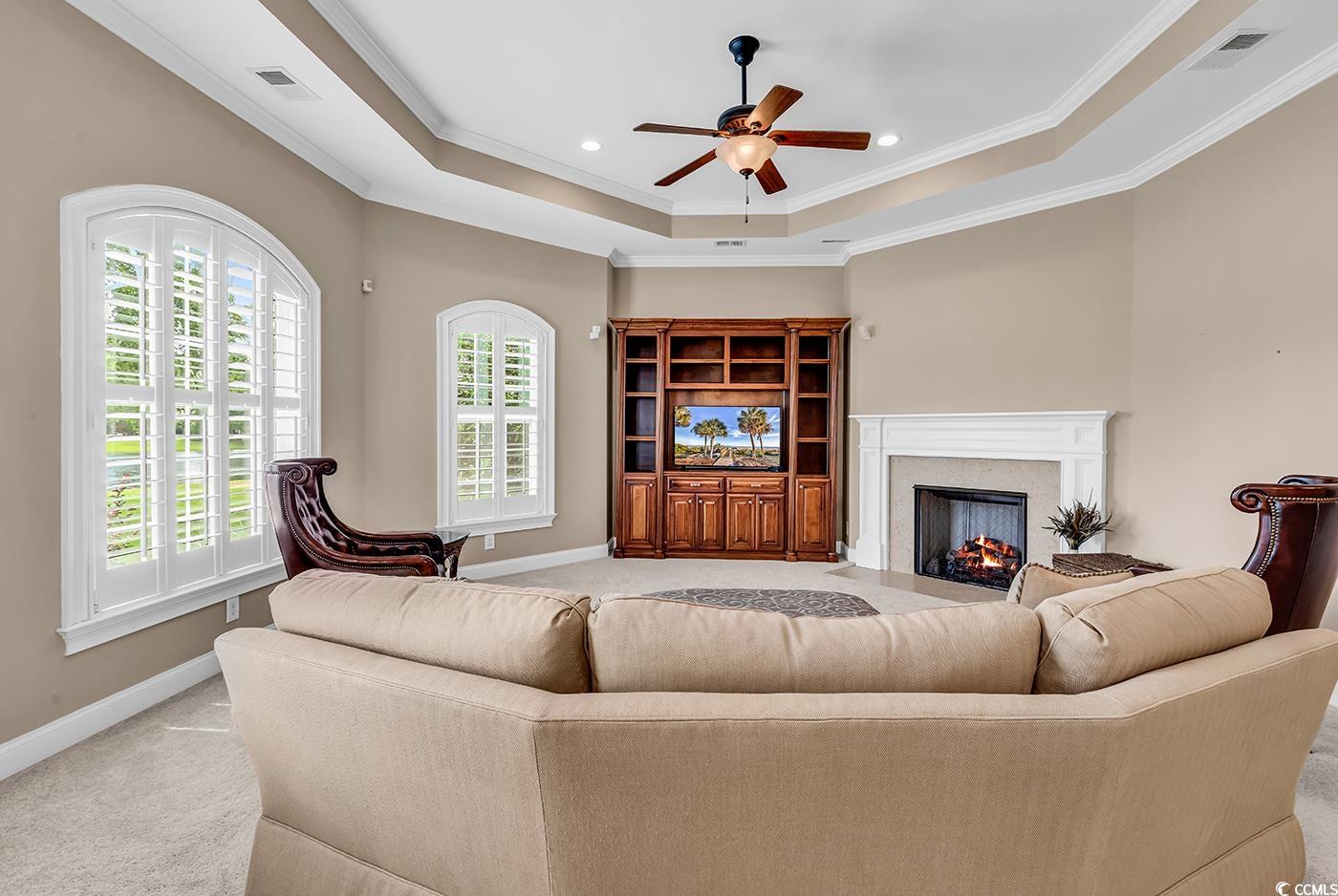 Welcome to your dream home in the prestigious gated community of Cypress River Plantation. Situated on a large lakefront lot, this beautifully maintained 4-bedroom, 3-1/2 bathroom home offers the perfect blend of luxury, comfort, and space. The heart of the home is a custom kitchen built for both everyday living and entertaining, featuring granite countertops, stainless steel appliances, a gas range with double ovens, and a prep sink in the oversized island. A spacious office with built-ins and a cozy fireplace provides the perfect work-from-home setup, while the family room impresses with a fireplace of its own and an elegant tray ceiling. The primary suite is a true retreat with a bay window overlooking the backyard, a tray ceiling, and a spa-like ensuite bath complete with double vanities, a soaking tub, and a walk-in shower. Upstairs, a bonus room awaits with built-in surround sound speakers, a wet bar area, and a projector with a retractable screen—perfect for movie nights or game days. Step outside to enjoy the beautifully landscaped yard, framed by mature trees in both the front and back, offering privacy and a peaceful setting along the lake. All of this is located in one of Myrtle Beach’s most sought-after communities, offering resort-style amenities including a clubhouse, pool, fitness center, tennis courts, boat ramp, day dock, and RV/boat storage.