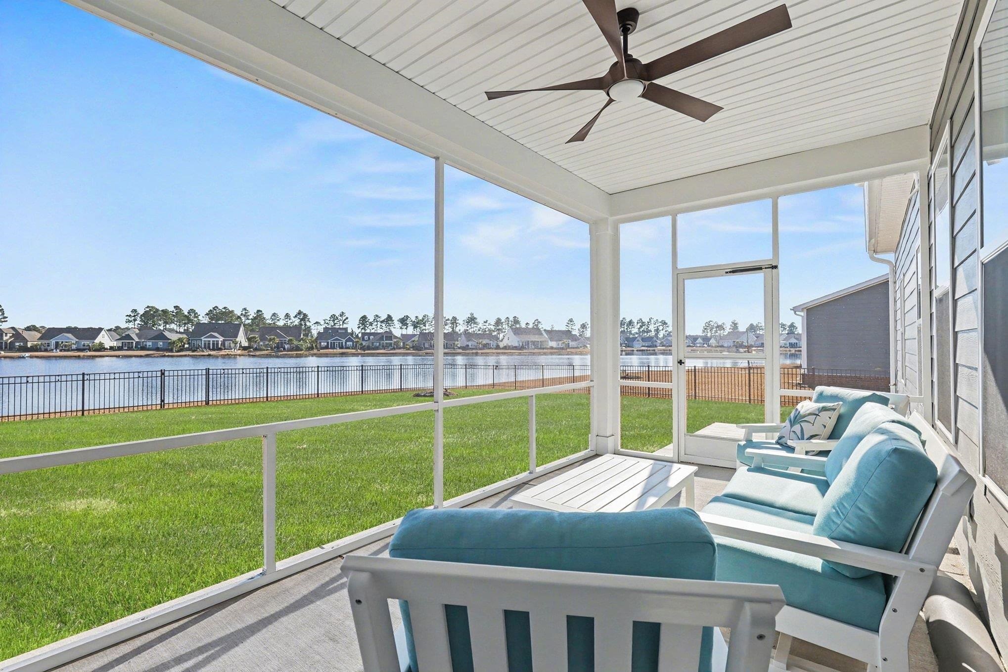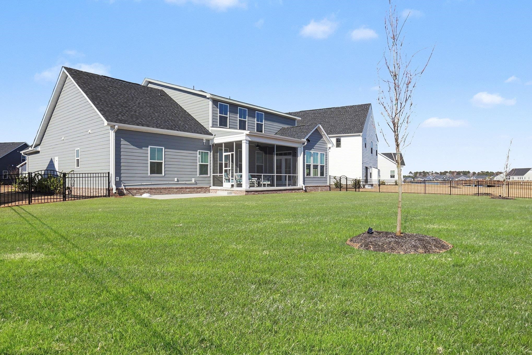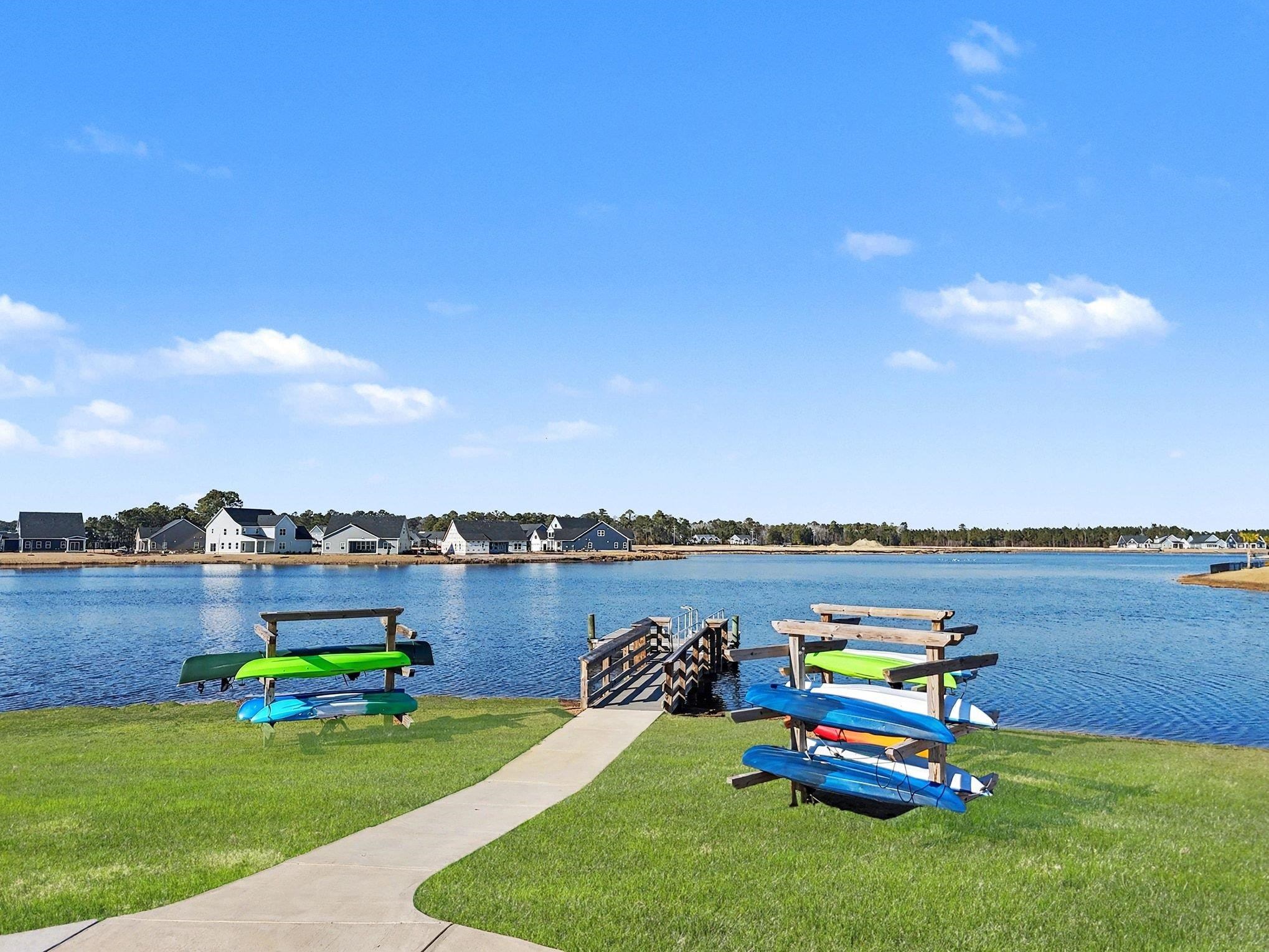 Better than New! Rare Lakefront Luxury! Skip the construction wait! Situated on a premier lakefront lot, this pristine 2025- built residence offers a level of privacy and space that can’t be matched. THE LIFESTYLE: Ideally located within a short walk to the Indigo Bay clubhouse, salt-water pool, and pickleball courts, this home offers the perfect balance of resort-style convenience and ultimate backyard seclusion. The premium lot is evident the moment you step into the fully-fenced backyard, perfectly positioned for panoramic sunset views over the 50-acre community lake. THOUGHTFUL DESIGN: This exquisite 4-bedroom, 2.5-bath home is designed for modern living. The main level features the primary bedroom, and a dedicated office/flex room perfect for working from home or a personal office. The heart of the home is a chef-inspired gourmet kitchen featuring an upgraded farmhouse sink, natural gas cooking, a walk-in pantry, and a large island—all accented by elegant tray ceilings. SPACE & FLEXIBILITY: Main Level Primary Suite: A private sanctuary with dual walk-in closets and a luxury upgraded Roman Shower featuring dual shower heads and a sleek, spa-like finish. Upper Level: Includes three additional spacious bedrooms, a massive bonus room, and a separate dedicated storage closet—ensuring every item has its place. The Garage: Unlike standard new builds, this garage is fully finished, painted, and features a epoxycoated floor, providing a clean, showroomready space for vehicles or a workshop. OUTDOOR LIVING: The expansive screened-in porch offers unobstructed lake views—perfect for your morning coffee or an evening cocktail. The backyard is already equipped with a dedicated natural gas line, ready for your grill or a future fire pit, making it the ultimate setup for outdoor entertaining. THE PERKS: Blinds, high-end appliances, landscaping, and fencing are already installed. Move right into this less than one year-old masterpiece and start enjoying luxury coastal living today.