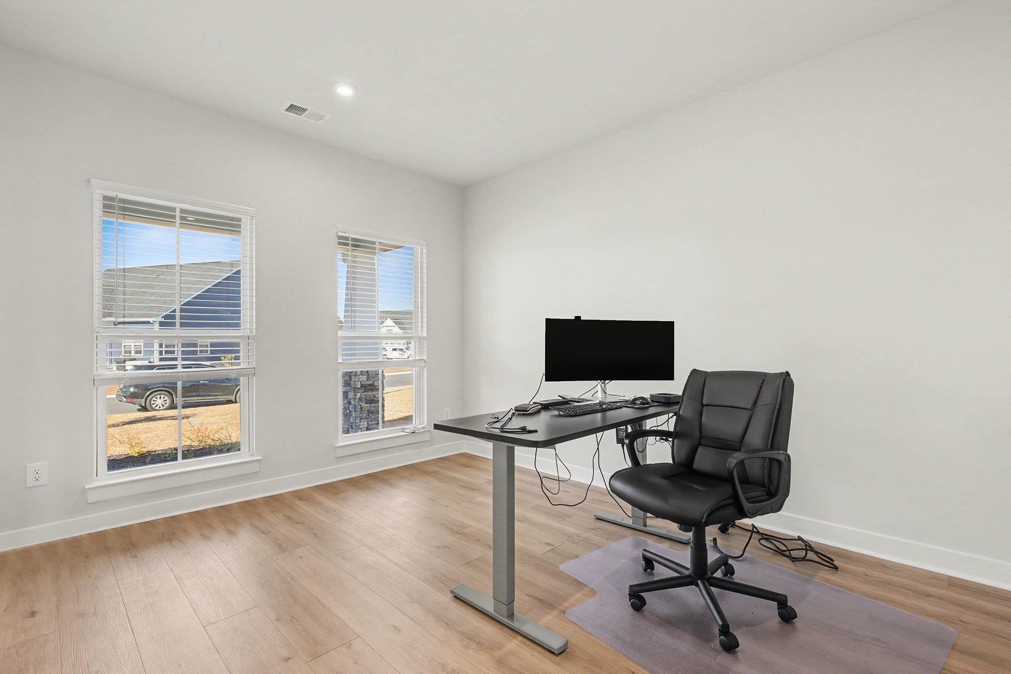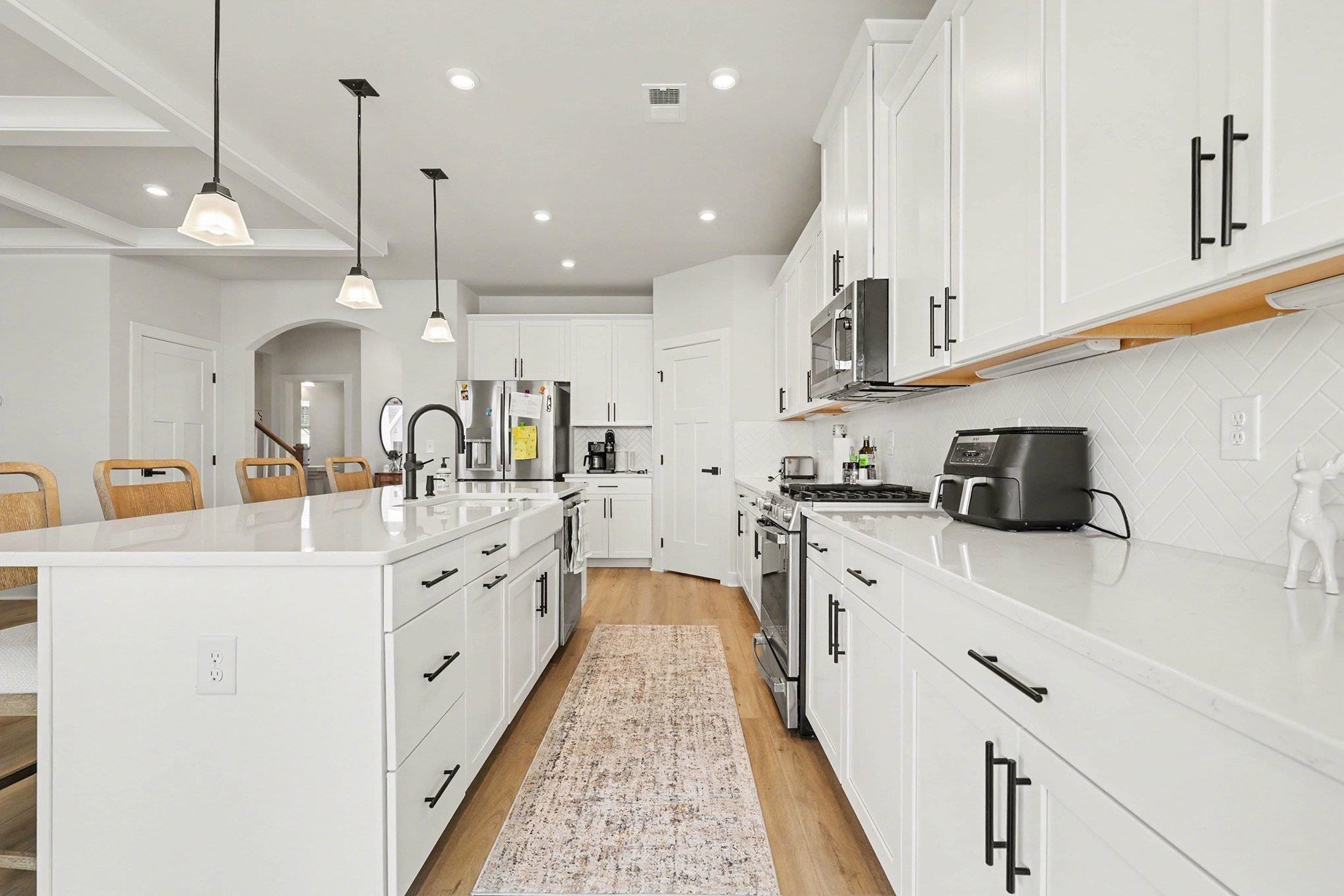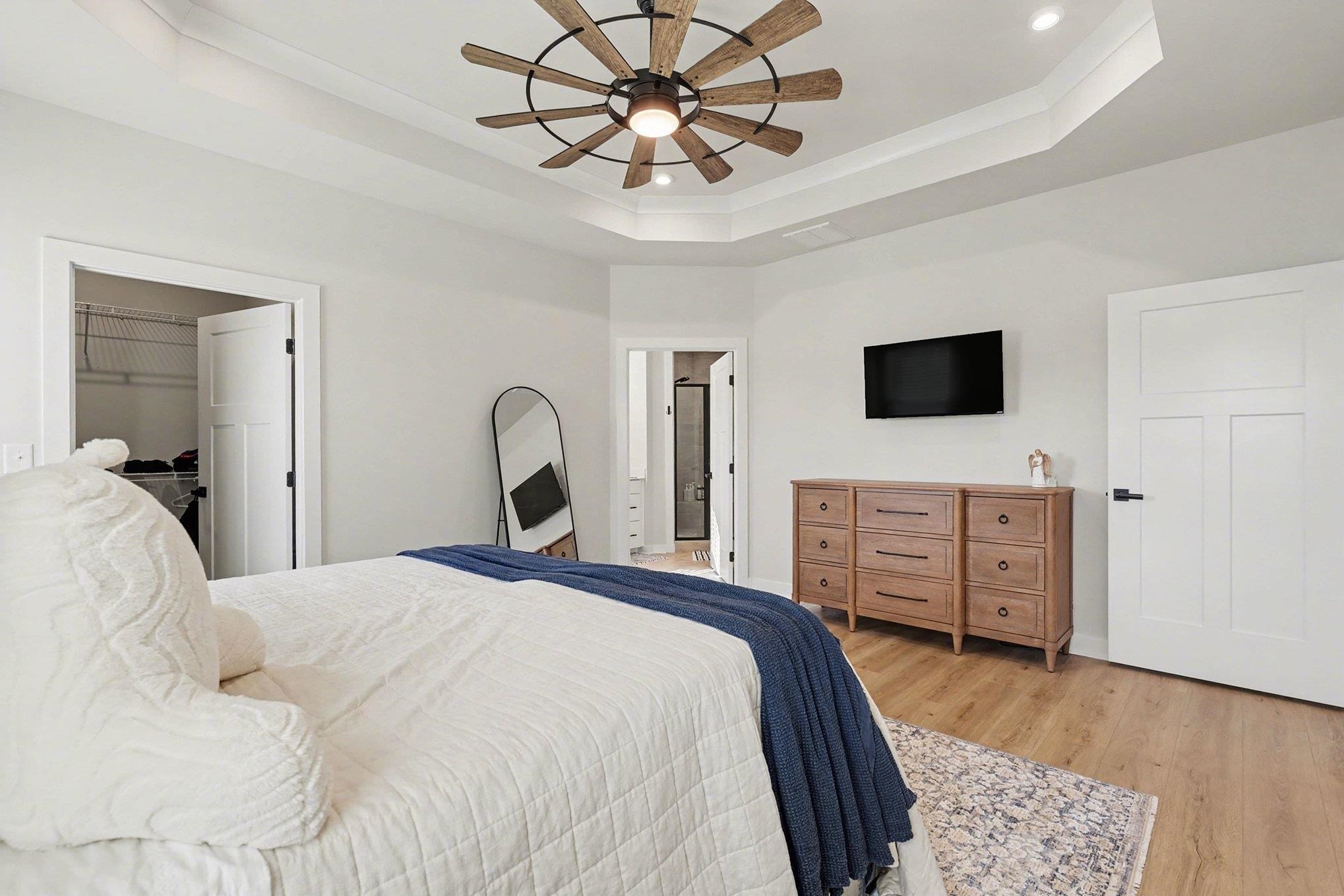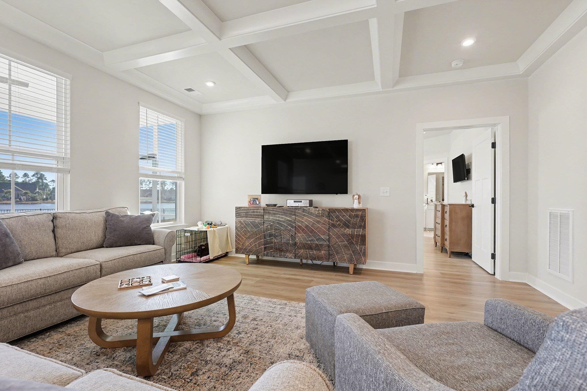 Better than New! Rare Lakefront Luxury! Skip the construction wait! Situated on a premier lakefront lot, this pristine 2025- built residence offers a level of privacy and space that can’t be matched. THE LIFESTYLE: Ideally located within a short walk to the Indigo Bay clubhouse, salt-water pool, and pickleball courts, this home offers the perfect balance of resort-style convenience and ultimate backyard seclusion. The premium lot is evident the moment you step into the fully-fenced backyard, perfectly positioned for panoramic sunset views over the 50-acre community lake. THOUGHTFUL DESIGN: This exquisite 4-bedroom, 2.5-bath home is designed for modern living. The main level features the primary bedroom, and a dedicated office/flex room perfect for working from home or a personal office. The heart of the home is a chef-inspired gourmet kitchen featuring an upgraded farmhouse sink, natural gas cooking, a walk-in pantry, and a large island—all accented by elegant tray ceilings. SPACE & FLEXIBILITY: Main Level Primary Suite: A private sanctuary with dual walk-in closets and a luxury upgraded Roman Shower featuring dual shower heads and a sleek, spa-like finish. Upper Level: Includes three additional spacious bedrooms, a massive bonus room, and a separate dedicated storage closet—ensuring every item has its place. The Garage: Unlike standard new builds, this garage is fully finished, painted, and features a epoxycoated floor, providing a clean, showroomready space for vehicles or a workshop. OUTDOOR LIVING: The expansive screened-in porch offers unobstructed lake views—perfect for your morning coffee or an evening cocktail. The backyard is already equipped with a dedicated natural gas line, ready for your grill or a future fire pit, making it the ultimate setup for outdoor entertaining. THE PERKS: Blinds, high-end appliances, landscaping, and fencing are already installed. Move right into this less than one year-old masterpiece and start enjoying luxury coastal living today.