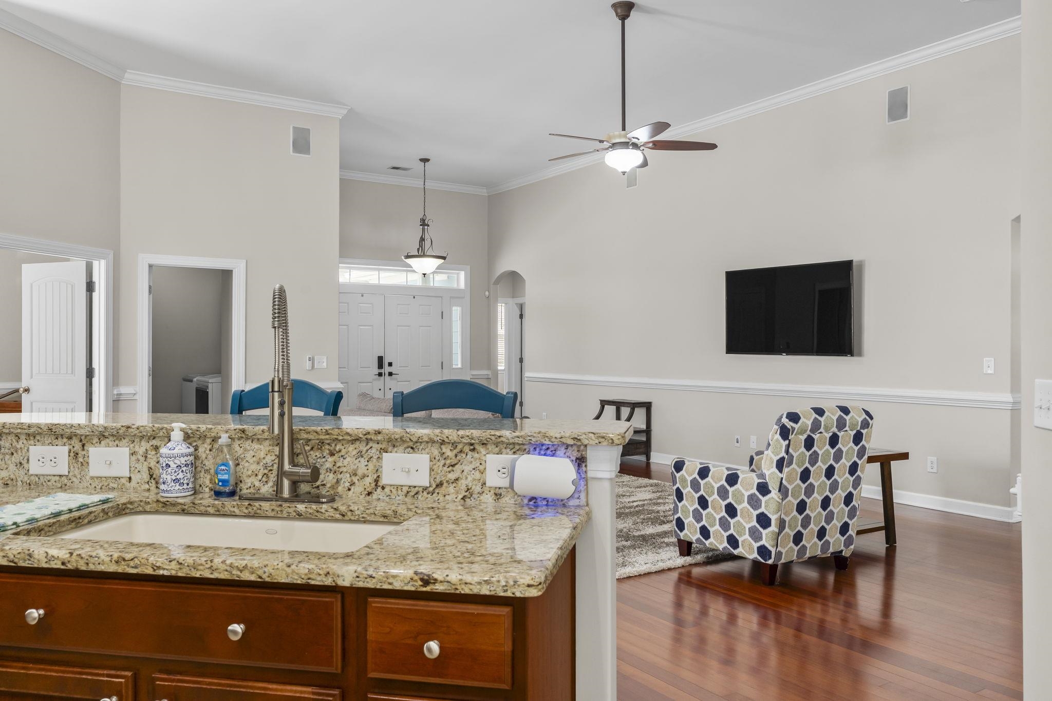 OPEN HOUSE SUNDAY 4/12 FROM 12:00 - 2:30! Experience the perfect blend of elegance and coastal convenience in this stunning residence located within the prestigious gated community of River’s Edge Plantation. From the 12' ceilings to the meticulously landscaped grounds, every detail of this home exudes quality. Interior highlights include a Grand Entryway; the large foyer welcomes you into an airy, open-concept floor plan characterized by soaring ceilings and crown molding. The gourmet kitchen is a chef’s dream featuring granite countertops, "cabinets galore," and premium finishes. Included is a dedicated formal dining room, a private den/office, and a comfortable guest wing near the entrance. The primary bedroom is a light-filled sanctuary anchored by a unique round coffered ceiling, featuring a spa-like ensuite with a soaking tub and a large walk-in tiled shower. Elegant wood flooring flows throughout the main living areas, with durable tile in all wet zones. Recent enhancements include a new back patio and seating area, custom curbing, and a white landscaping deck. Lush Landscaping include freshly planted Crepe Myrtles, a Pinto Palm, and professional garden beds. Modern touches include fresh interior paint, cordless blinds, a new washer, and double-French glass storm doors. Relax on the oversized screened-in porch or host gatherings in the large, partially fenced-in backyard. As part of River’s Edge Plantation, you’ll enjoy exclusive access to a private boat ramp and dock, sparkling community pool and children’s playground. Location is perfectly situated with quick access to Hwy 90 and Hwy 31, and just minutes from the charm of downtown Conway.