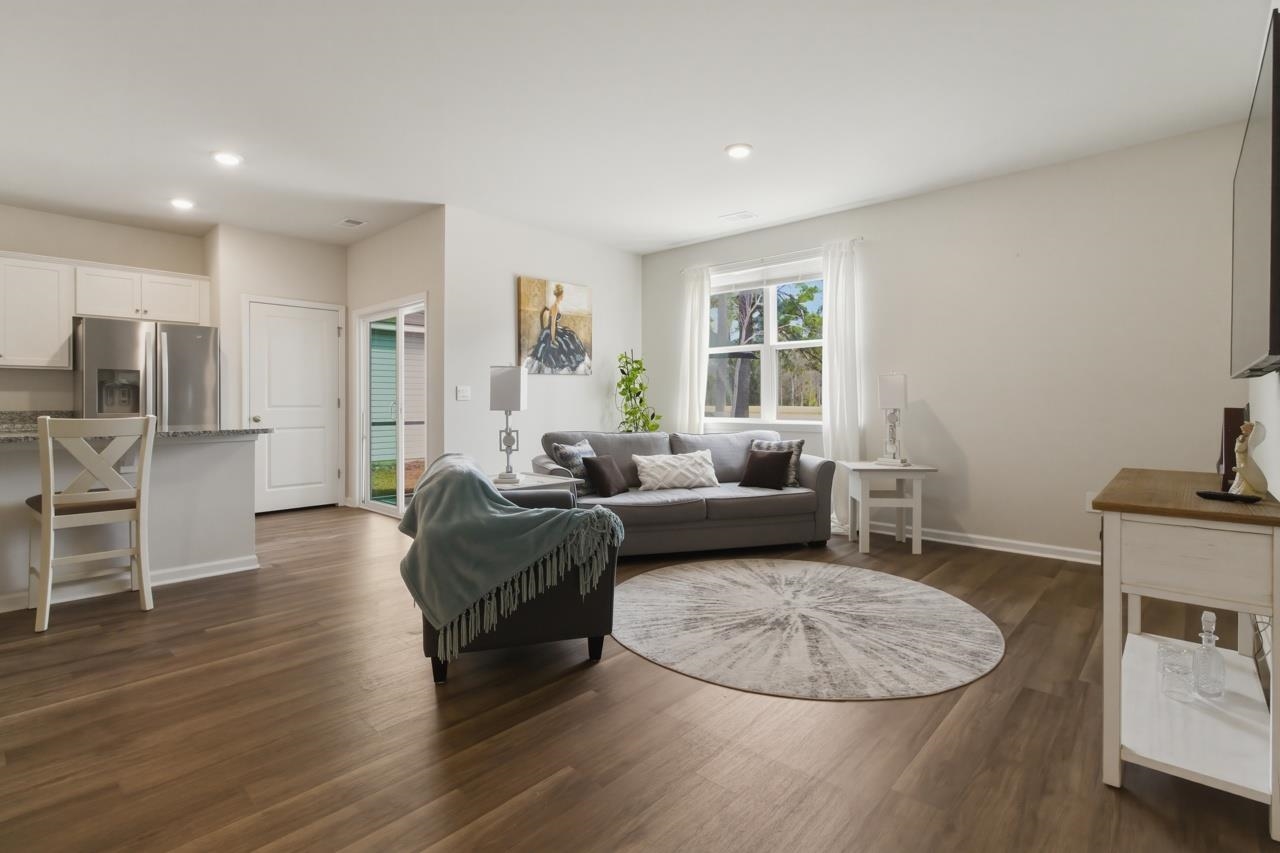 This home offers an array of wonderful features! The thoughtfully designed single-story floor plan includes 3 bedrooms and 2 full bathrooms, perfect for comfortable living. The spacious kitchen is ideal for cooking and entertaining, highlighted by a large island, granite countertops, and stainless steel appliances. The kitchen also provides easy access to the screened-in porch and patio, creating a great space for indoor-outdoor living. Luxury vinyl plank (LVP) flooring flows through the foyer, bathrooms, kitchen, dining area, and living room. The primary bedroom features a 5-foot walk-in shower, double vanity, and a walk-in closet. Additional conveniences include ceiling fan pre-wiring, a smart thermostat, door controls, and a garage door opener. Upgrades include gutters, extended backyard patio and epoxy floor covering in garage. Beach is less then 25 minutes away! Short drive to shops, restaurants and much more! Best of all, the backyard backs directly up to the golf course, offering beautiful views and a peaceful setting.