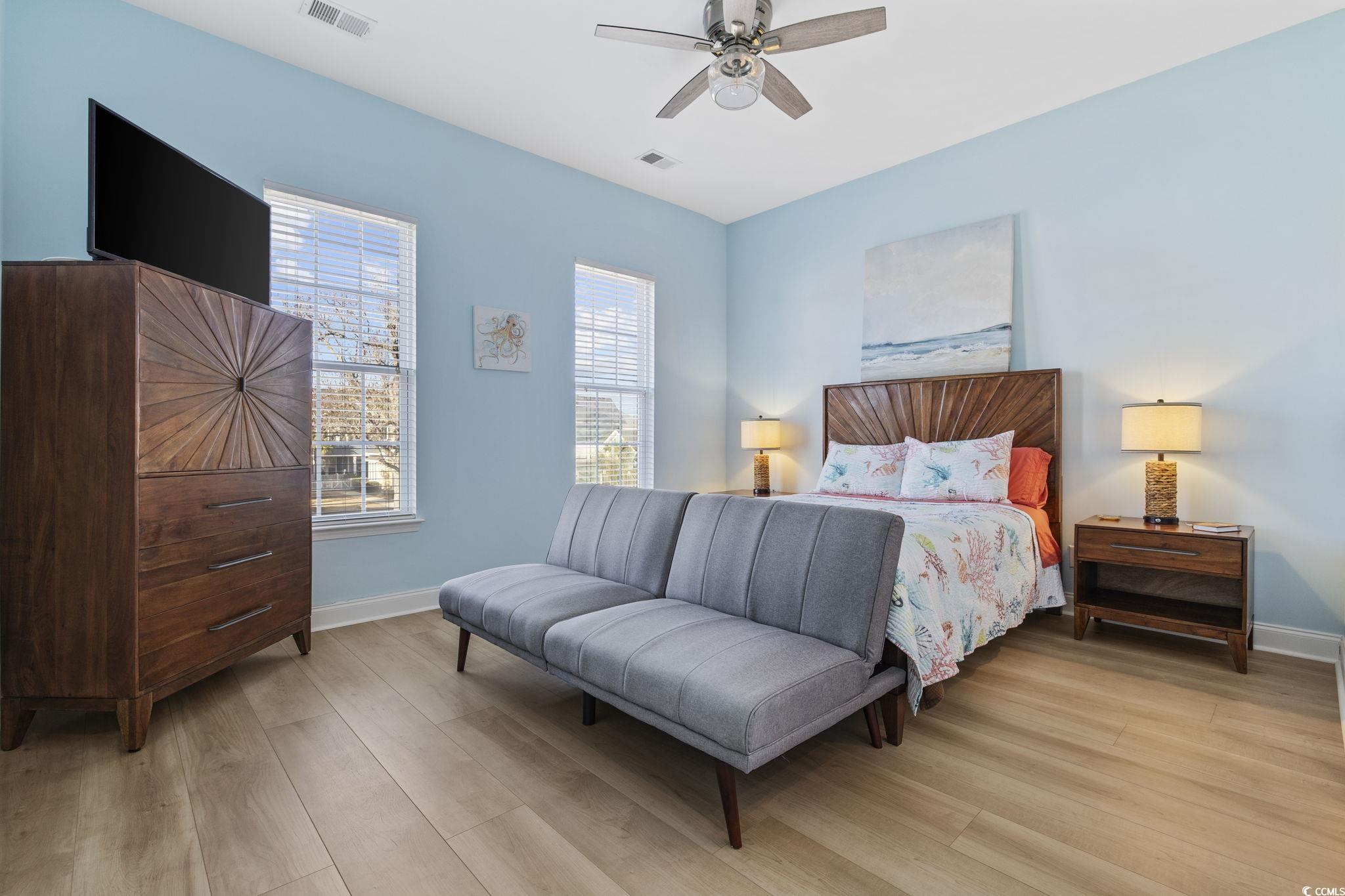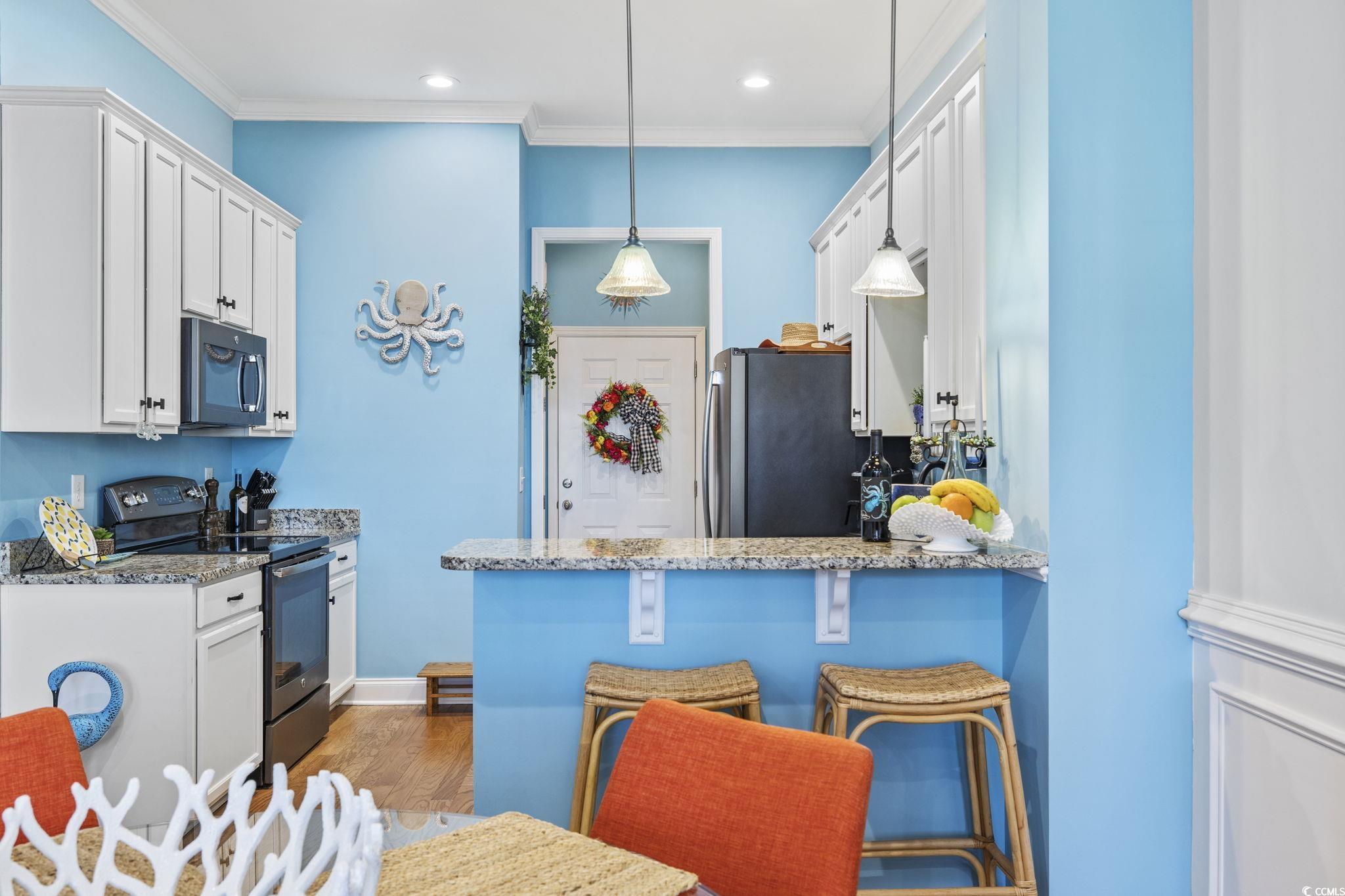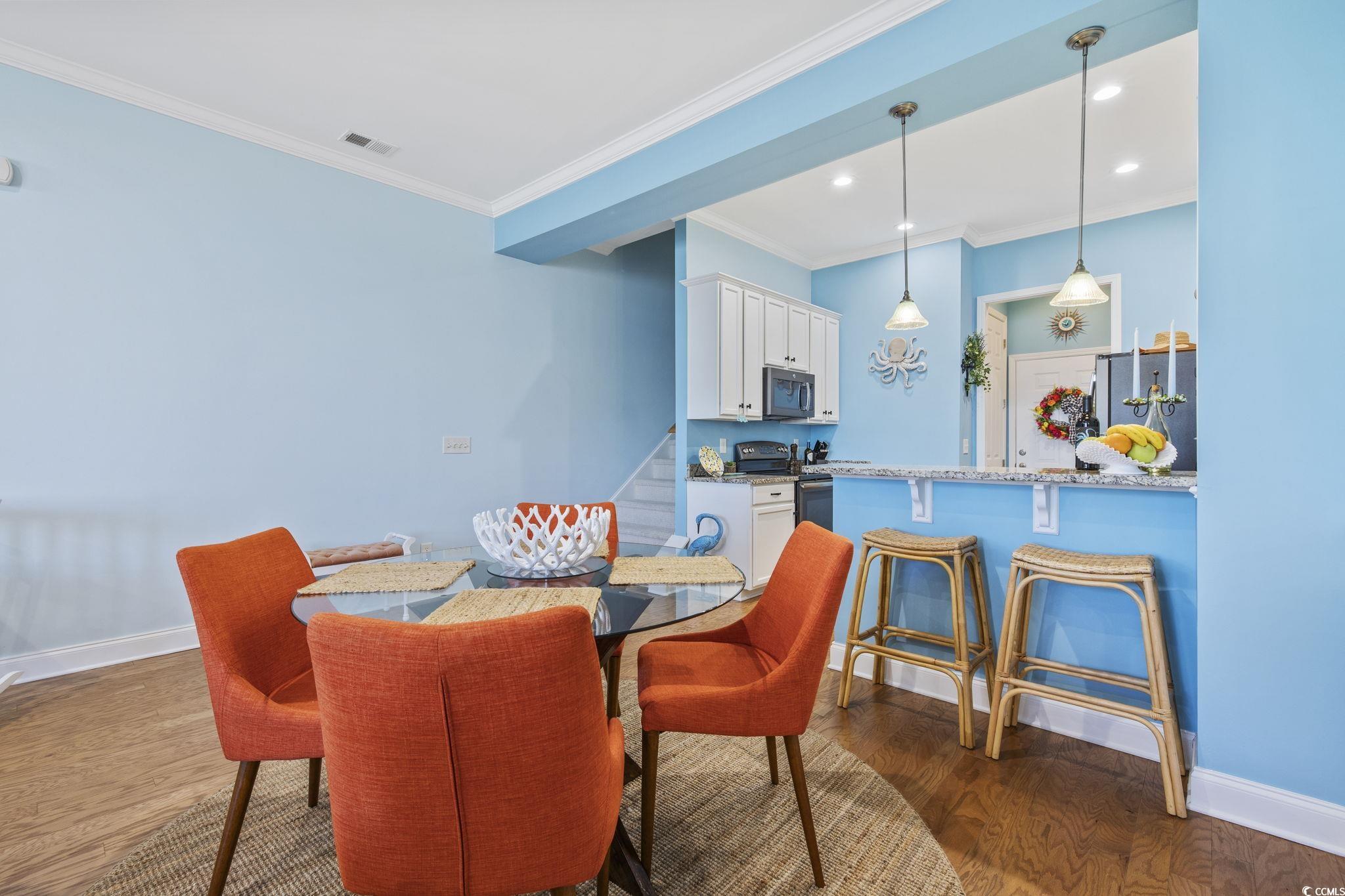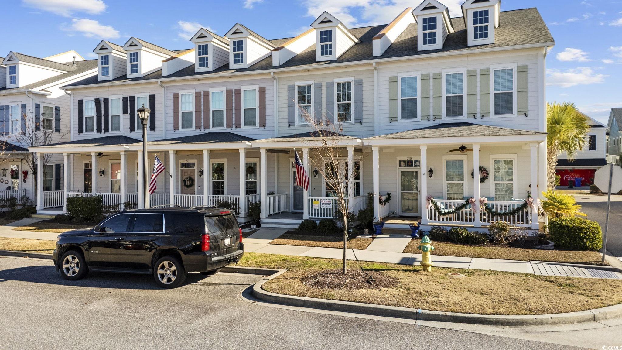 Beautiful townhome with GARAGE in the heart of Market Common. This centrally located property includes heavy duty/ceiling mounted shelving in garage, custom hurricane shutters and stainless appliances and granite countertops in the kitchen along with breakfast bar and pantry. Beautifully remodeled half bath downstairs. Enjoy relaxing on the wonderful front porch with composite decking, sun/wind shades and vinyl railing. Recent upgrades: new recessed lighting, butcher block countertops and cabinets added in laundry, upstairs carpet has been removed and replaced with wide-plank LVP flooring, LVP also installed in master closet, half bath with new vanity and mirror and fresh paint throughout ! Large master suite with abundance of natural light and a master bath featuring double sink vanity, shower and separate garden tub as well as large walk-in closet. Community amenities include pool, gym, lazy river and hot tub. This amazing townhome is less than a mile from the beach and an easy stroll to the many attractions that Market Common has to offer. A must see !