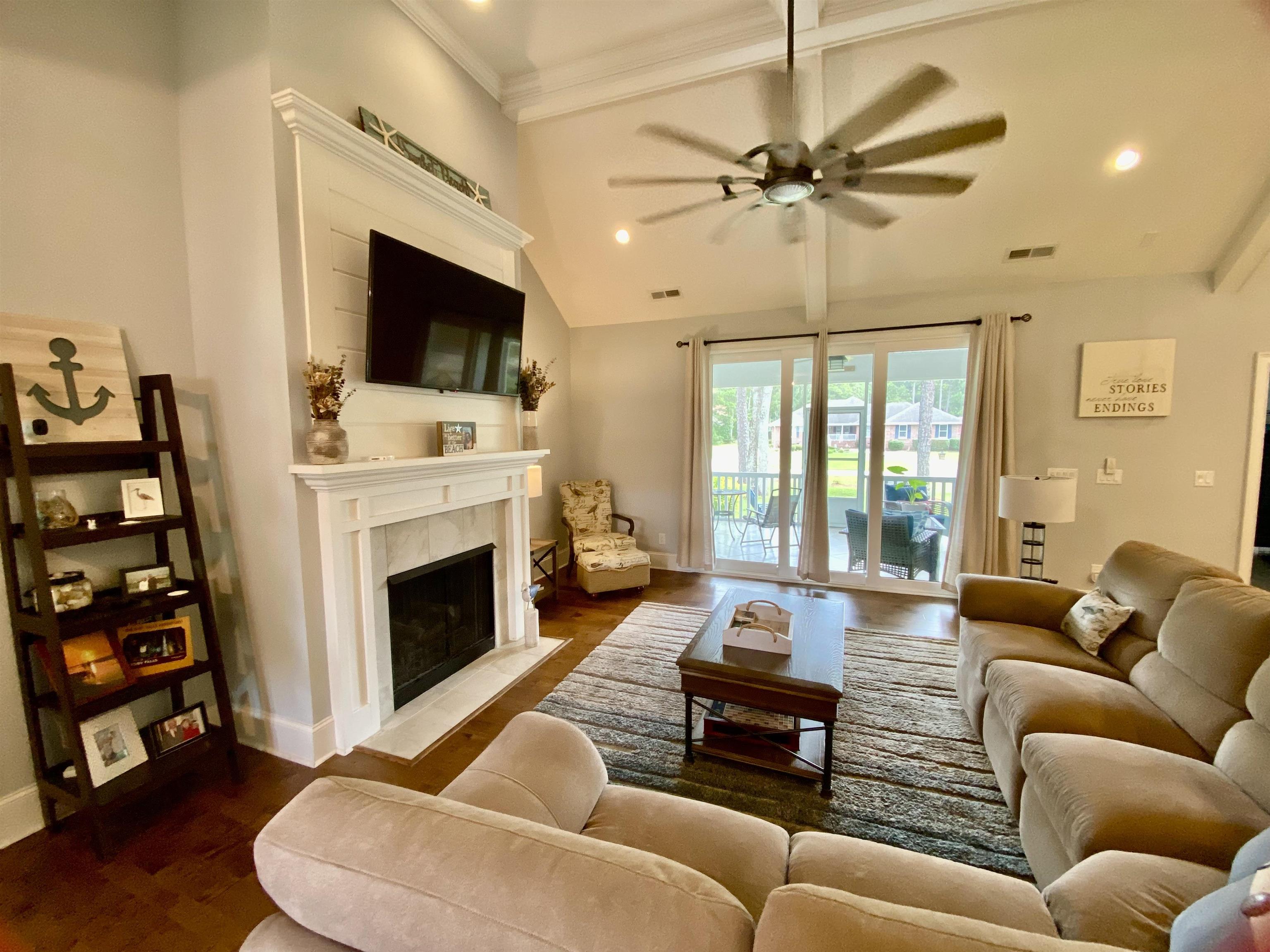 Prime Location in Sea Trail Plantation! This beautiful 4-bedroom, 3-bath Low Country style home is located in the highly desirable Sea Trail Plantation in Sunset Beach, NC, offering access to private parking on Sunset Beach and exceptional community amenities. The home features an open and inviting floor plan with vaulted ceilings and a gas log fireplace, creating a warm and elegant living space perfect for both relaxing and entertaining. The gourmet kitchen is a standout, featuring a large oversized island, gas cooktop, wall oven with convection capabilities, and bright white quartz countertops that provide both style and functionality. The spacious primary suite offers a peaceful retreat with a custom en-suite bath featuring a beautifully tiled walk-in shower and a large custom walk-in closet with ample storage. Additional features include a two-car garage with finished walls, epoxied floors, built-in cabinetry, and a custom workbench, perfect for storage or hobby space. Upgrades throughout the home include a walk-in attic, tiled screened rear porch, whole-yard irrigation system, fiber optic internet, security system, hidden dog fence surrounding the entire property, 50-amp outdoor camper receptacle, and a manual generator transfer switch for added convenience and peace of mind. Sea Trail residents enjoy access to three championship golf courses, swimming pools, recreation areas, an on-site restaurant, and private beach parking at Sunset Beach. Ideally located near shopping, dining, and the pristine beaches of the Carolina coast, this home offers the perfect combination of luxury, comfort, and coastal living. This is truly a must-see home!