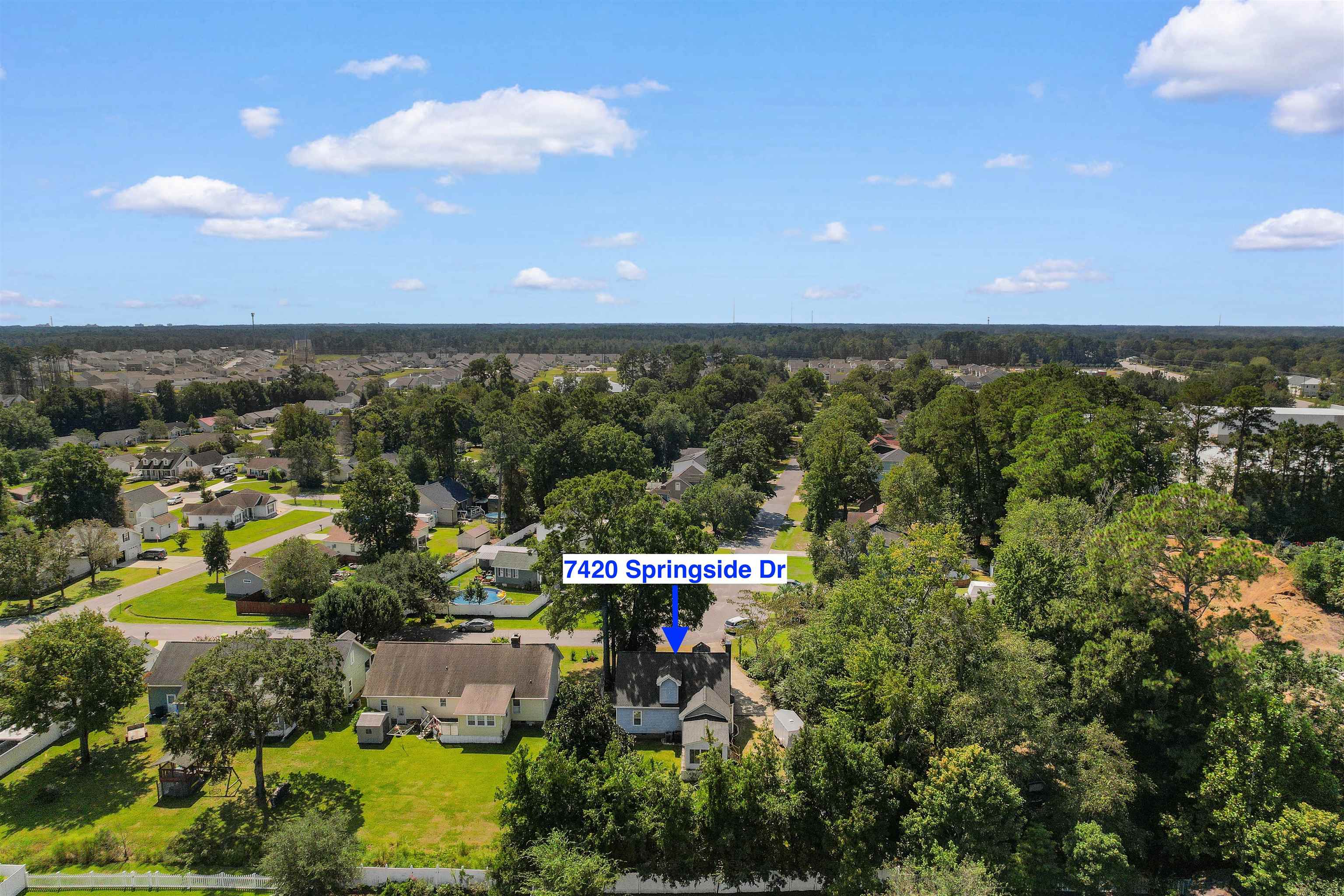 No HOA and an unbeatable central location set the tone for this charming Pinecreek home. Bring your boat, RV, or toys and enjoy the flexibility this property offers, all while being minutes from everything. This Lowcountry style property offers 4 bedrooms and 2 bathrooms with a layout designed for both comfort and flexibility. From the inviting front porch to the mature landscaping, the home welcomes you in. Inside, the living room with fireplace opens to a kitchen featuring granite countertops and a sunny bay window breakfast nook. Two bedrooms are located on the main level, including the primary suite, along with a convenient downstairs laundry room complete with a utility sink. Washer & dryer convey. Upstairs, two additional bedrooms offer flexible use, perfect for a second living area, office, or media room. Both bathrooms feature dual vanities. The oversized enclosed back porch expands your living space, ideal for relaxing, entertaining, or hobbies. The backyard offers mature trees, a decorative pond, and two sheds for storage or projects. Conveniently located between Hwy 544 and Hwy 707 with easy access to Target, shopping, dining, the airport, and the beach.