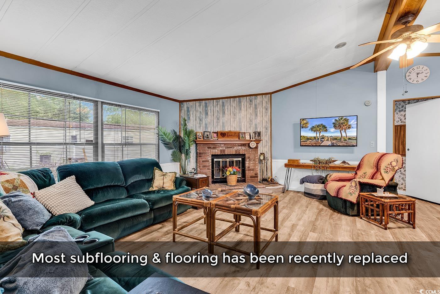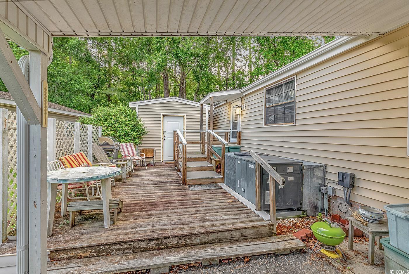 Coastal Charm Meets Recent Updates! This coastal retreat has seen some fantastic upgrades over the recent years—new subfloor and flooring installed in 2023, a fully remodeled master bathroom (2023), fresh interior paint throughout (2023), a new roof in 2020, and a new HVAC system in 2019—so you can move right in and start living that laid-back beach lifestyle. Tucked away at the back of a quiet, well-loved community where homes rarely change hands—it’s been over a year and a half since the last one sold! That speaks volumes about how much folks love it here. And what’s not to love' Cruise to the beach in your golf cart, soak up the benefit of super low HOA fees, and enjoy peaceful surroundings with way less traffic. The home also features a carport, side deck perfect for catching the salty breeze, a screened-in porch for lazy afternoons, two storage buildings, and a cozy wood-burning fireplace for those cooler coastal nights. Don’t miss your chance—homes here don’t stay on the market long, and this one’s got all the beachy essentials.