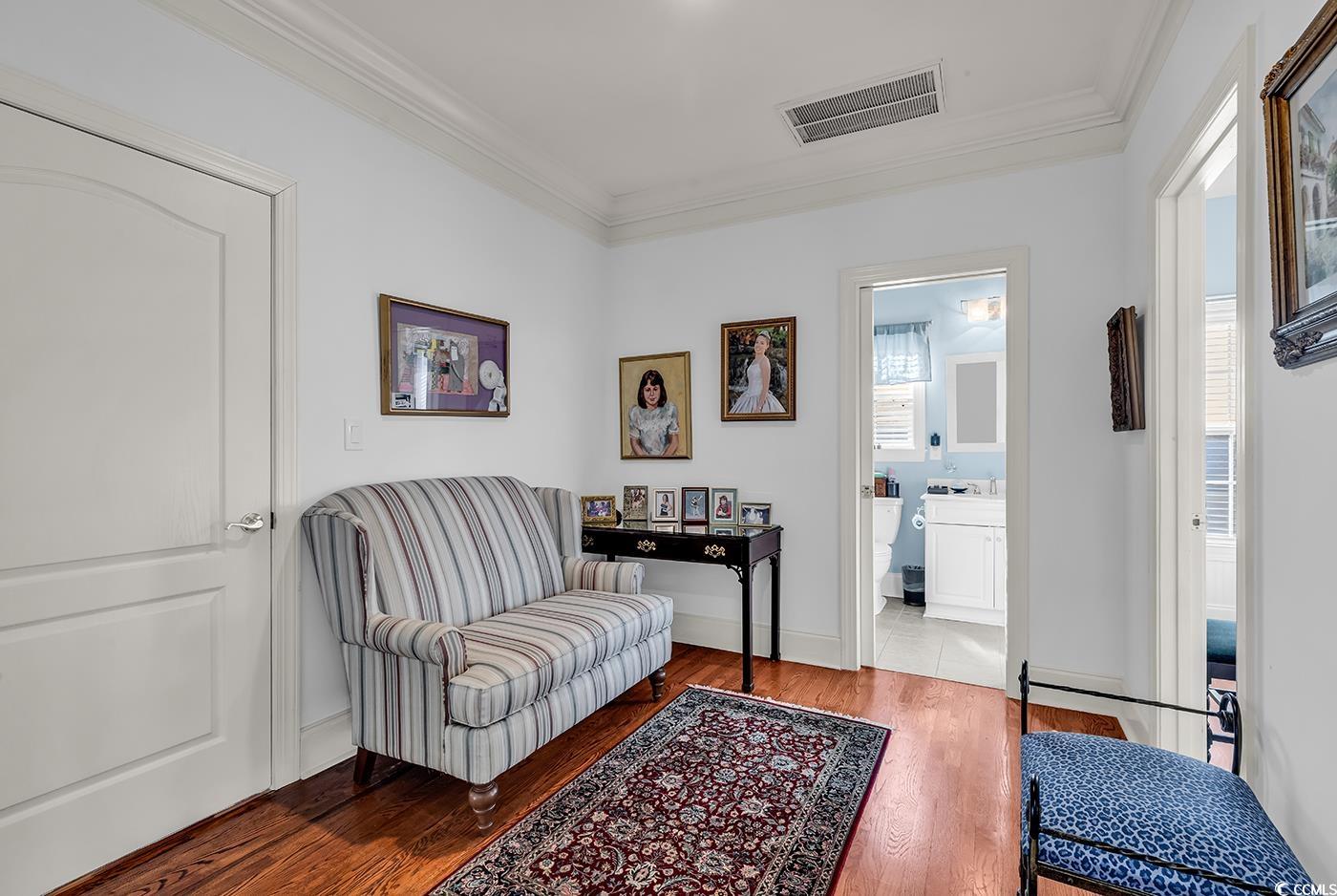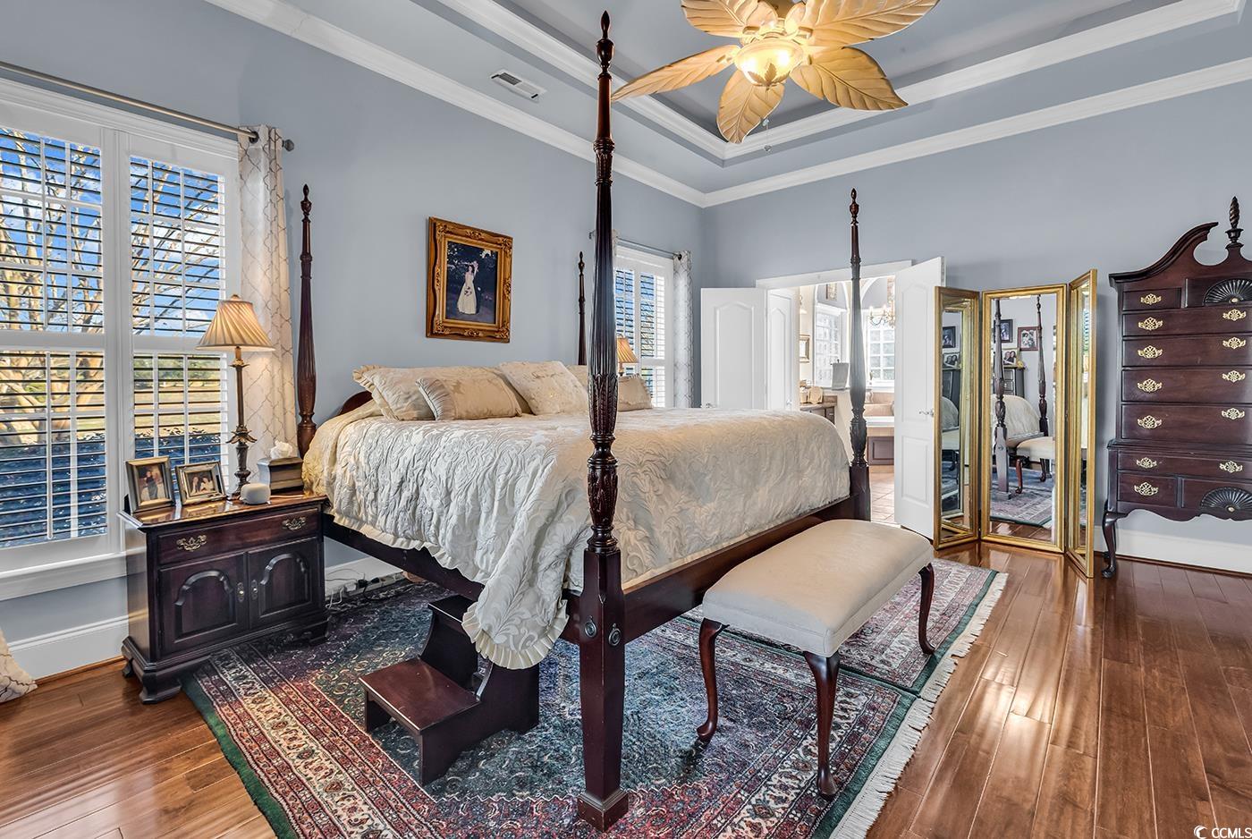 Positioned within the gated Bluffs on the Waterway community in the heart of Carolina Forest, this custom residence delivers refined coastal living with a thoughtful balance of elegance, comfort, and function. Curb appeal sets the tone immediately, with architectural detailing and craftsmanship that carry seamlessly throughout the home. Inside, expansive living spaces are filled with natural light, enhanced by soaring ceilings, detailed crown molding, and coffered accents that elevate every room. The open kitchen is designed for both daily living and entertaining, featuring granite countertops, stainless steel appliances, generous cabinetry, an oversized work island, and a large walk-in pantry. A breakfast area flows naturally into a beautifully appointed keeping room with custom cabinetry, wine storage, and a built-in wine cooler, creating a warm and inviting gathering space. The main living area is anchored by a fireplace and dramatic ceiling height, offering a welcoming yet elevated atmosphere. The primary suite is located on the main level and serves as a private retreat, complete with tray ceilings, dual vanities, a soaking tub, a walk-in shower with instant hot water circulation, and an expansive walk-in closet. Upstairs, two spacious bedrooms provide flexibility for guests or family, including a private ensuite guest suite. Additional storage is abundant, highlighted by an exceptionally large walk-in storage area. Outdoor living is equally impressive. The enclosed Carolina Room offers year-round enjoyment with a dedicated mini split system, while the outdoor summer kitchen added in 2019 enhances entertaining and relaxed coastal living. Recent updates include fresh interior paint, new flooring upstairs, a brand new roof, and newer HVAC systems, offering peace of mind and modern comfort. Residents of this sought-after community enjoy access to resort-style amenities, including a private Intracoastal Waterway boat launch, clubhouse, pool, tennis and pickleball courts, playground, and scenic walking trails. Ideally located near top-rated schools, dining, shopping, and just minutes from the beach, this home presents a rare opportunity to enjoy luxury living in one of Myrtle Beach’s most desirable gated communities.