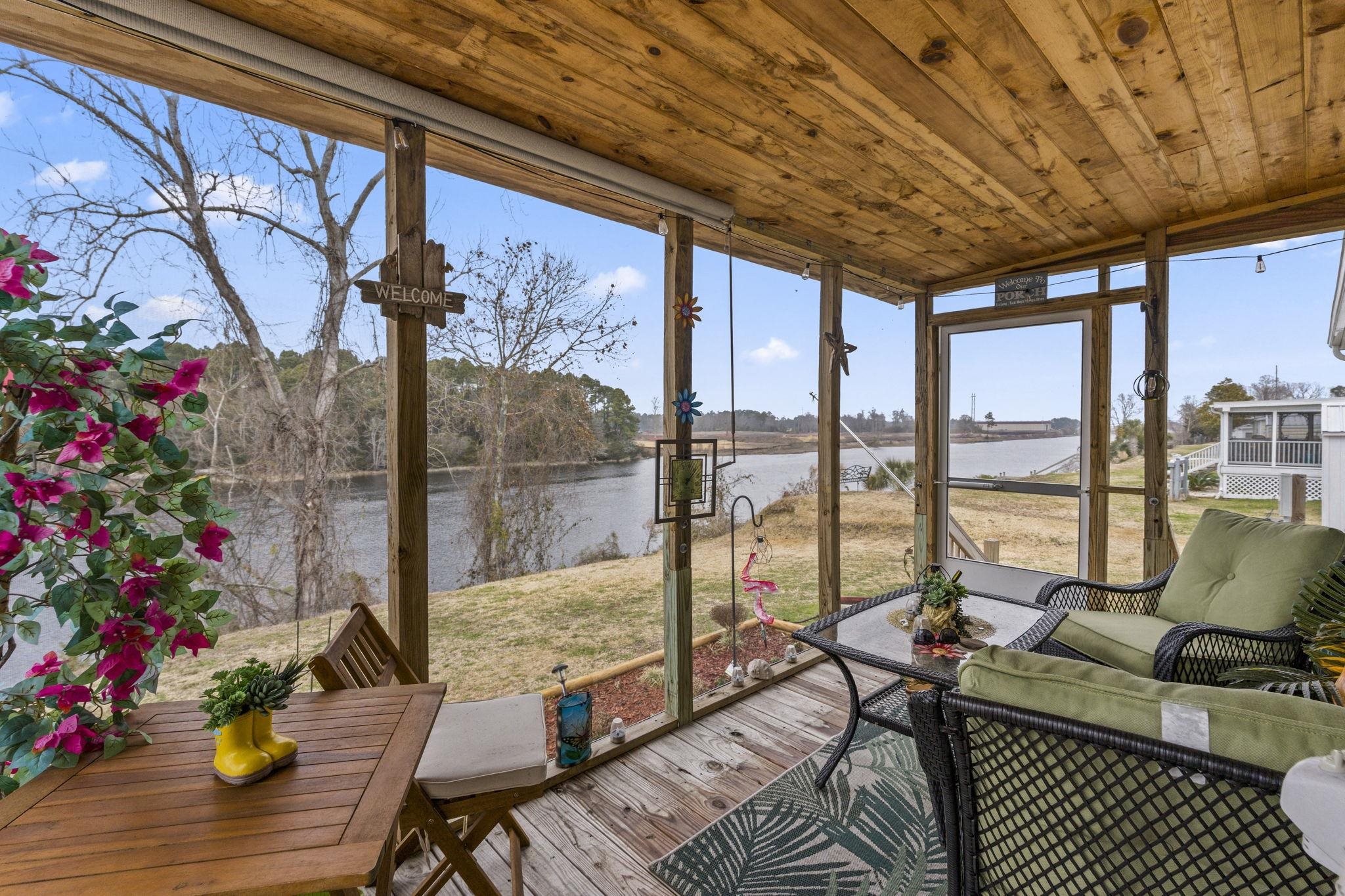 DIRECT Intracoastal Waterway living—fully furnished, upgraded 2022 home in a 55+ community where you can golf cart to the beach, dining, and everything North Myrtle Beach has to offer. This is the coastal lifestyle buyers are searching for—and rarely find at this level. Set on the largest corner lot in the highly desirable Waterway View Community, this 2022 Clayton Homes property delivers something special—direct waterway views, privacy, and a true connection to the Intracoastal. Step onto your screened-in porch overlooking the waterway and you’ll immediately understand the difference. Morning coffee with boats passing by… evenings surrounded by nature and peaceful water views… this is the kind of setting people move here for. Inside, the home is move-in ready and being sold furnished, making it the perfect primary residence, second home, or low-maintenance coastal retreat. The kitchen is bright, open, and designed to gather—featuring white cabinetry, a working island, stainless steel appliances, and a large farmhouse sink that anchors the space. It flows seamlessly into the dining and living areas, creating an easy, open-concept layout ideal for everyday living and entertaining. The primary suite has been upgraded with a walk-in closet and double vanity, offering both comfort and functionality. Two additional bedrooms, a second full bath, and a dedicated laundry area complete the interior. Outside is where this home continues to stand out—a carport and extended driveway provide ample parking, and a storage shed adds even more convenience. Lot lease includes water, sewer, lawn mowing, edging, trash, and amenities