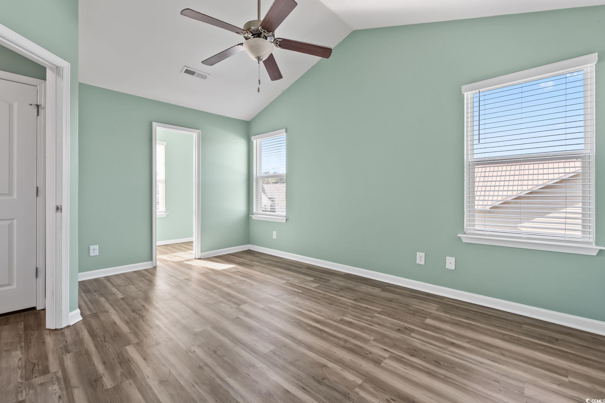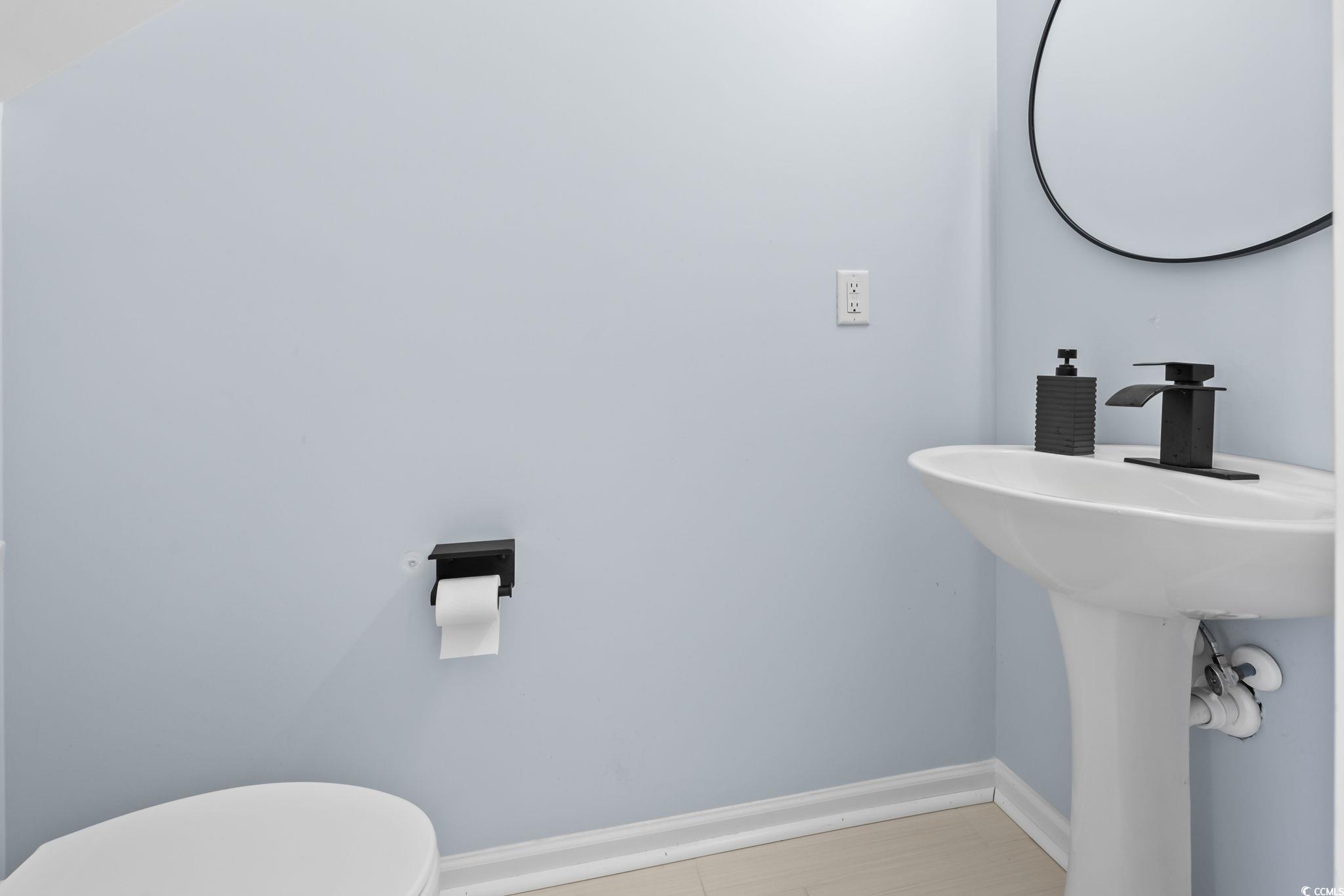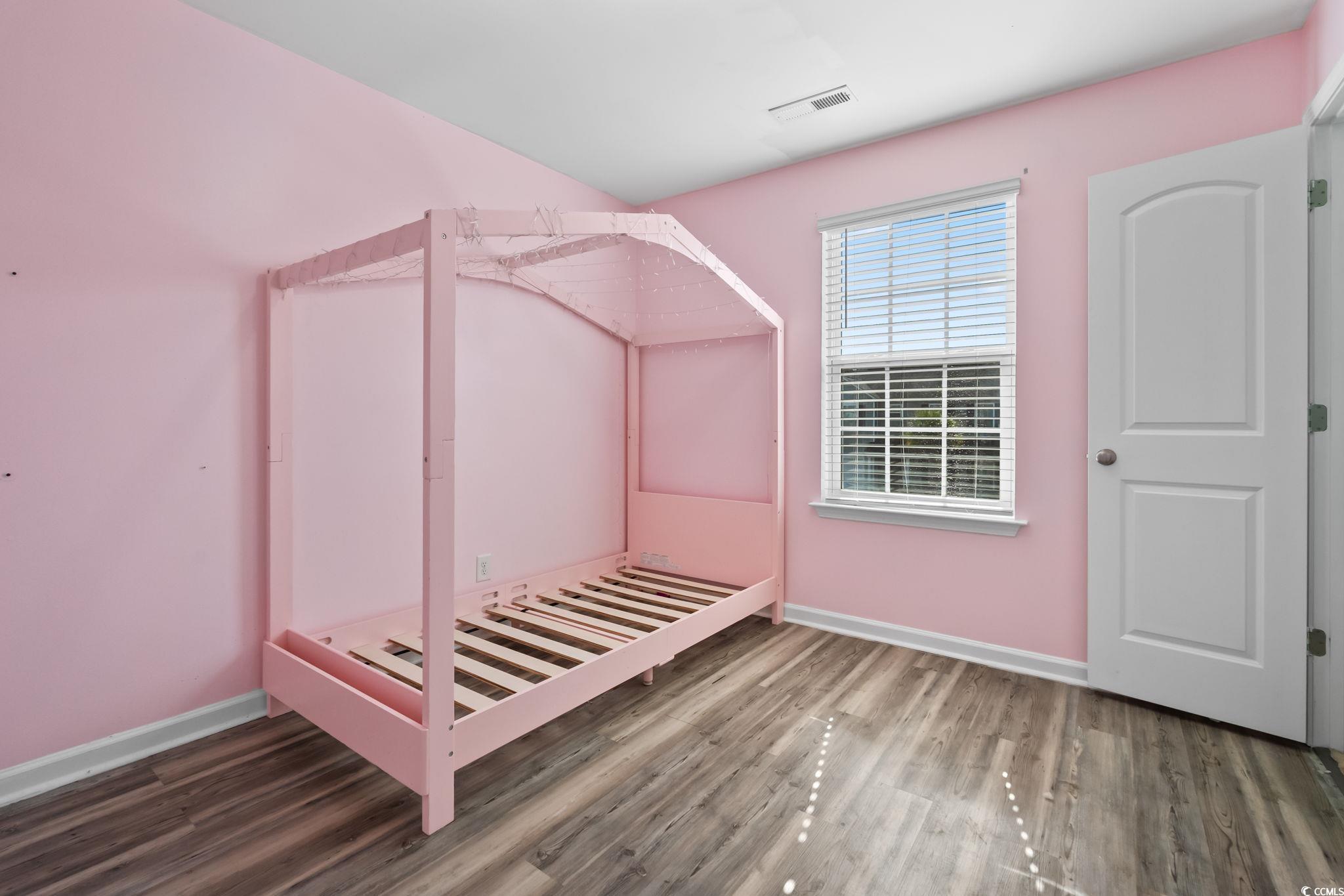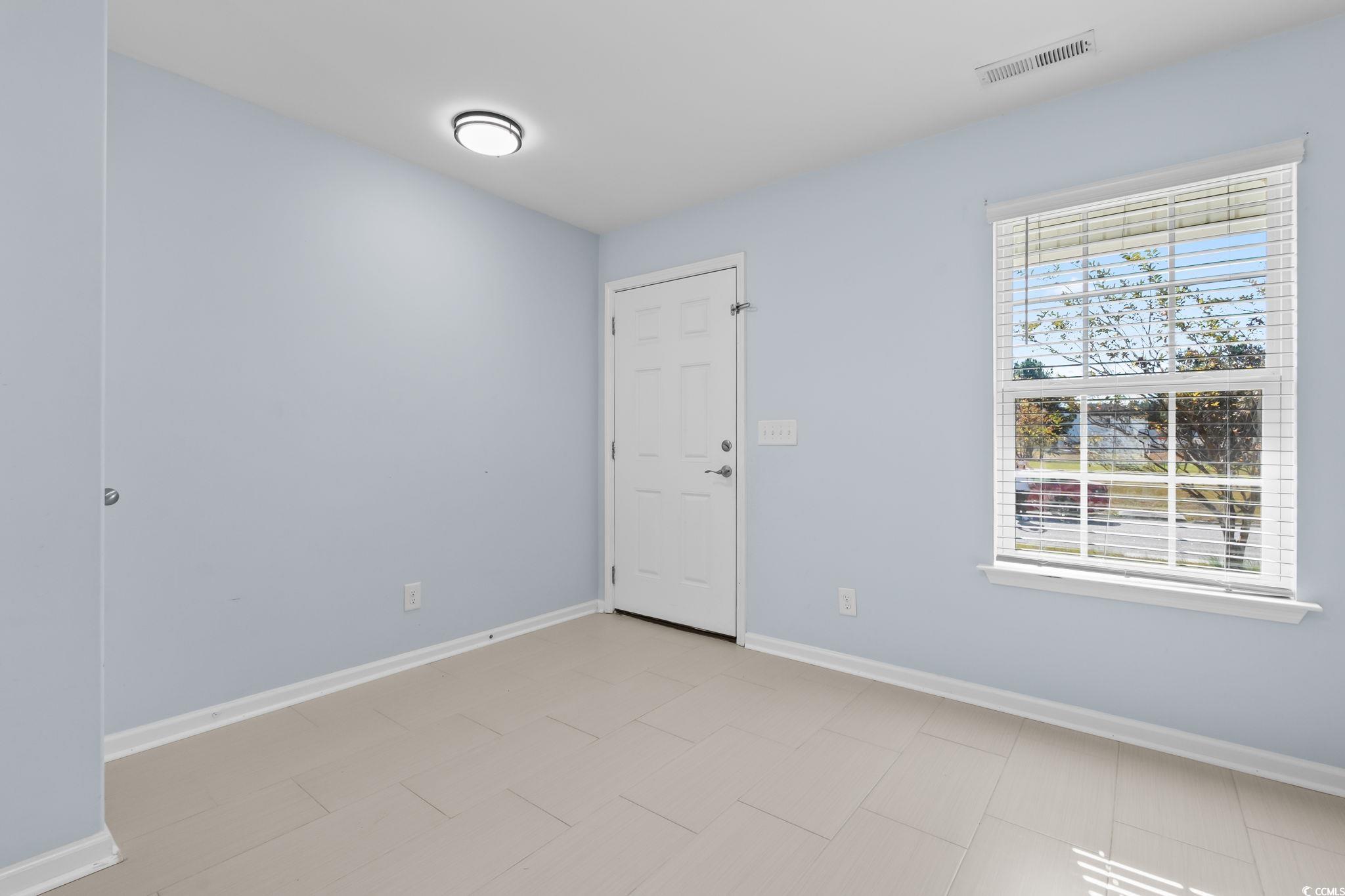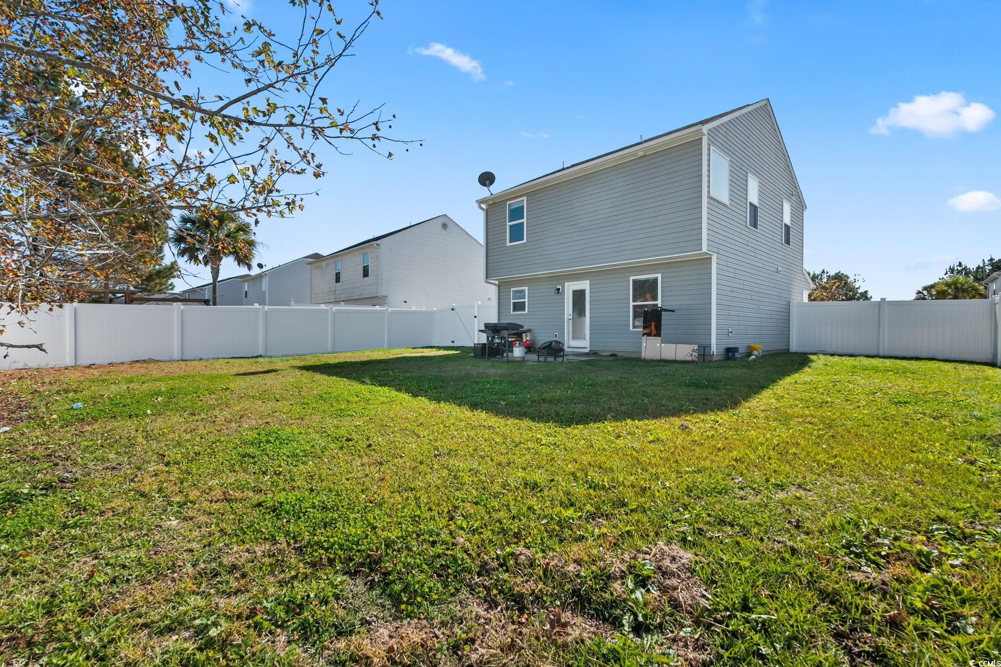 Welcome home! This beautiful 3-bedroom, 2.5-bathroom property is located in the desirable Myrtle Grove Plantation. Step through the front door into a bright living area featuring porcelain tile flooring and a convenient guest bath. The kitchen offers large granite countertops, stainless steel appliances and a spacious pantry. Upstairs you will find two additional bedrooms, a full bathroom and the primary suite complete with its own bathroom and generous closet space. A linen closet is also located in the hallway for added convenience, and the laundry room is situated upstairs as well. The attached 1-car garage includes built-in shelving to maximize storage. Enjoy the large, fully fenced backyard with vinyl privacy fencing- an ideal space for entertaining, grilling or simply relaxing!