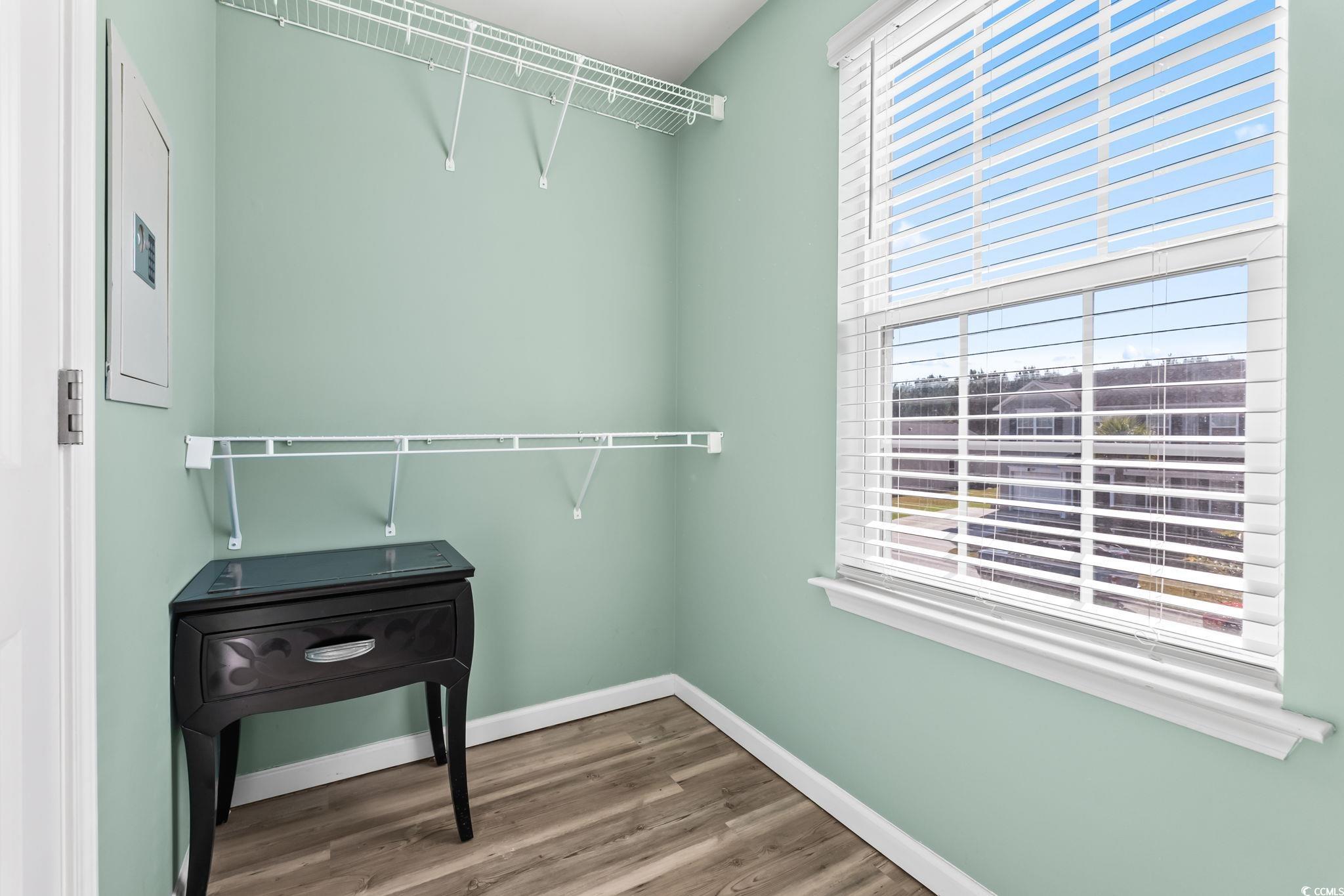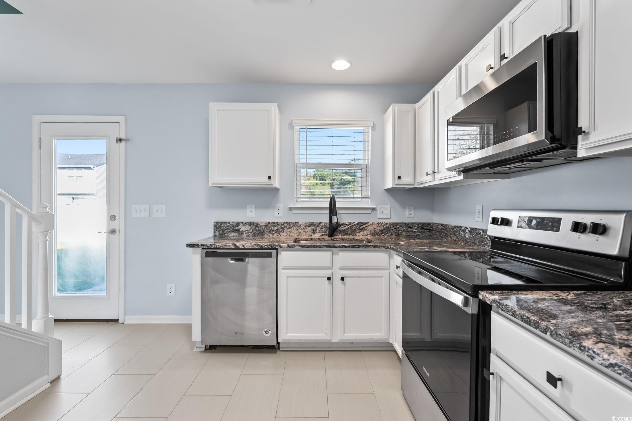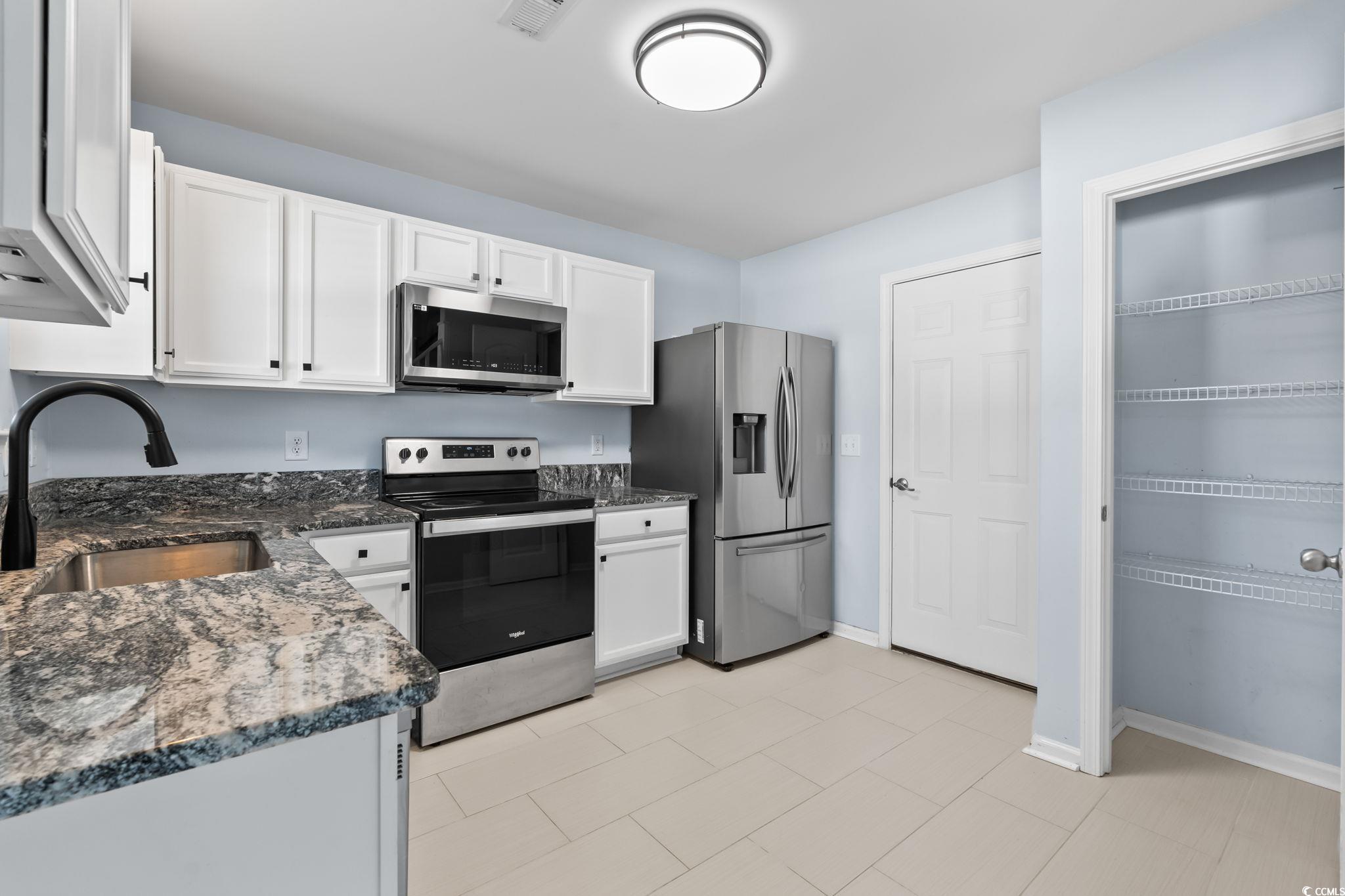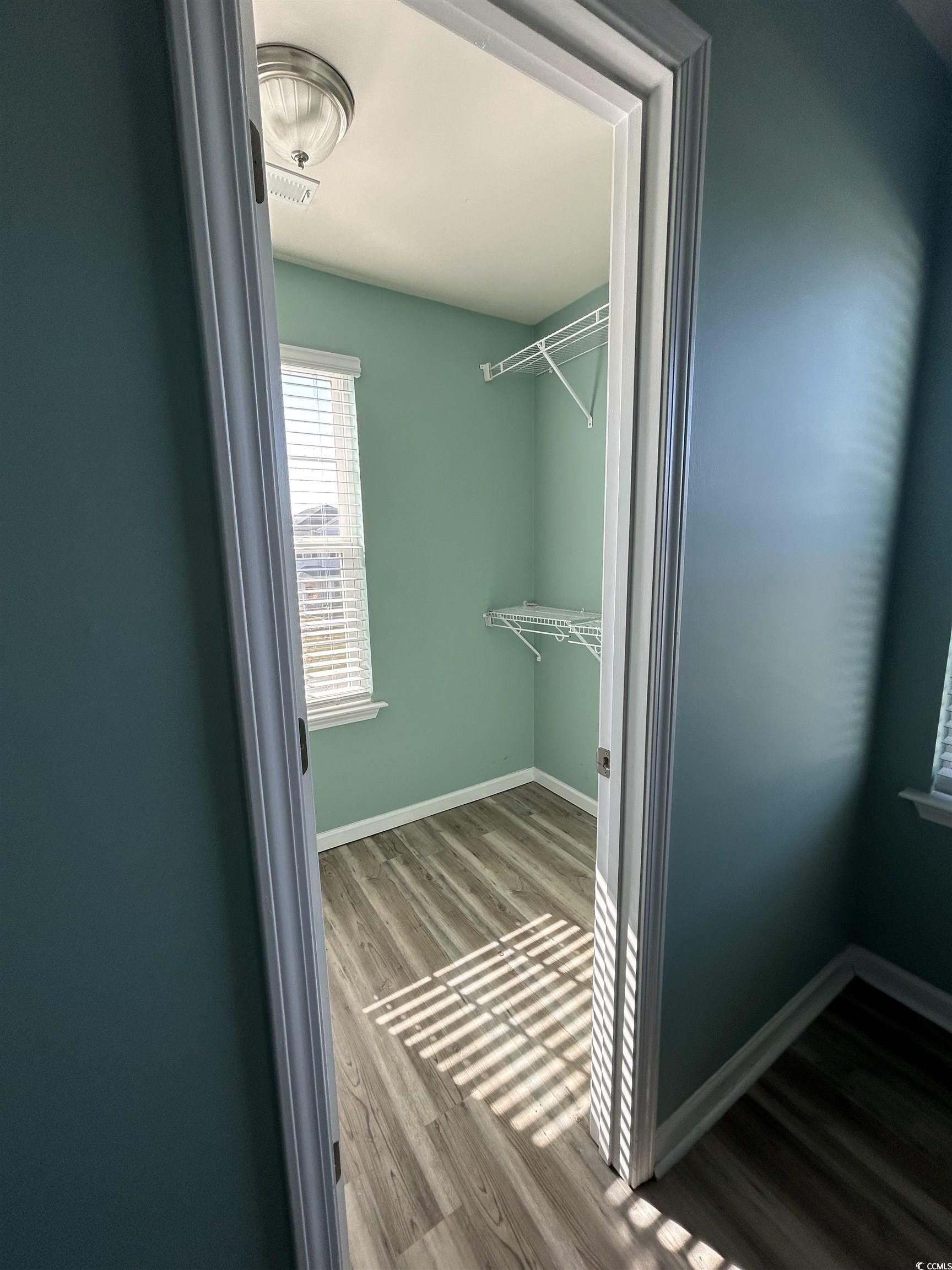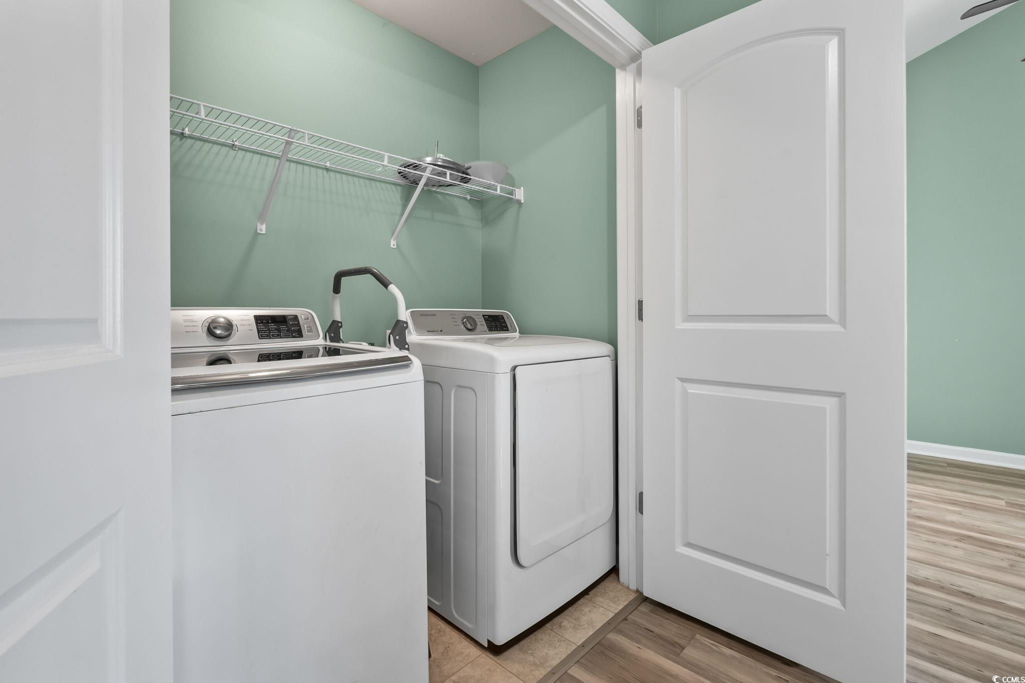 Welcome home! This beautiful 3-bedroom, 2.5-bathroom property is located in the desirable Myrtle Grove Plantation. Step through the front door into a bright living area featuring porcelain tile flooring and a convenient guest bath. The kitchen offers large granite countertops, stainless steel appliances and a spacious pantry. Upstairs you will find two additional bedrooms, a full bathroom and the primary suite complete with its own bathroom and generous closet space. A linen closet is also located in the hallway for added convenience, and the laundry room is situated upstairs as well. The attached 1-car garage includes built-in shelving to maximize storage. Enjoy the large, fully fenced backyard with vinyl privacy fencing- an ideal space for entertaining, grilling or simply relaxing!