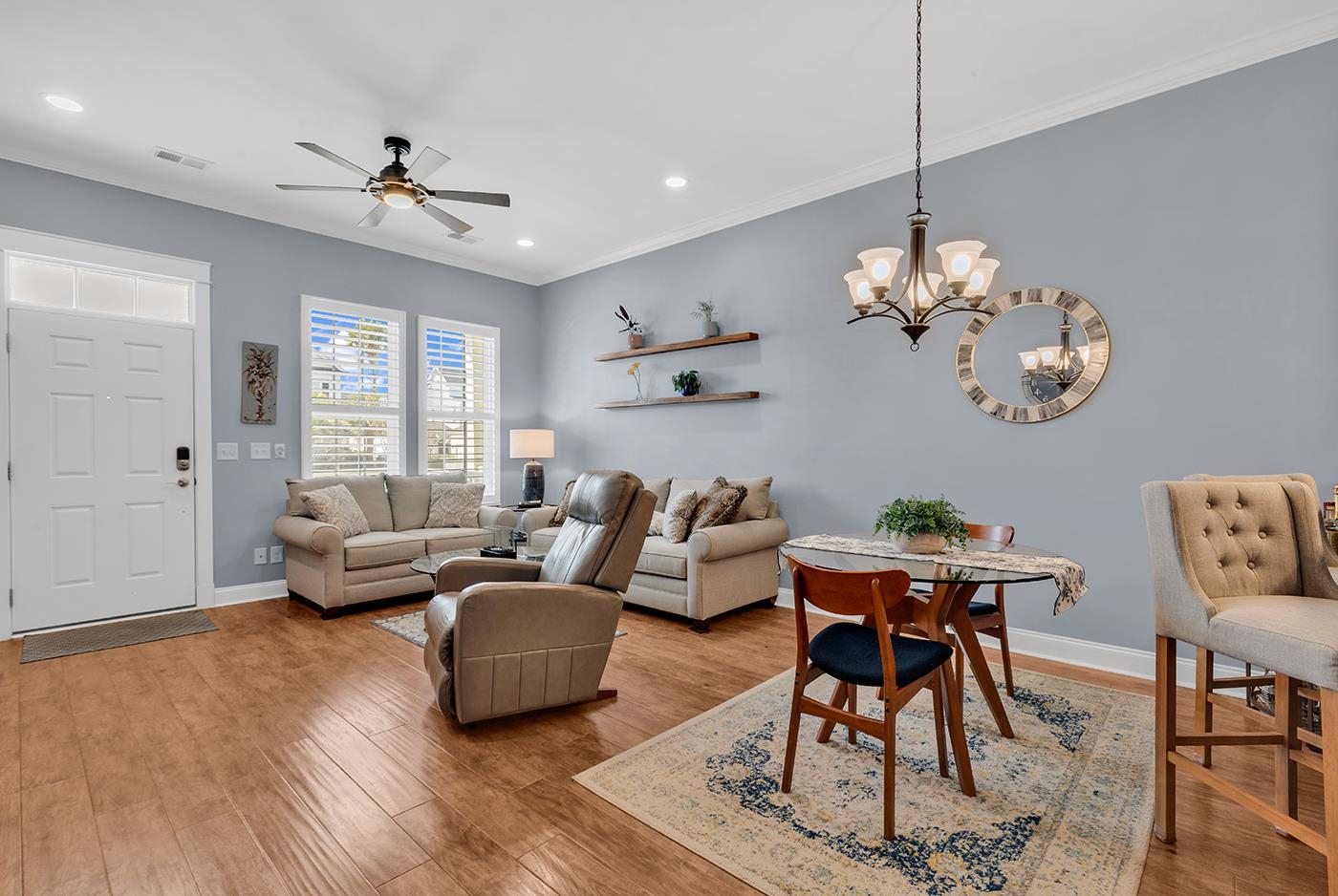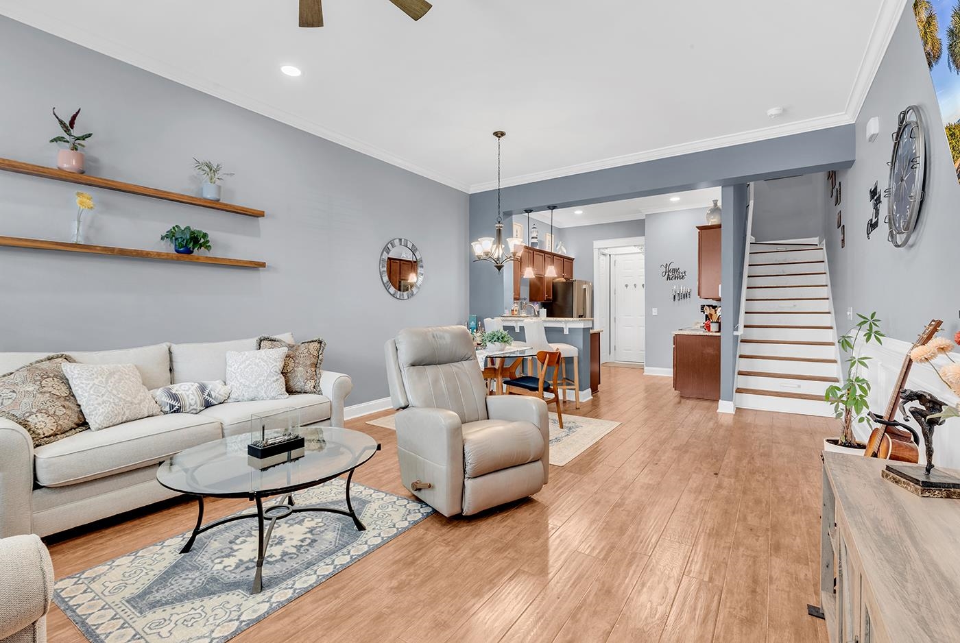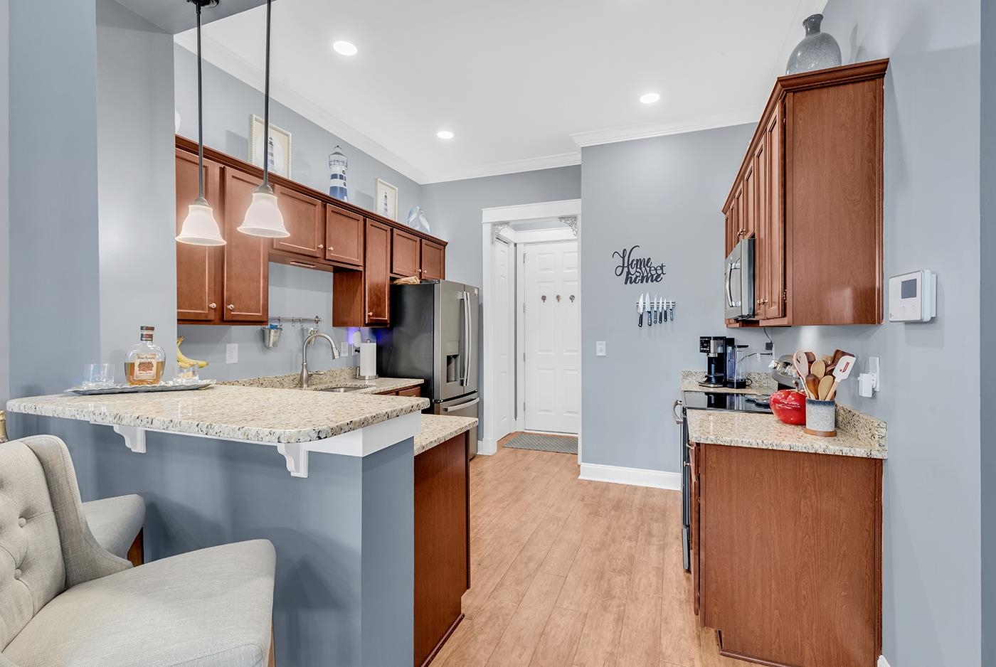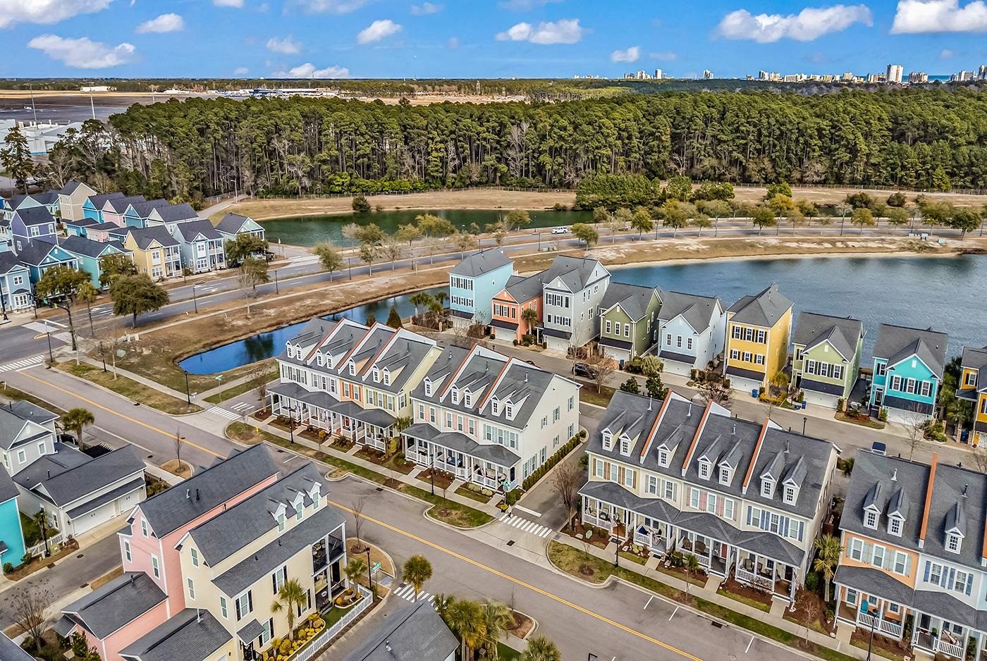 Enjoy life in Market Common! This beautiful home is just a short walk or golf cart ride to the beach, restaurants, shops, parks, and entertainment in one of the Grand Strand’s most sought-after communities. Features include hardwood floors, high ceilings on both levels, and a welcoming front porch with updated Trex decking. The kitchen offers granite countertops and GE appliances. The spacious owner’s suite features a large walk-in closet with custom organization and a private bath with garden tub and separate shower. A second bedroom includes its own full bath — perfect for guests. Additional highlights: oversized 1.5-car garage with epoxy floors and storage, natural gas heat, tankless water heater, and numerous recent upgrades including recessed lighting, plantation shutters, fresh paint, (2)new toilets new upstairs hardwood flooring, and more. HOA includes insurance, lawn care, irrigation, cable, internet, and access to resort-style amenities with pool, lazy river, clubhouse, gym, and hammocks. Owner is a licensed Realtor. Refrigerator in garage does not convey.