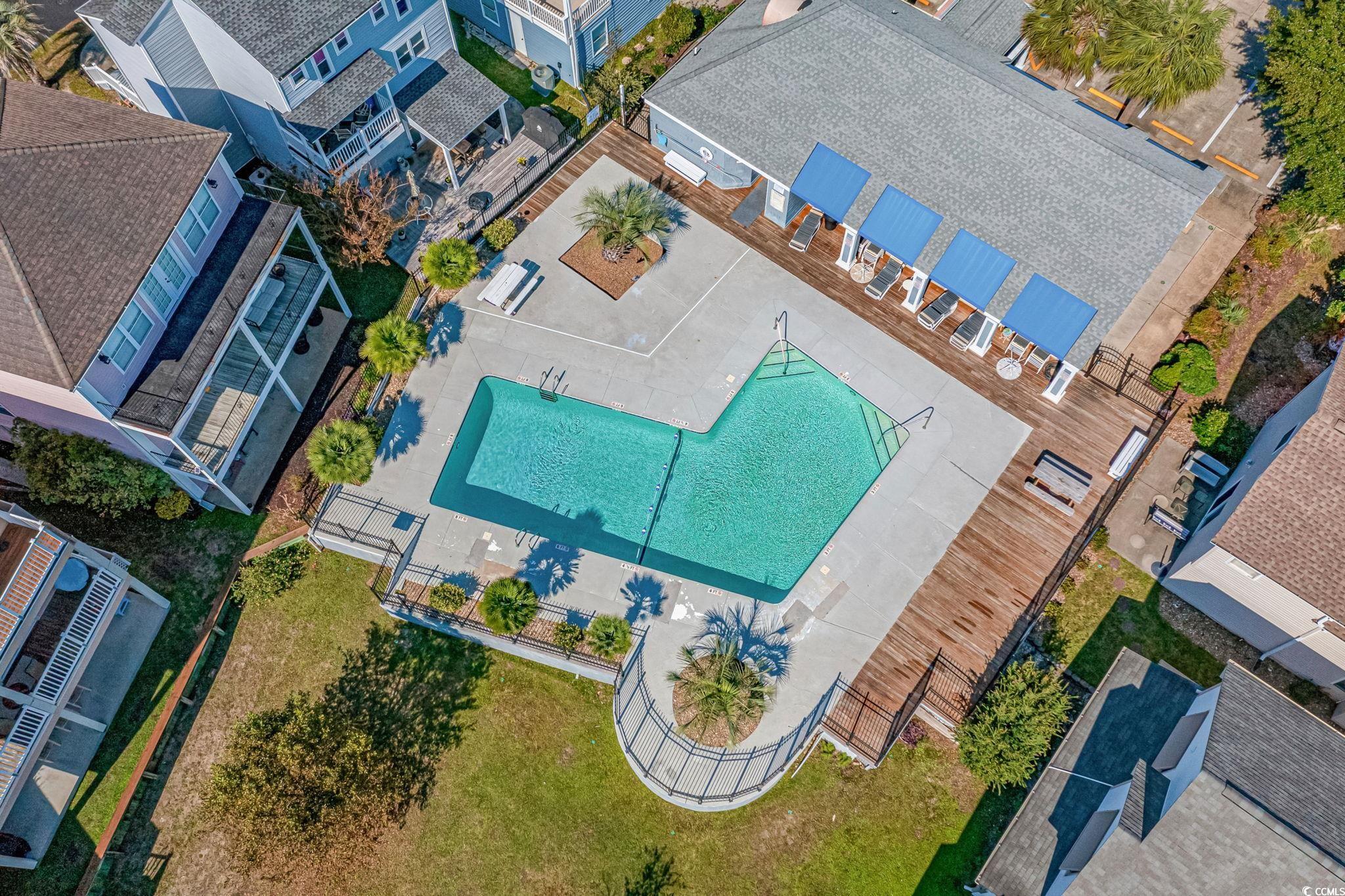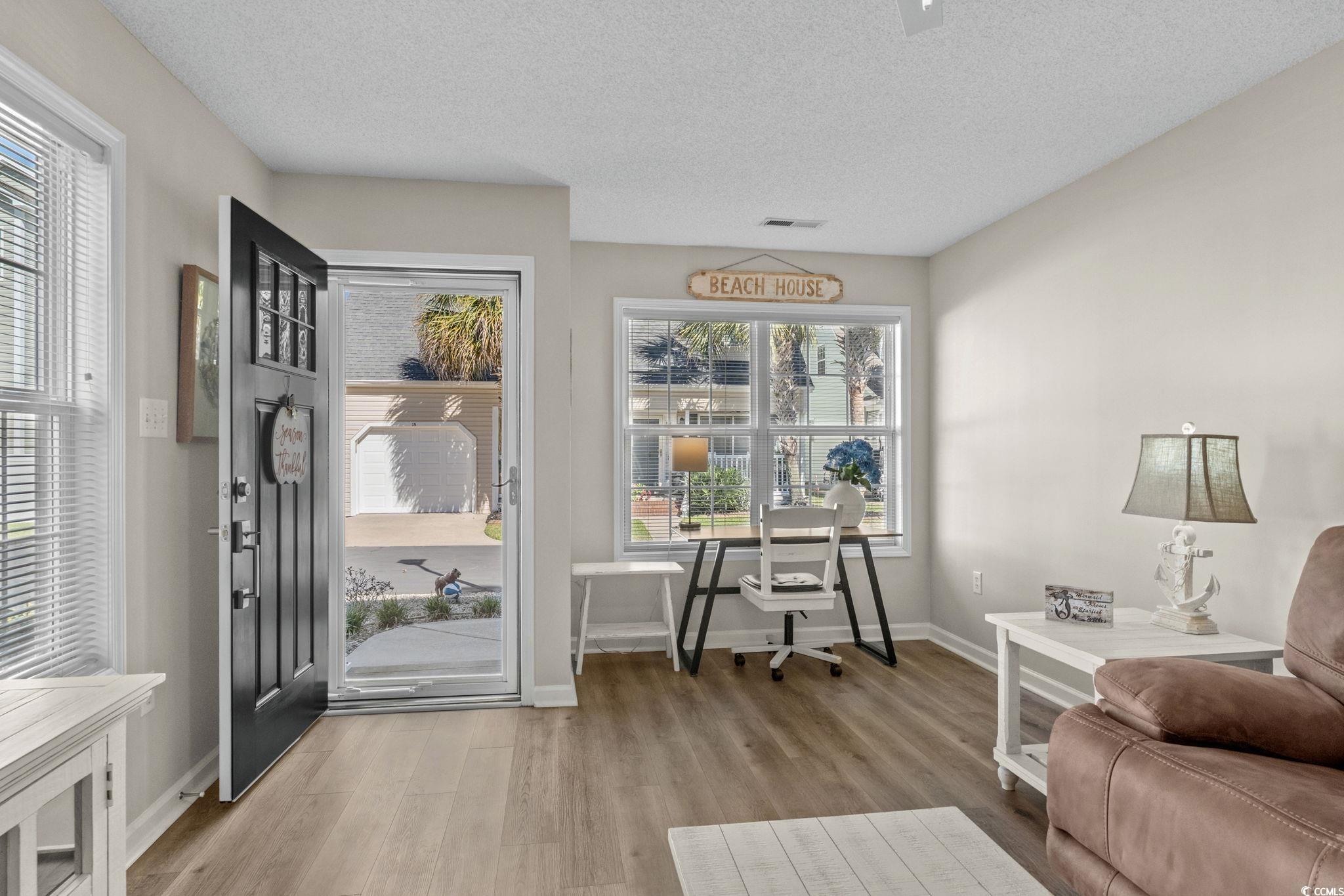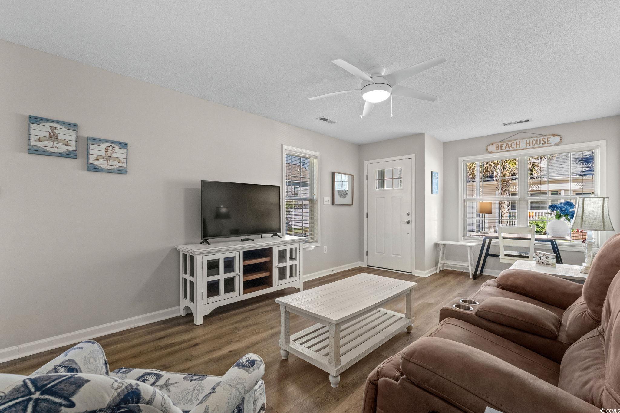 Well-maintained 3 bedroom, 2 ½ bath home in Palmwood Estates located east of Hwy 17 in the Ocean Drive section of North Myrtle Beach. With approximately 1,629 heated square feet, this two-story property features an attached one-car garage with a mounted TV and driveway space for 2 more cars. Home is being sold mostly furnished, making it a great opportunity for buyers seeking a primary residence, vacation home, or investment property. Home is conveniently located a few blocks from the beach allowing for a short walk or quick golf cart ride to the ocean. Recent updates include two new heating and air units installed in 2021 and a new roof completed by Monarch Roofing in 2023. The home has upgraded luxury vinyl plank throughout the family room, dining area and bedrooms, with tile in the kitchen, laundry and bathrooms. The first floor features a nice sized 11’9” x 22’8” family room with a ceiling fan and lots of windows for abundant natural light. The kitchen offers granite countertops with an undermount sink, ample cabinetry including a pantry cabinet, and stainless steel appliances which include a refrigerator, a new dishwasher (2025), and smooth top stove with microwave above. The adjacent dining area (11’3” x 11’) provides a comfortable space overlooking the backyard, ideal for everyday meals or entertaining. The nice-sized laundry room accommodates a side-by-side washer and dryer (2020), shelving storage above, utility sink, and an additional storage closet. All appliances convey with the home. Upstairs, the spacious primary suite (16’7” x 14’5”) includes two closets, a ceiling fan, and an updated bathroom with a double-sink granite vanity, a linen closet, and a recently installed 5’ walk-in shower (2022) with modern glass sliding doors. Two additional guest bedrooms, each with ceiling fans, are also located on the 2nd level, along with a guest bathroom that includes updated lighting, granite countertop, and a tub/shower combination. Additional features include a transferable termite bond from MidSouth Pest Control, outdoor shower, and access to a community clubhouse and large pool. Owners are allowed golf carts and pets. No short term rentals. The low HOA fee includes common area maintenance, pool and clubhouse maintenance and basic yard maintenance (grass mowing). Come see this beautiful home so close to everything North Myrtle Beach has to offer: shopping, restaurants, fishing, golfing, entertainment…and don’t forget the amazing Intracoastal Waterway and nearby sandy beaches of the Atlantic Ocean! Come see your new beach home today!