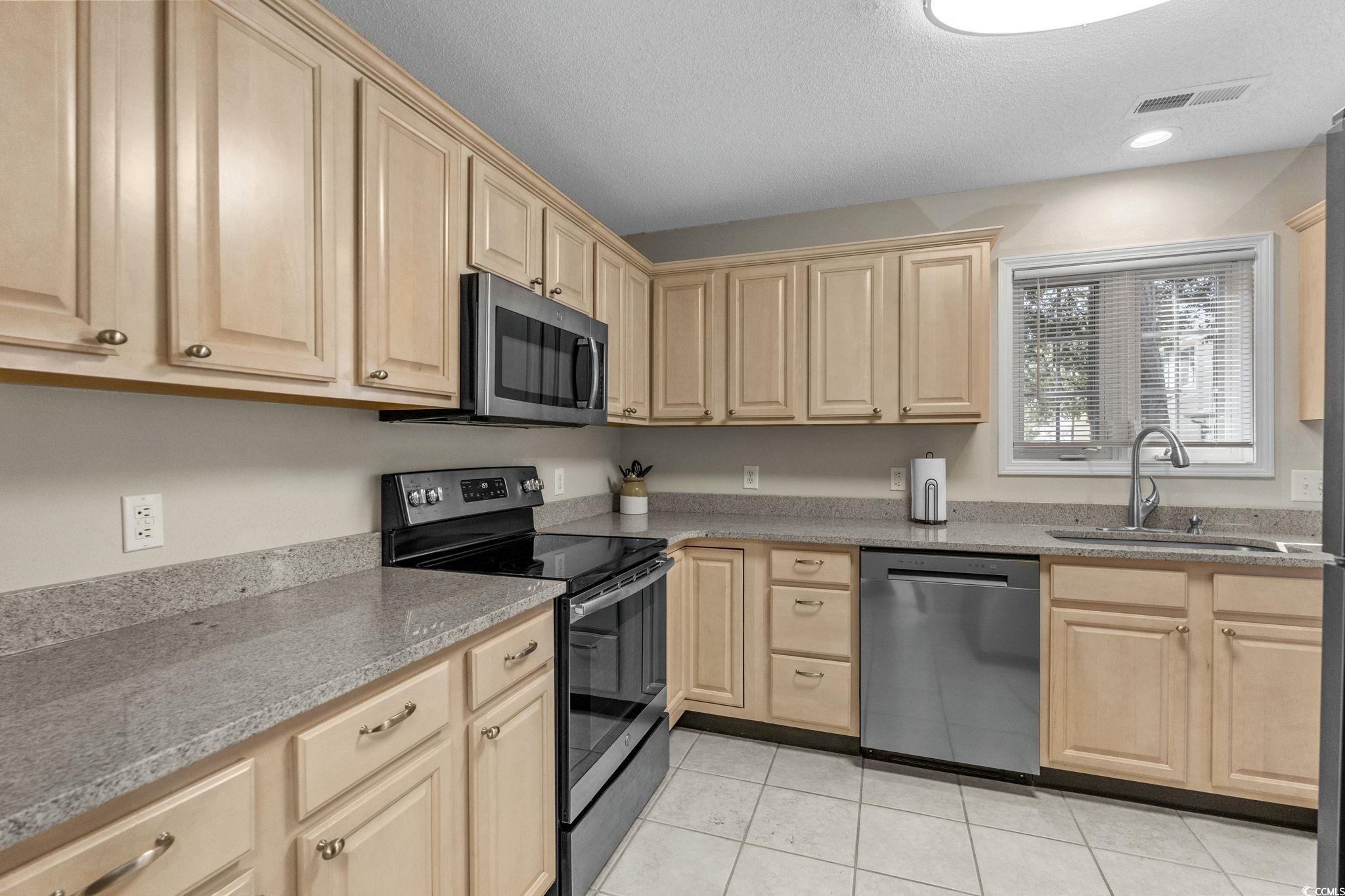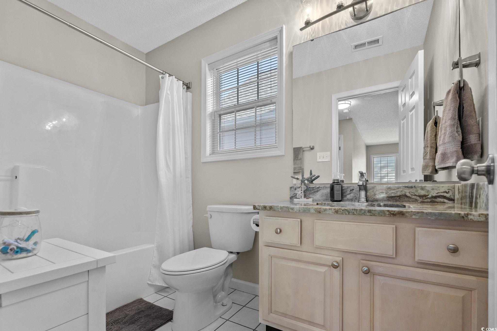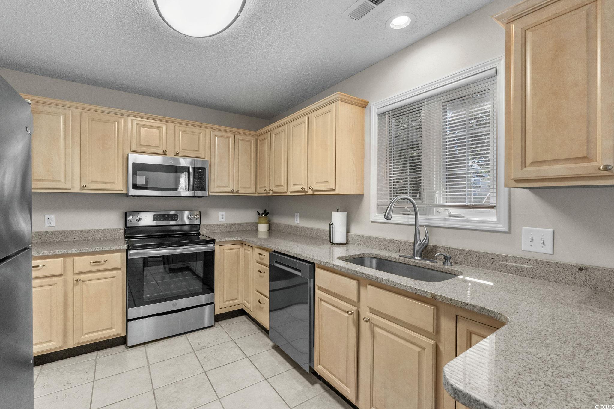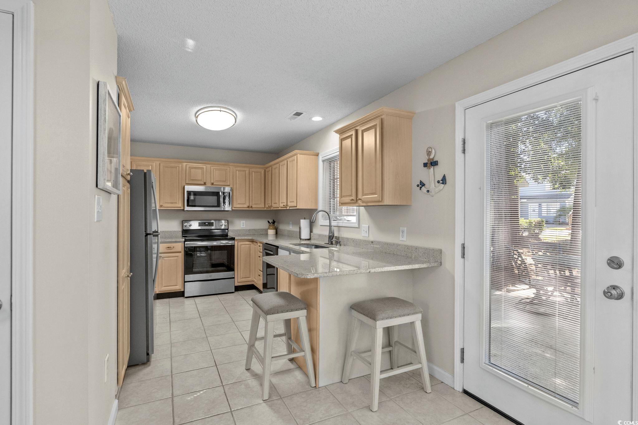 Well-maintained 3 bedroom, 2 ½ bath home in Palmwood Estates located east of Hwy 17 in the Ocean Drive section of North Myrtle Beach. With approximately 1,629 heated square feet, this two-story property features an attached one-car garage with a mounted TV and driveway space for 2 more cars. Home is being sold mostly furnished, making it a great opportunity for buyers seeking a primary residence, vacation home, or investment property. Home is conveniently located a few blocks from the beach allowing for a short walk or quick golf cart ride to the ocean. Recent updates include two new heating and air units installed in 2021 and a new roof completed by Monarch Roofing in 2023. The home has upgraded luxury vinyl plank throughout the family room, dining area and bedrooms, with tile in the kitchen, laundry and bathrooms. The first floor features a nice sized 11’9” x 22’8” family room with a ceiling fan and lots of windows for abundant natural light. The kitchen offers granite countertops with an undermount sink, ample cabinetry including a pantry cabinet, and stainless steel appliances which include a refrigerator, a new dishwasher (2025), and smooth top stove with microwave above. The adjacent dining area (11’3” x 11’) provides a comfortable space overlooking the backyard, ideal for everyday meals or entertaining. The nice-sized laundry room accommodates a side-by-side washer and dryer (2020), shelving storage above, utility sink, and an additional storage closet. All appliances convey with the home. Upstairs, the spacious primary suite (16’7” x 14’5”) includes two closets, a ceiling fan, and an updated bathroom with a double-sink granite vanity, a linen closet, and a recently installed 5’ walk-in shower (2022) with modern glass sliding doors. Two additional guest bedrooms, each with ceiling fans, are also located on the 2nd level, along with a guest bathroom that includes updated lighting, granite countertop, and a tub/shower combination. Additional features include a transferable termite bond from MidSouth Pest Control, outdoor shower, and access to a community clubhouse and large pool. Owners are allowed golf carts and pets. No short term rentals. The low HOA fee includes common area maintenance, pool and clubhouse maintenance and basic yard maintenance (grass mowing). Come see this beautiful home so close to everything North Myrtle Beach has to offer: shopping, restaurants, fishing, golfing, entertainment…and don’t forget the amazing Intracoastal Waterway and nearby sandy beaches of the Atlantic Ocean! Come see your new beach home today!