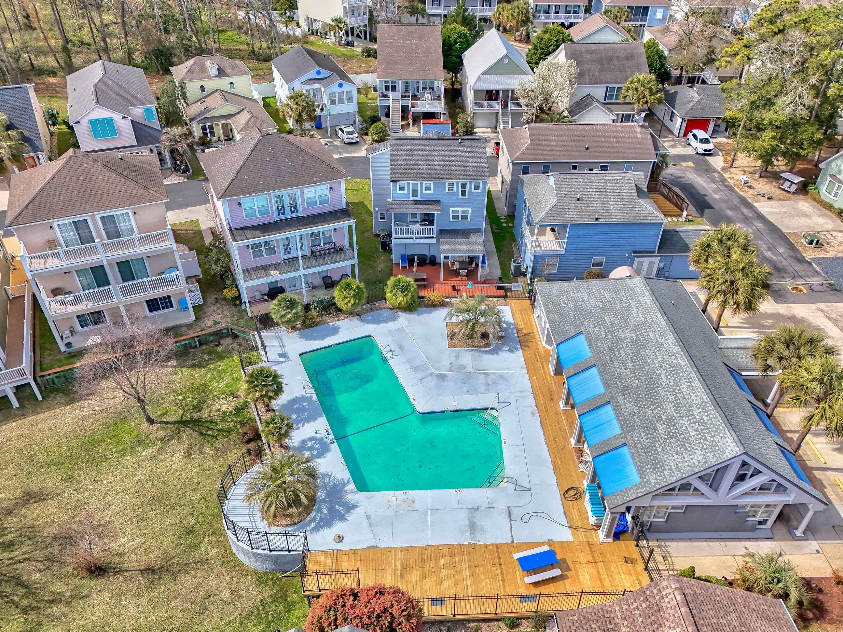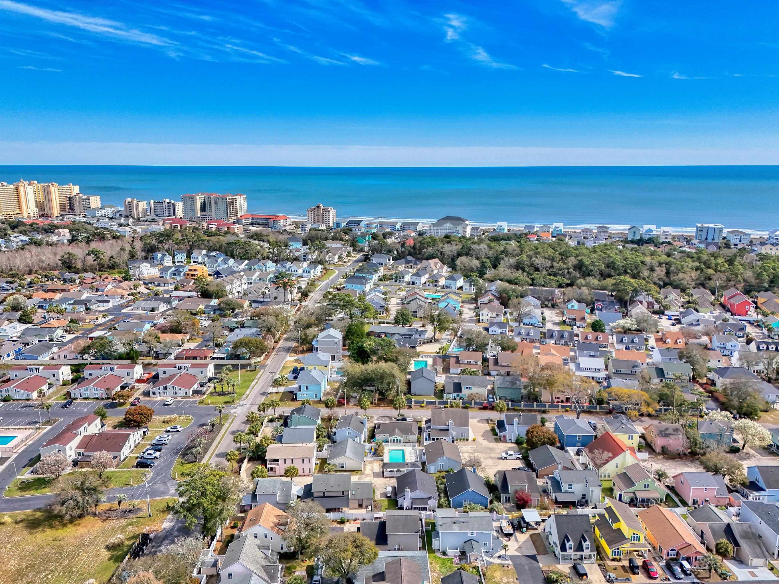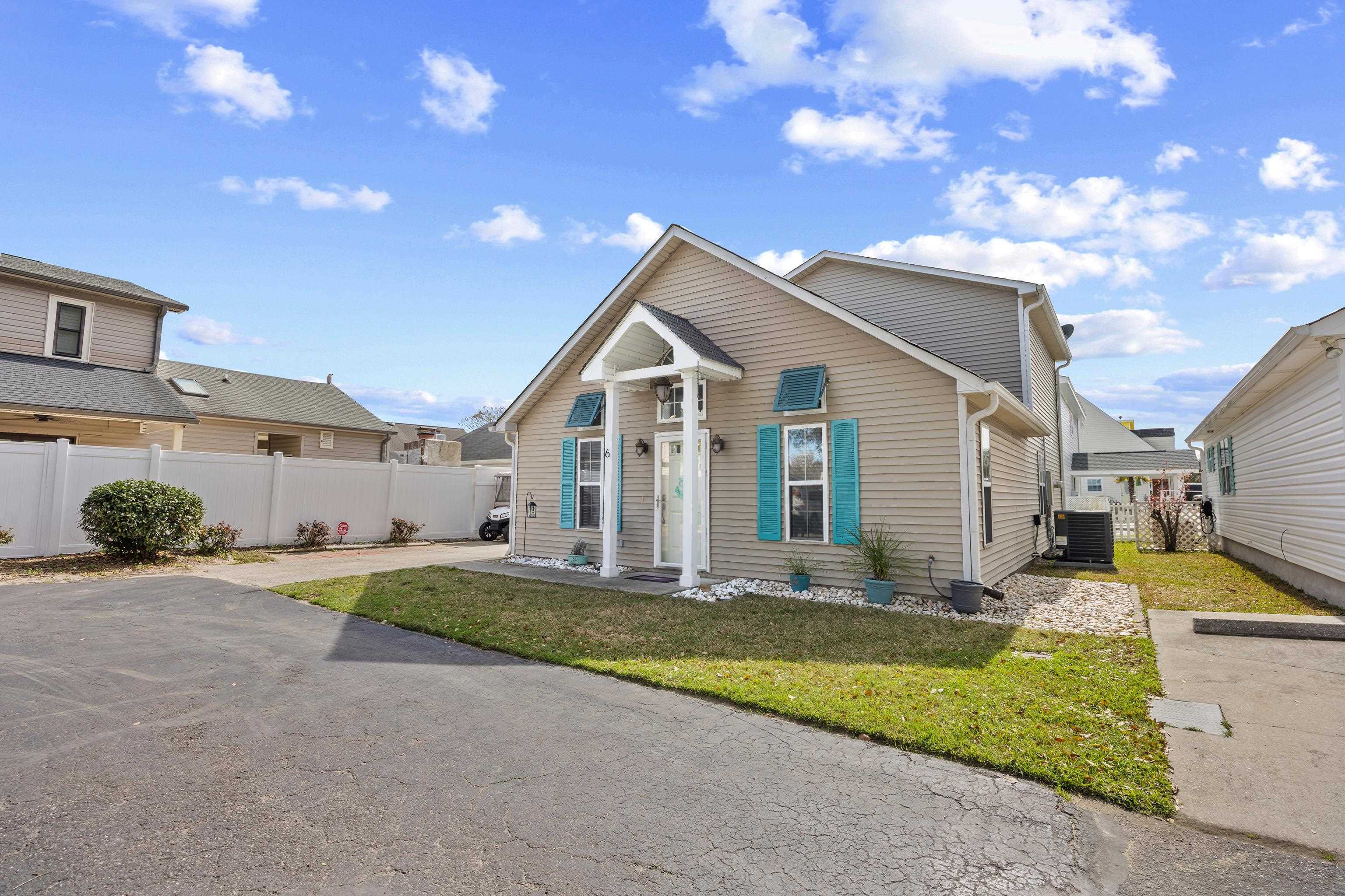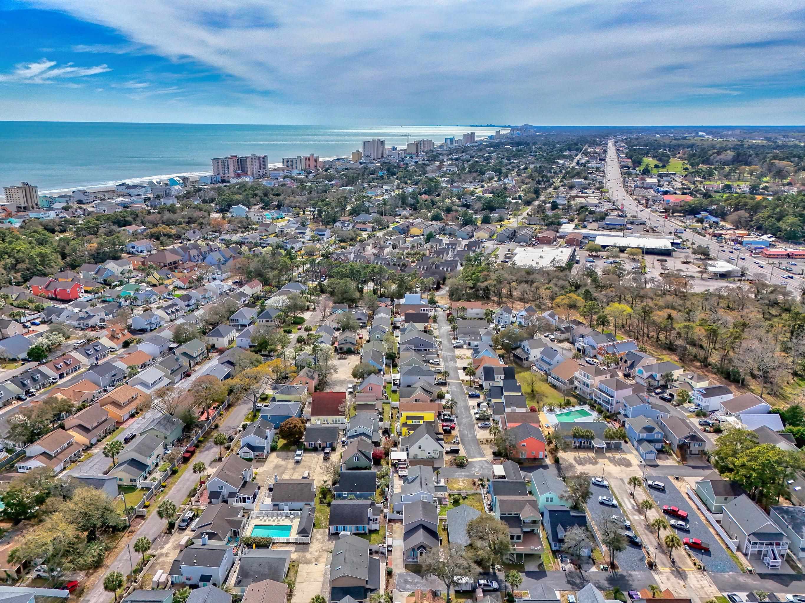 Your beach getaway home awaits! Located in the Ocean Drive section of North Myrtle Beach, tucked into Palmwood Estates this 4 bedroom 3 bath home has nice updates and a great flow. Check out the Bahama Shutters! Entering you are welcomed to an open living area with cathedral ceilings, dining area, nice size kitchen with lots of cabinets and granite counters. The flooring on this level is LVP and tile. Main bedroom with two closets, and a full bath and 2nd bedroom with full bath too! Upstairs you will find two nice size bedrooms, carpeted, and a large full bath with tile floors. Vanities are raised style, and baths have high rise commodes. Outside is a 3 car driveway. Imagine dedicating a portion to seating to get your morning coffee! And next to sliding door is a hot/cold shower to rinse off after a trip to the beach! Recent updates include furnace, sliding door from dining and window in kitchen. Palmwood Estates offers an outdoor saltwater pool and small clubhouse with gathering area, fireplace, and kitchen area. Great living with the beach just a few blocks away. Check out Main Street for shopping, dining, and entertainment. Time to come live at the beach; your full time or 2nd home is waiting.