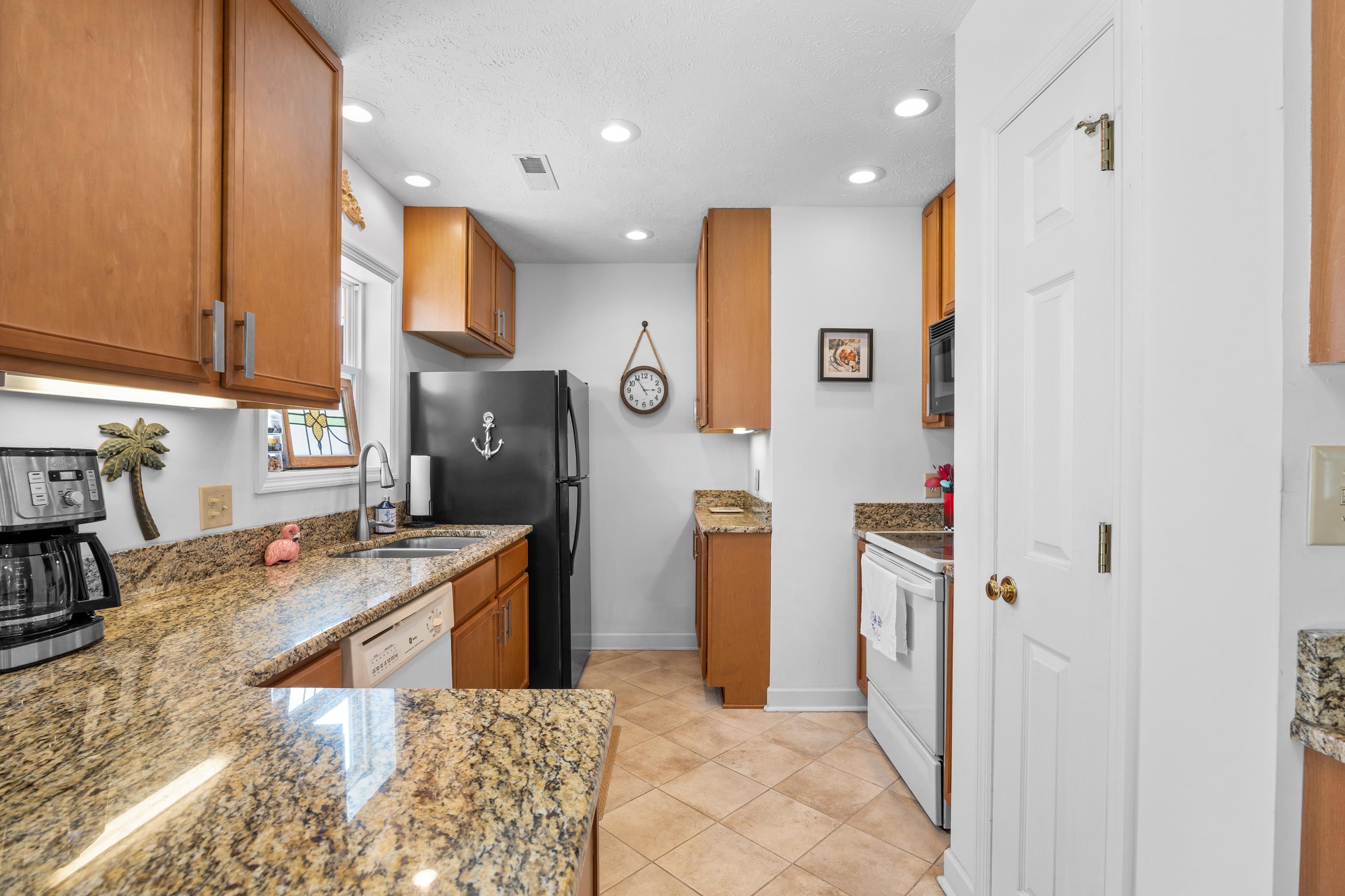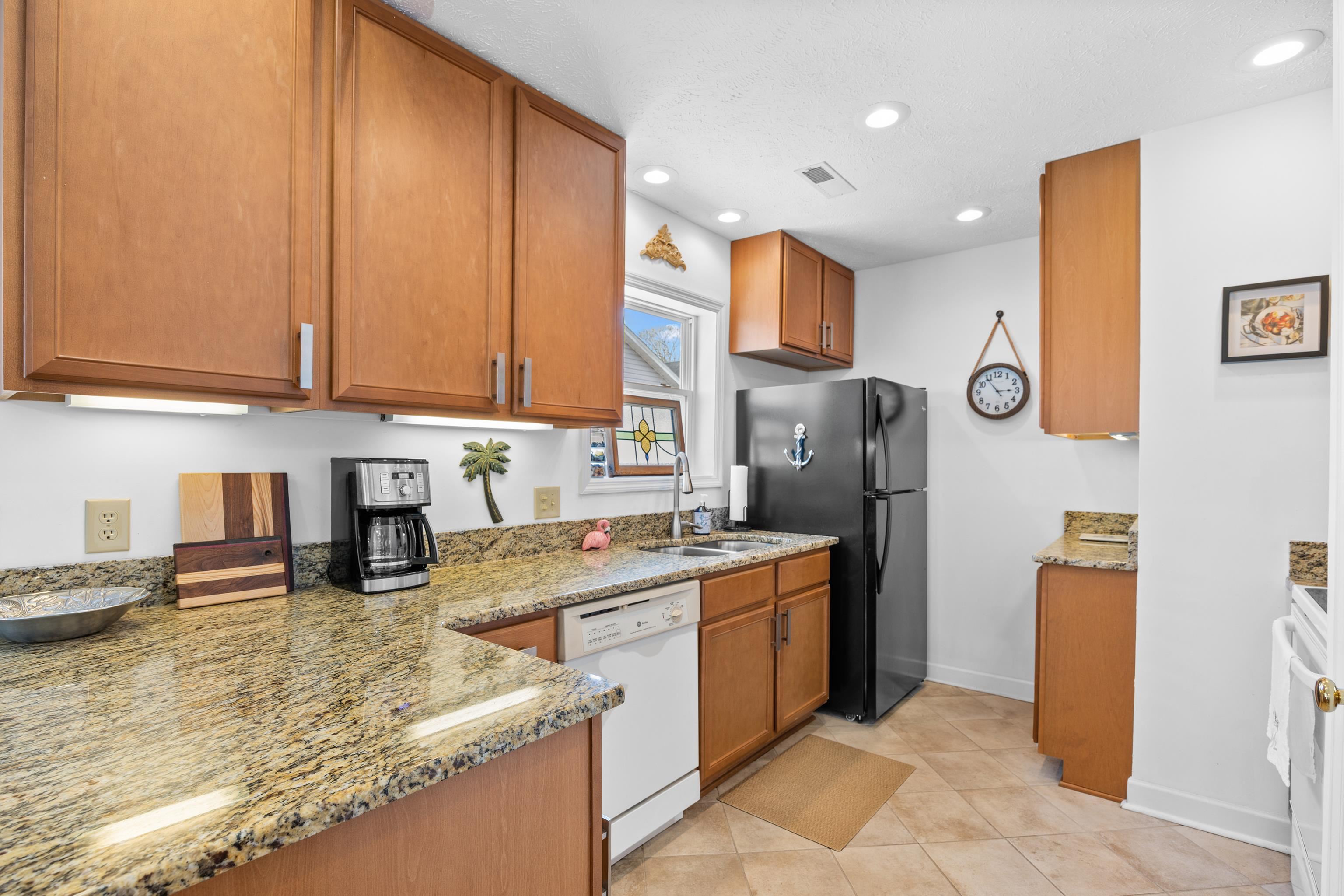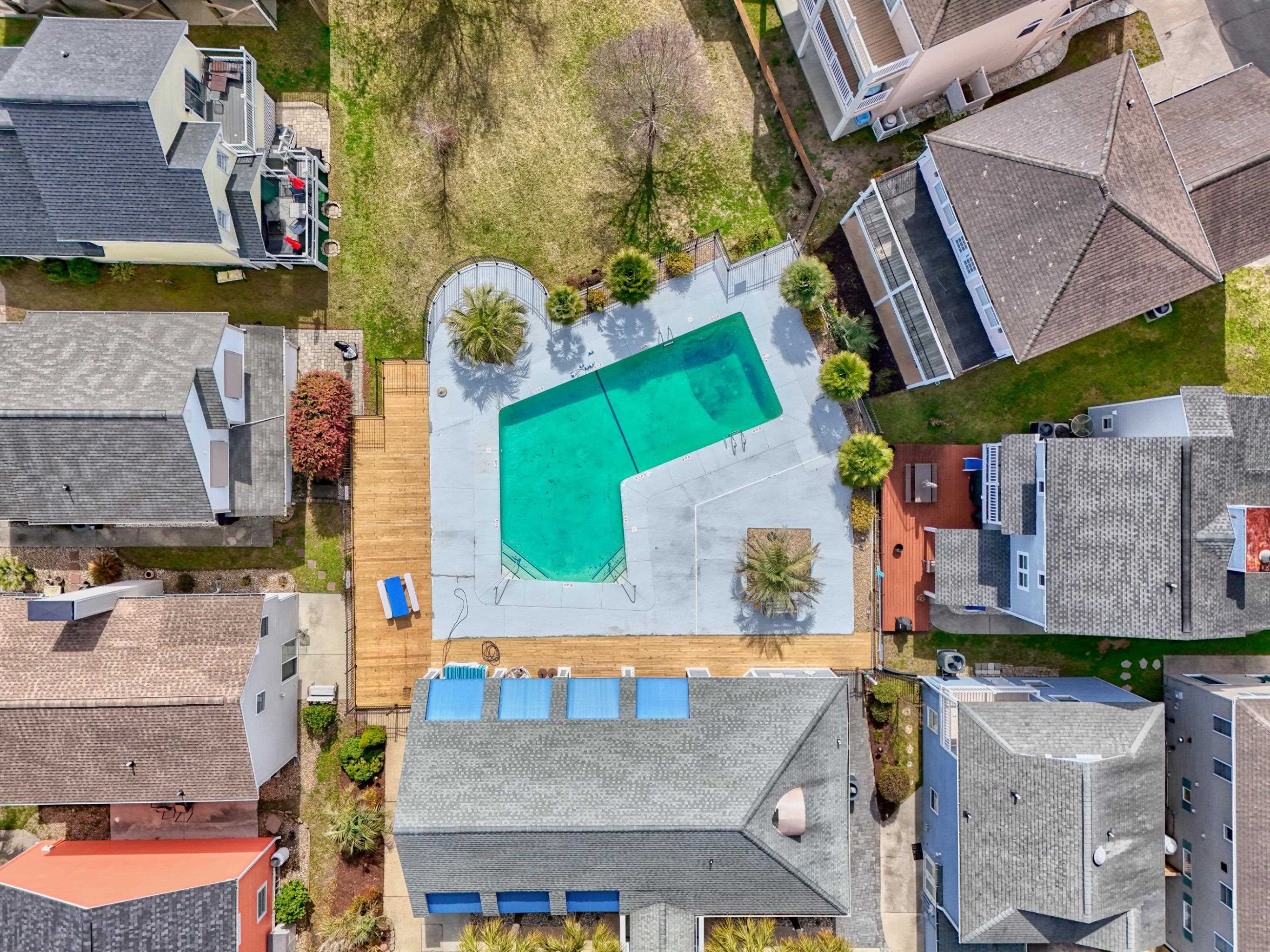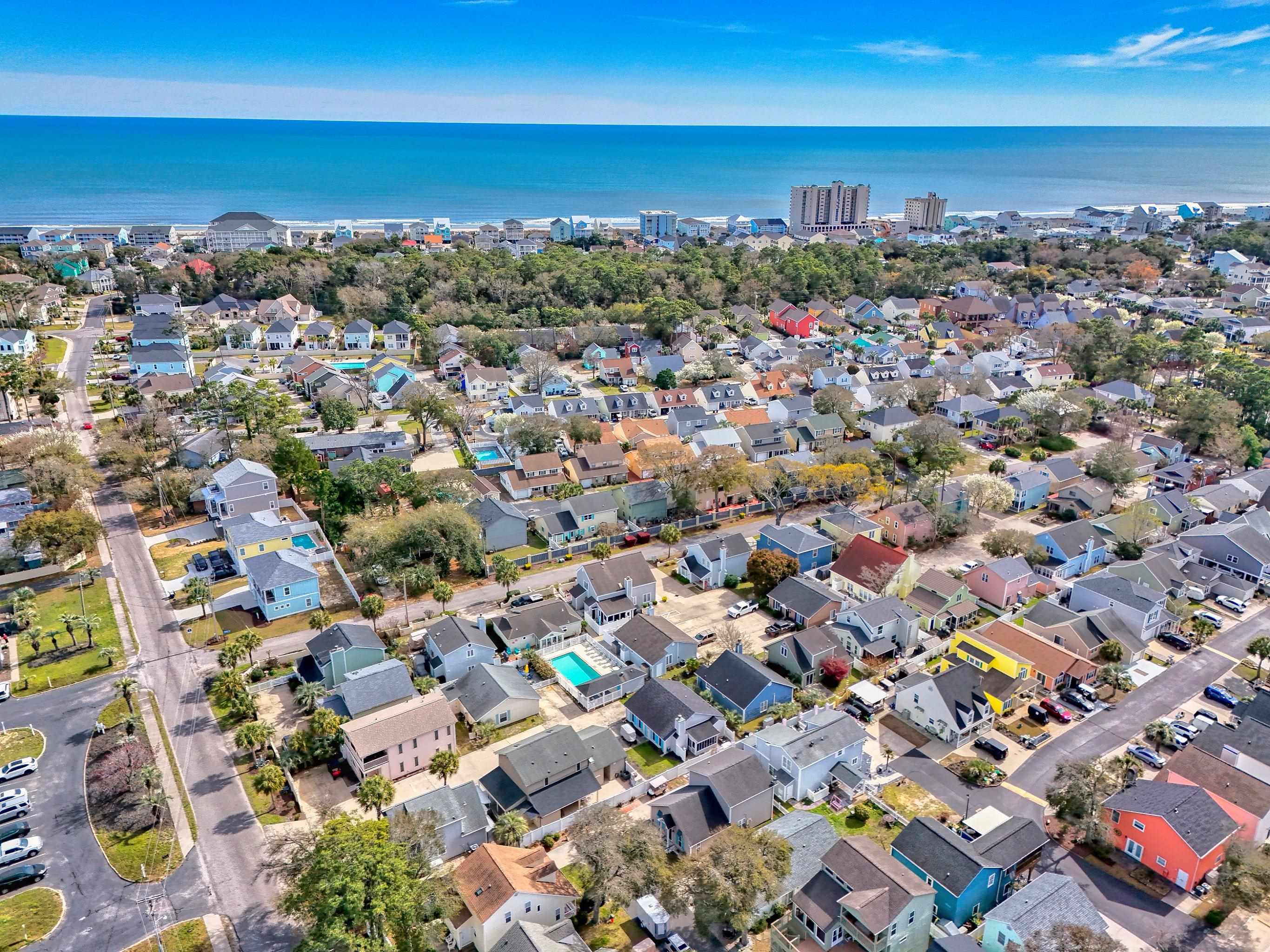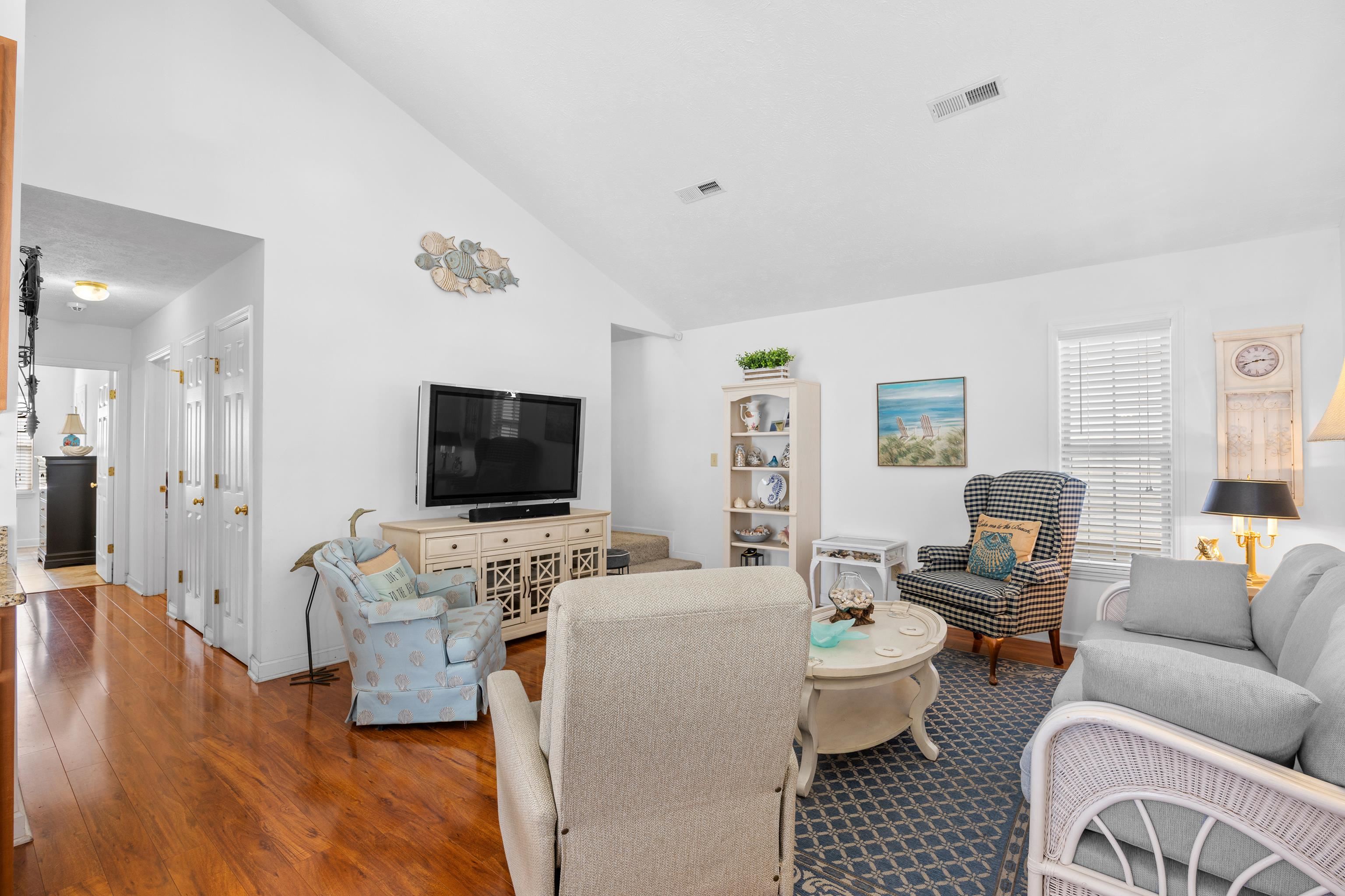Your beach getaway home awaits! Located in the Ocean Drive section of North Myrtle Beach, tucked into Palmwood Estates this 4 bedroom 3 bath home has nice updates and a great flow. Check out the Bahama Shutters! Entering you are welcomed to an open living area with cathedral ceilings, dining area, nice size kitchen with lots of cabinets and granite counters. The flooring on this level is LVP and tile. Main bedroom with two closets, and a full bath and 2nd bedroom with full bath too! Upstairs you will find two nice size bedrooms, carpeted, and a large full bath with tile floors. Vanities are raised style, and baths have high rise commodes. Outside is a 3 car driveway. Imagine dedicating a portion to seating to get your morning coffee! And next to sliding door is a hot/cold shower to rinse off after a trip to the beach! Recent updates include furnace, sliding door from dining and window in kitchen. Palmwood Estates offers an outdoor saltwater pool and small clubhouse with gathering area, fireplace, and kitchen area. Great living with the beach just a few blocks away. Check out Main Street for shopping, dining, and entertainment. Time to come live at the beach; your full time or 2nd home is waiting.