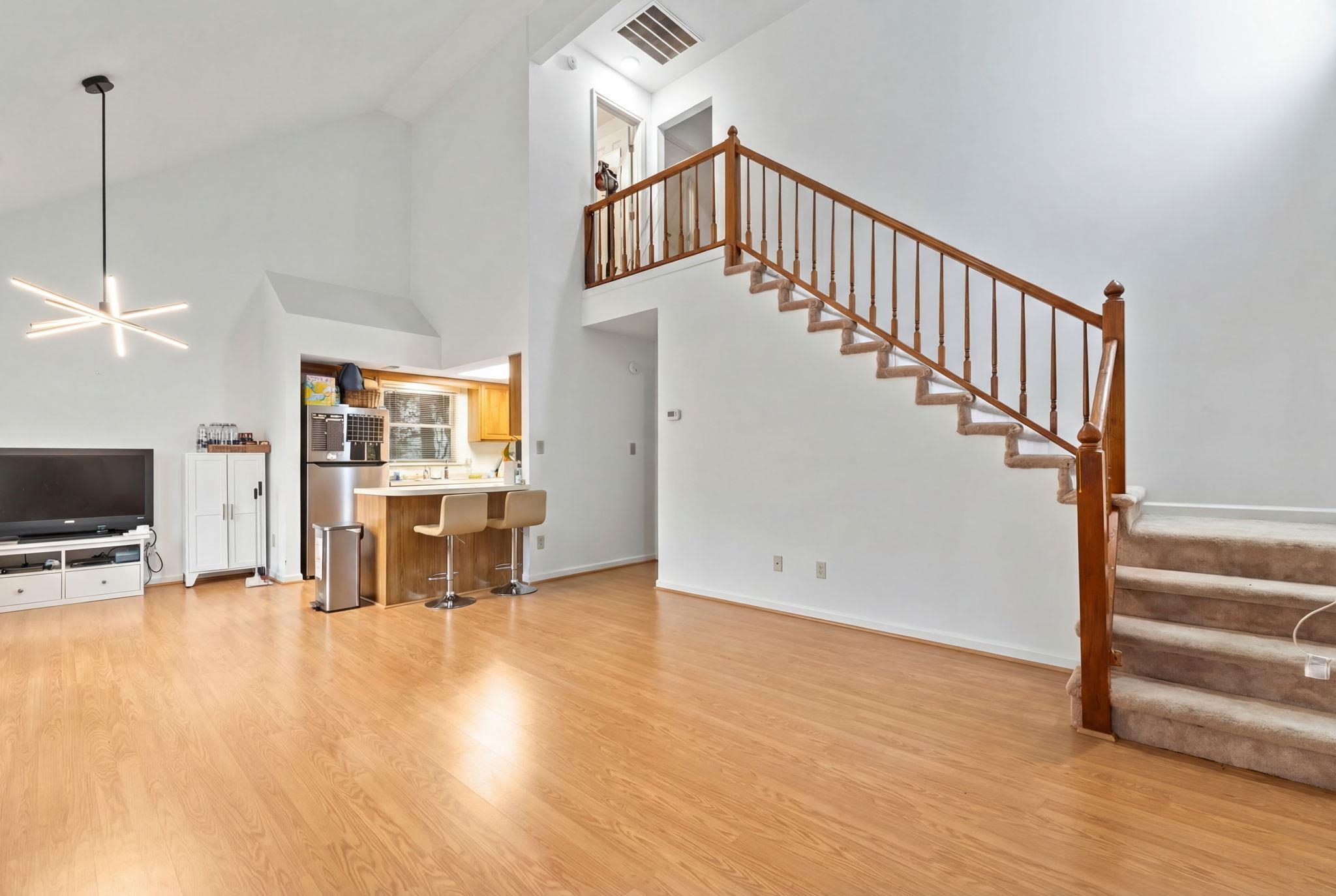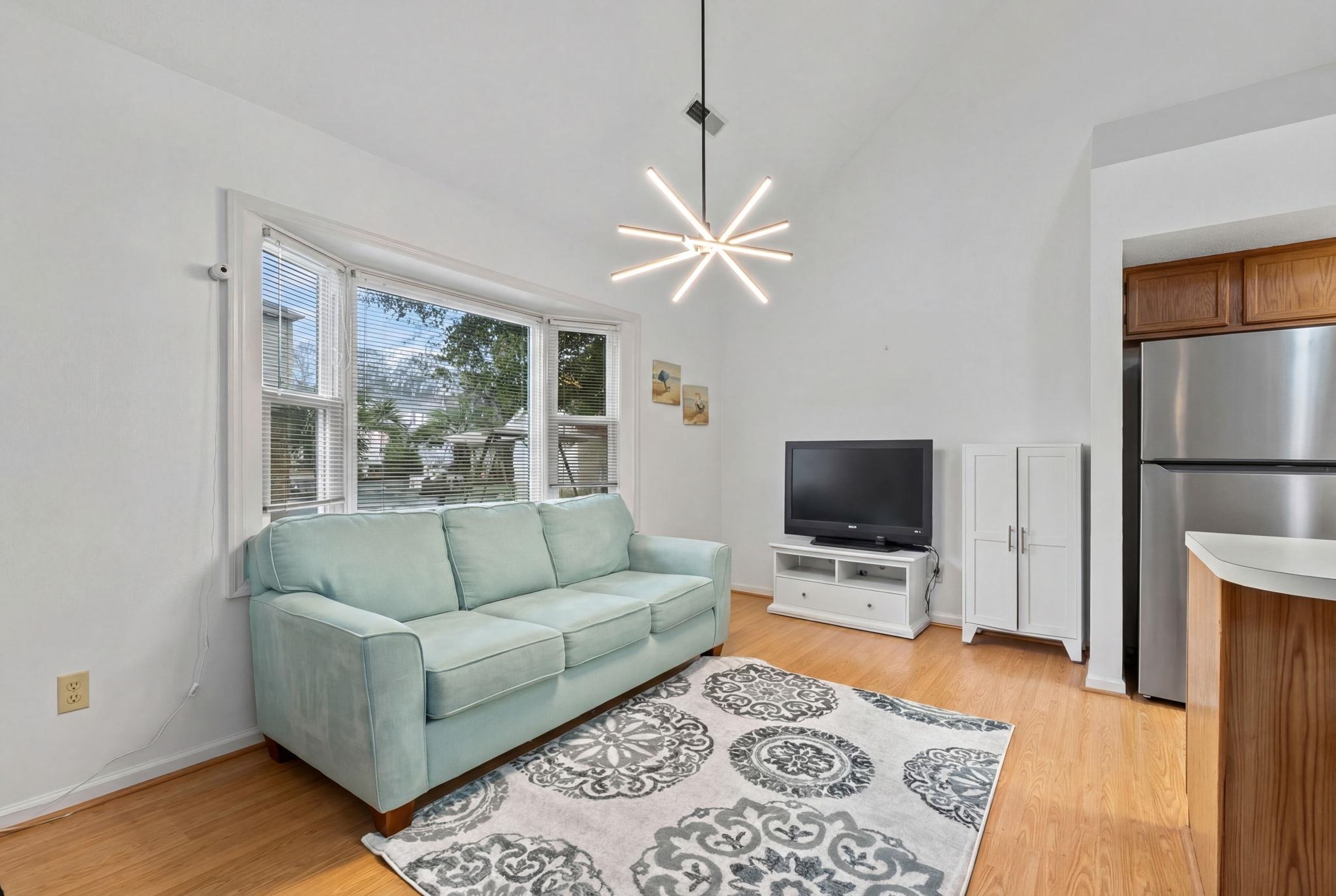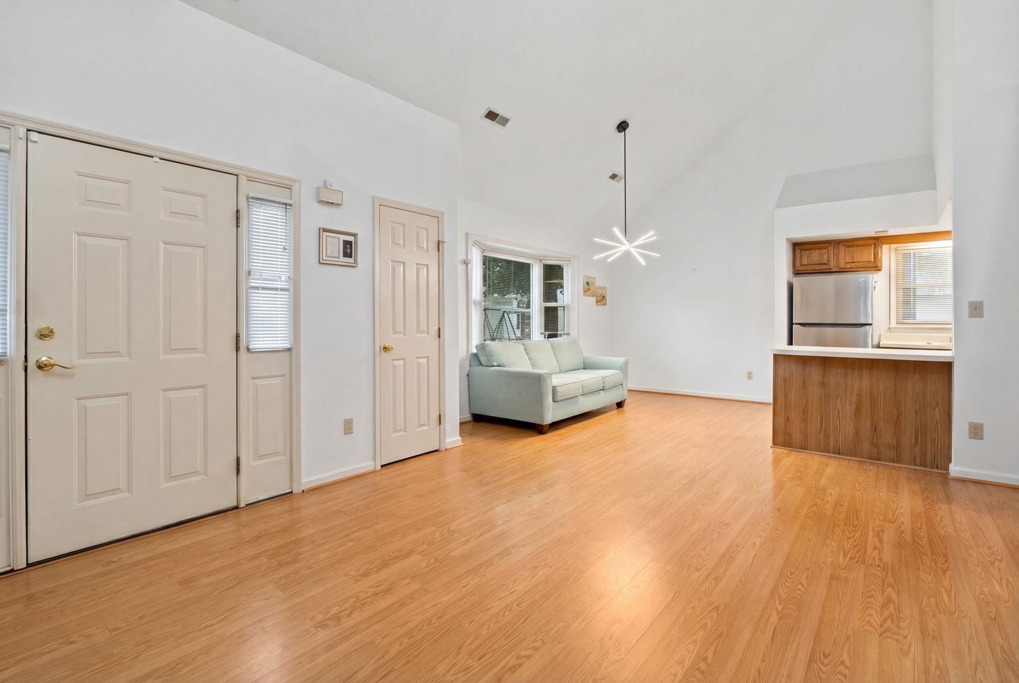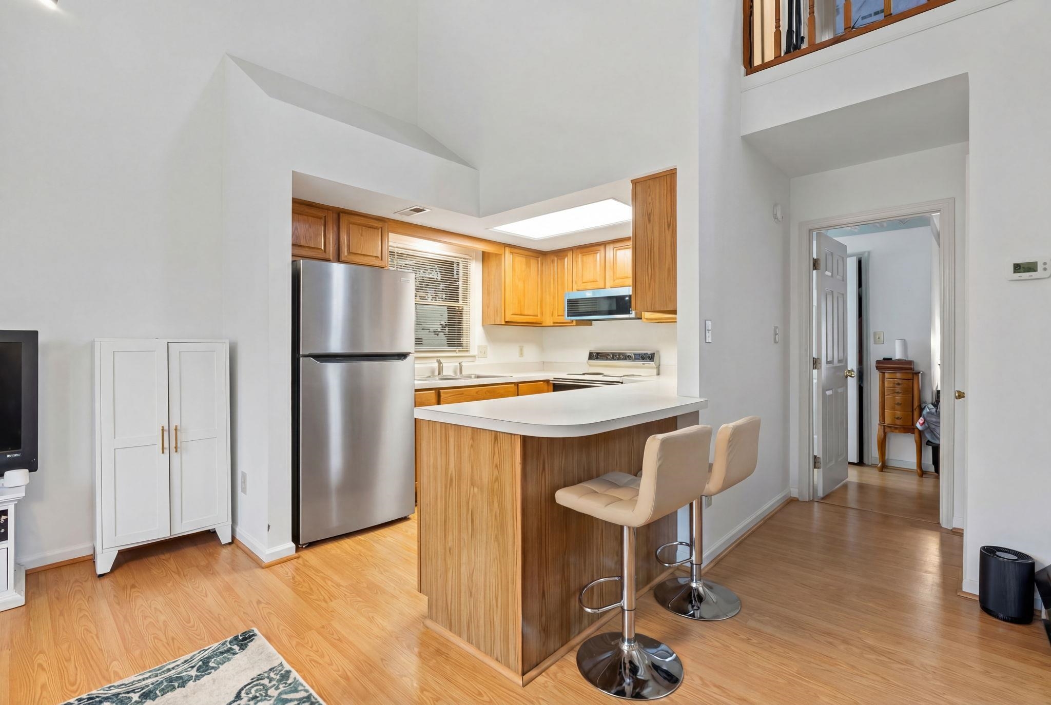 Nestled in the desirable Palmwood Estates community of North Myrtle Beach, this charming coastal retreat offers the perfect blend of comfort and convenience just a short walk or golf cart ride from the ocean. The well-maintained interior features a spacious, sun-drenched layout highlighted by soaring vaulted ceilings and durable laminate flooring throughout the main living areas. At the heart of the home, the kitchen is equipped with solid wood cabinetry, and a breakfast bar, that overlooks the open concept living and dining spaces. The primary suite is a private haven located on the first floor, with its own direct access to the fenced-in patio and an en-suite bathroom complete with dual sinks and a separate bath area. Upstairs, two additional bedrooms provide versatile space for family, guests, or a dedicated home office. Outdoor living is a breeze on the private side patio, which offers plenty of room for grilling and relaxation. Located in a low-HOA, golf cart-friendly neighborhood with a community pool, this home is an ideal choice for a primary residence, a relaxing second home, or an attractive rental property.