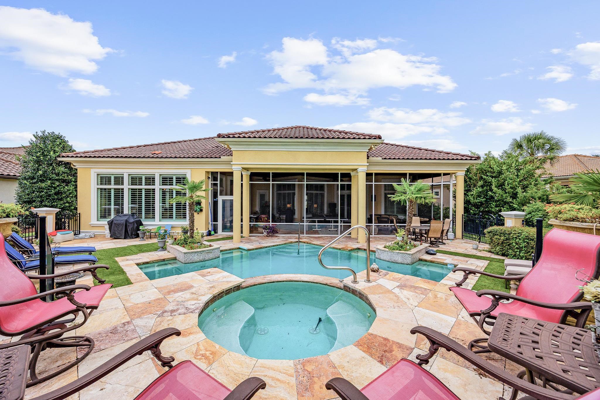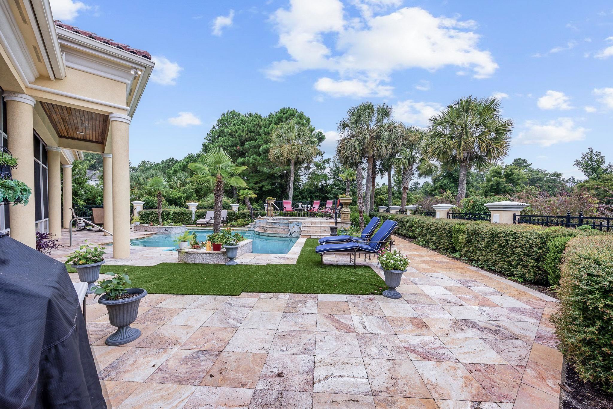 Welcome to this stunning custom-built home located in the prestigious double-gated Tuscany Village section of Grande Dunes in MyrtleBeach, South Carolina. 8969 Bella Verde Court sits on a hole #5 of the Grande Dunes Resort Course and offers ample indoor and outdoor living space and a custom-designed pool and spa. Step inside and you’ll immediately notice the luxury—travertine floors, granitecounter tops, custom cabinetry, and built-ins throughout. Exquisite architectural design, superb artisanship, quality ICF steel-framed construction, and freshly painted inside and outside. The gourmet kitchen features built in appliances, two freezers, a trash compactor, a6 burner gas stove, large island, breakfast bar and dining nook, perfect for both everyday living and entertaining. The owners' suite has a jacuzzi tub, large walk in shower with many different shower heads, double vanity, walk-in closet and sliding doors from the bedroom that lead to the outdoor oasis. 2 more bedrooms each have their own bathrooms and then a half bath off of the kitchen. The layout includes both formal and casual living and dining areas, a home office or study and everything is on one level. Outside there is almost 1000square feet of living area in the screened room. Conveniently there is a door to the half bath and the owners' suite. The pool is salt water with unique and rare tile mosaics and a brand new pool heater. Tucked away in one of the most sought-after and guard gated neighborhoods on the Grand Strand, this home offers an incredible lifestyle that’s hard to beat. You’re just minutes from the beach, shopping, restaurants, and airport—but still get to enjoy the peace and quiet of a resort-style community. Here, you’ll have access to top-notch amenities including two 18 hole golf courses, a deep-water marina, tennis courts, fitness centers, walking and biking trails, and options for on-site dining. Plus, ownership includes membership to the exclusive Grande Dunes Ocean Club, where you can golf cart to the exclusive oceanfront pool, restaurant, bar, and beach access. Schedule your tour today and become a part this amazing community in a fantastic home.