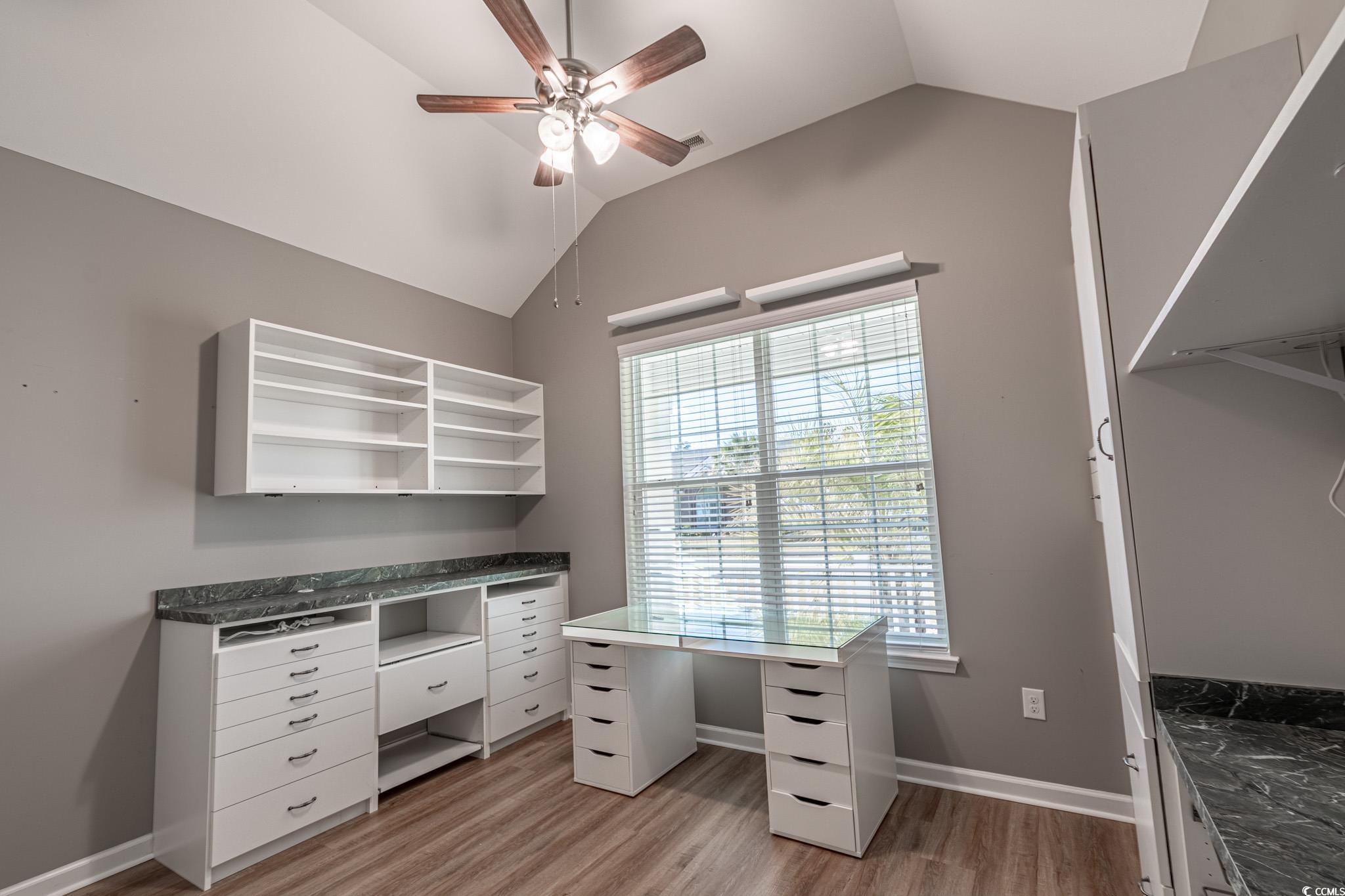 Welcome home to this charming 3-bed, 2-bath residence with a 2-car garage and serene wooded backdrop in the desirable community of Carolina Crossing. Inside, you’ll find a blend of wood, LVP, and tile flooring throughout. The home welcomes you with a covered front porch and a foyer entry that opens to a spacious living and dining area featuring a ceiling fan, board-and-batten wall accents, and a sliding door leading to the screened-in back porch—perfect for relaxing and enjoying the private views. The kitchen offers granite countertops, stainless steel appliances, a stylish tile backsplash, staggered cabinetry, pantry, and a breakfast bar ideal for casual meals. The primary suite features a ceiling fan, walk-in custom closet, and a private bath complete with dual vanities, a deep soaking tub, and a separate walk-in shower. Bedroom two showcases vaulted ceilings, a ceiling fan, built-in cabinetry, and a custom closet, while bedroom three includes a ceiling fan and a spacious closet. Both share a hall bath with a vanity and a tub/shower combination. A large laundry room and mudroom provide additional convenience. Enjoy low maintenance living with Carolina Crossing’s HOA, which covers lawn care, irrigation, trash pickup, internet, and access to community amenities including a pool and clubhouse. Conveniently located just a short drive from Little River’s waterfront, area beaches, restaurants, shopping, dining, and entertainment. Square footage is approximate and should be verified by buyers.