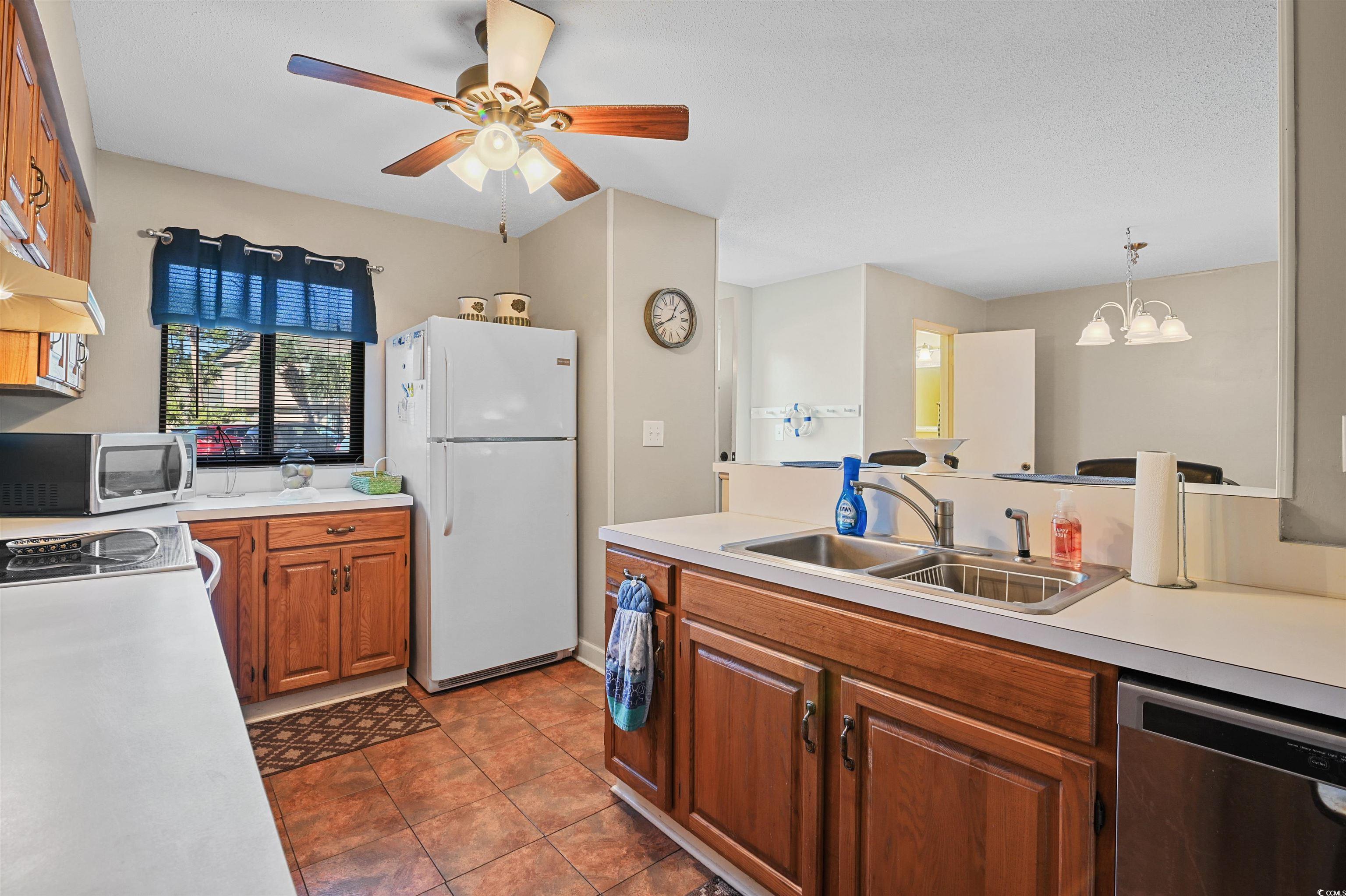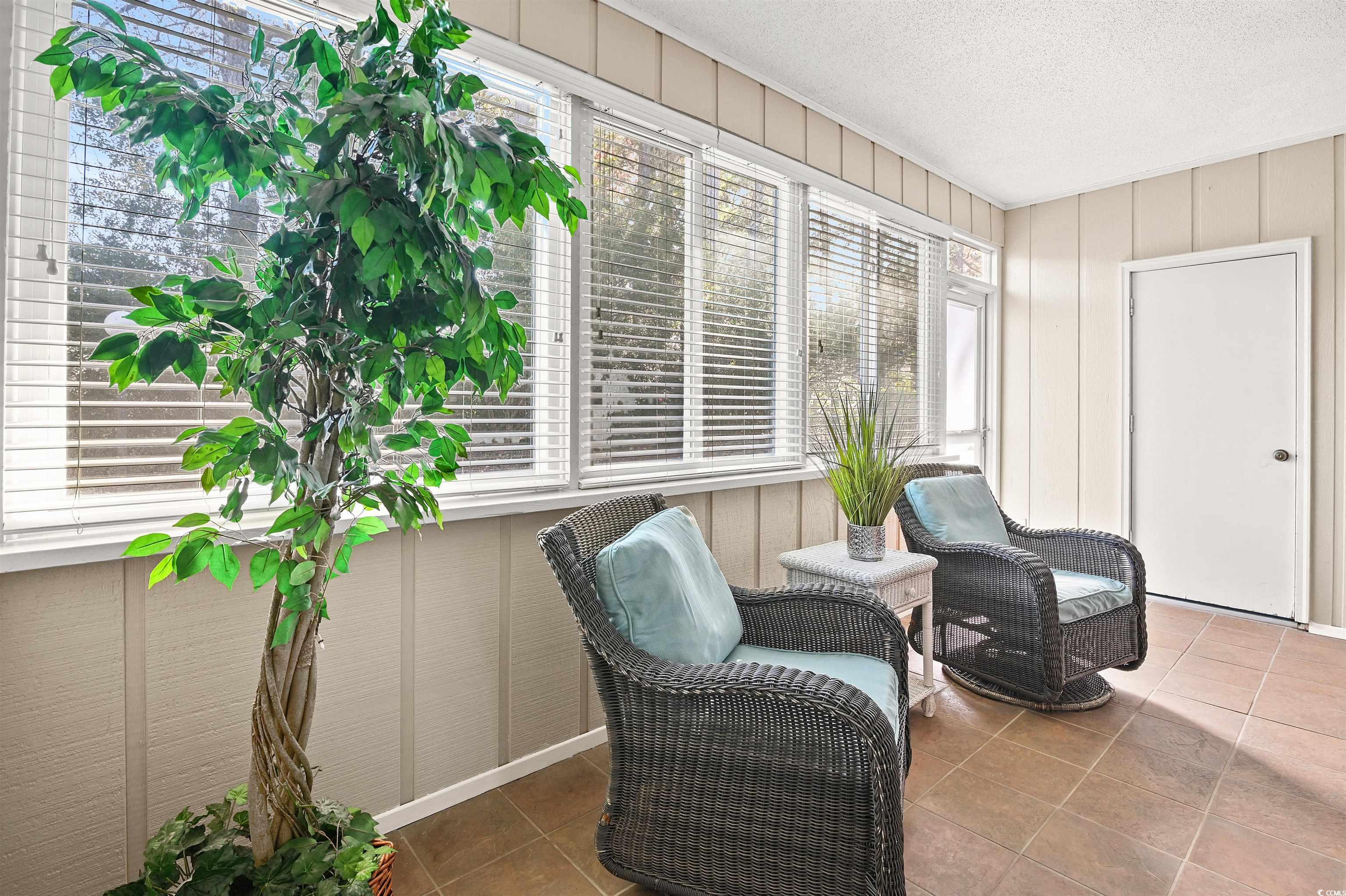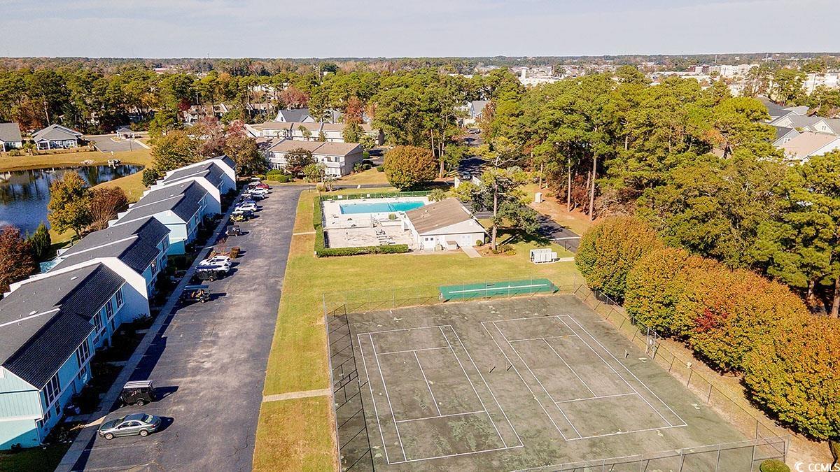 Welcome to this well-maintained, fully furnished 3-bedroom, 2.5-bath townhome located East of Highway 17 in the desirable Robbers Roost community of North Myrtle Beach. The first floor features an open floor plan with a raised breakfast bar, dining area, and step-down living room that flows into the bright Carolina room. Enjoy peaceful, tree-lined views and multiple spaces for relaxing or entertaining, including the Carolina room, patio, and balcony. A half bath is located on the main level. Flooring includes vinyl throughout the first floor, tile in the Carolina room, and carpet upstairs. The laundry area is conveniently located in the Carolina room. Upstairs offers three bedrooms and two full baths. The primary suite includes a private bath and a balcony—perfect for enjoying the coastal breeze. All bedrooms feature ceiling fans for added comfort. Recent updates include a new drainage system completed in 2025 (assessment paid in full) and fresh paint throughout the first floor. This home is move-in ready and being sold fully furnished, making it ideal as a primary residence, vacation home, or investment property. Robbers Roost offers a peaceful setting just minutes from the beach, shopping, dining, and entertainment—all accessible by golf cart. These townhomes in this community rarely stay on the market long. Contact your agent for showing.