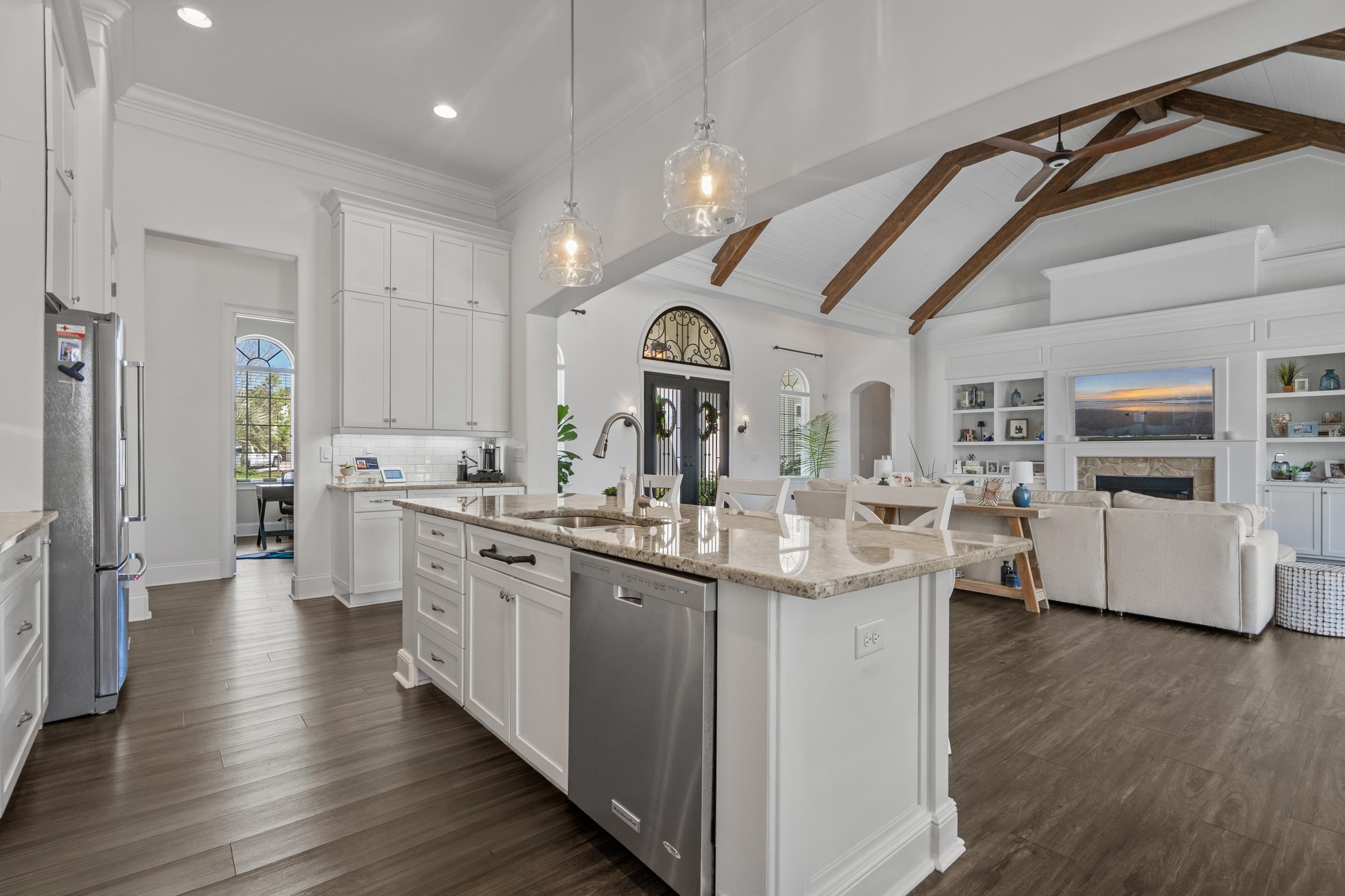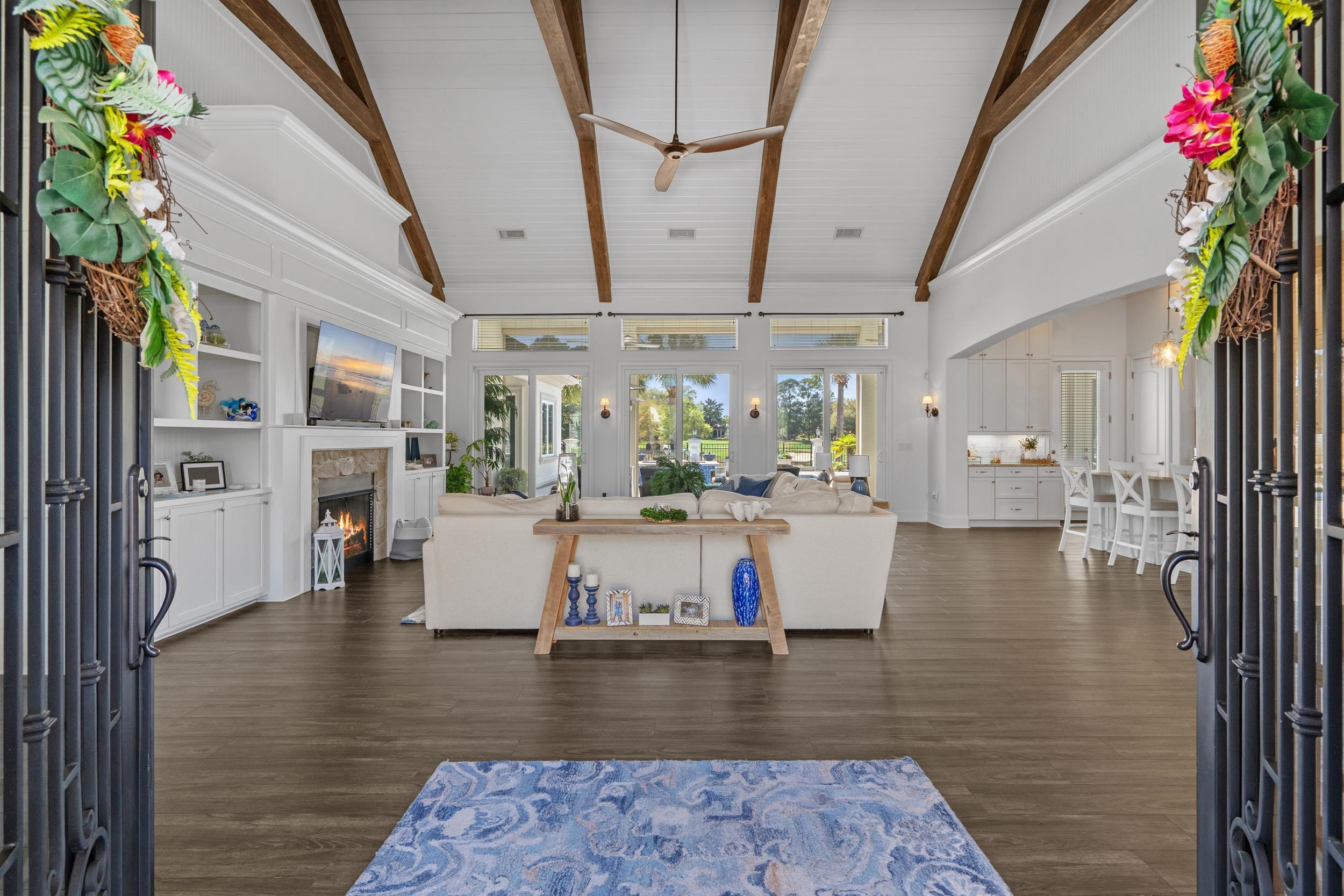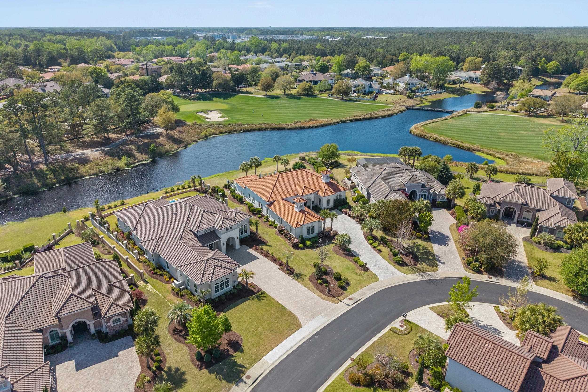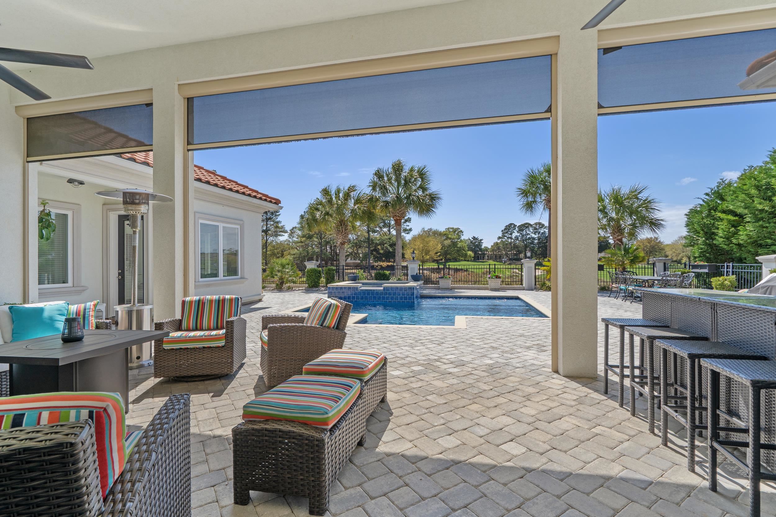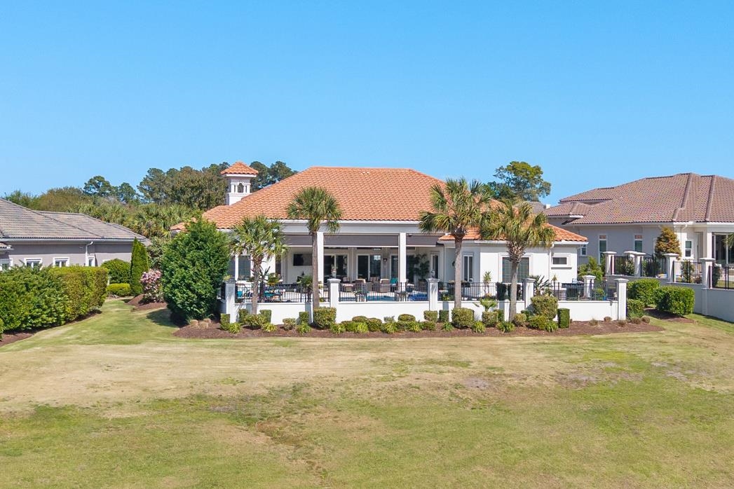 Spectacular dream home is available for purchase in the master-planned Grande Dunes coastal community. This property is in the Villa Venezia section and on a cul-de-sac that abuts a lake. Grande Dunes is a master-planned premier 2,200-acre coastal community that stretches from the Atlantic Ocean to the Carolina Bays Preserve and offers unmatched amenities, including a 25,000-square-foot Ocean Club with oceanfront pools and dining, two championship 18-hole golf courses, a deep-water marina, Har-Tru tennis facilities, on-site restaurants, and miles of scenic biking and walking trails. The house has over 4,800 square feet under roof, and offers one of the best golf course and water views in the neighborhood. The golf course view is of the 13th green, and the beauty of the tranquil lake compliment your newly updated saltwater pool and hot tub. This home is all on one level, and move in ready on 1/2 acre lot. Featuring 4 bedrooms plus an office, 4 full and one half baths, a 3 car garage, as well as a spacious saltwater pool and hot tub. One of the bedrooms is an in-law suite with it's own private entrance, a coffee/refreshment bar, and full bath. Open, bright, and spacious floor plan is ideal for entertaining, with an over-sized center kitchen island adjacent to the great room. The great room is a comfortable space for gathering, and has soaring, vaulted ceilings with decorative beams that greet you when you walk in the front door. A few other attributes not to miss are, a cozy fireplace in the great room, built in bookshelves in the great room, extended cabinets in the kitchen, granite counter tops, plenty of closet and storage space, walk up storage over the 3 car garage, and much more. Walk outside to the over-sized covered veranda in the rear, and you will discover some of the best views and sunsets Grande Dunes has to offer. The covered veranda has motorized screens. Behind the covered veranda is the saltwater pool, hot tub, where you can relax in private and enjoy a peaceful soak. Also there is an open air sunbathing area. Not to be missed are the bubble gum/cotton candy hued sunsets painting the sky nightly as the sun slips down into the inland waterway in the distance. These sunsets are what first captivated the current owner, and will surely do the same for you. Not to be missed, schedule your showing today and welcome home !