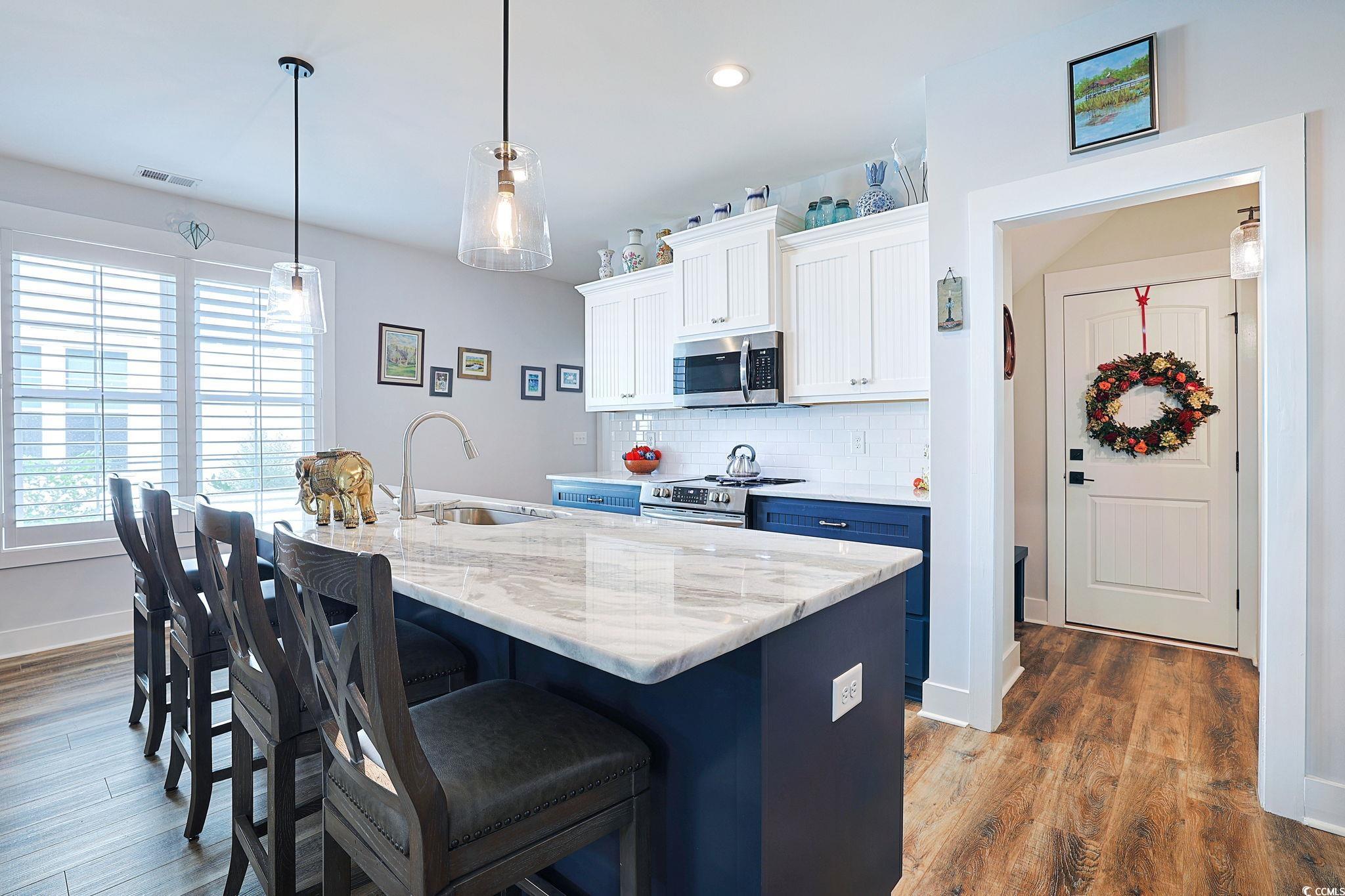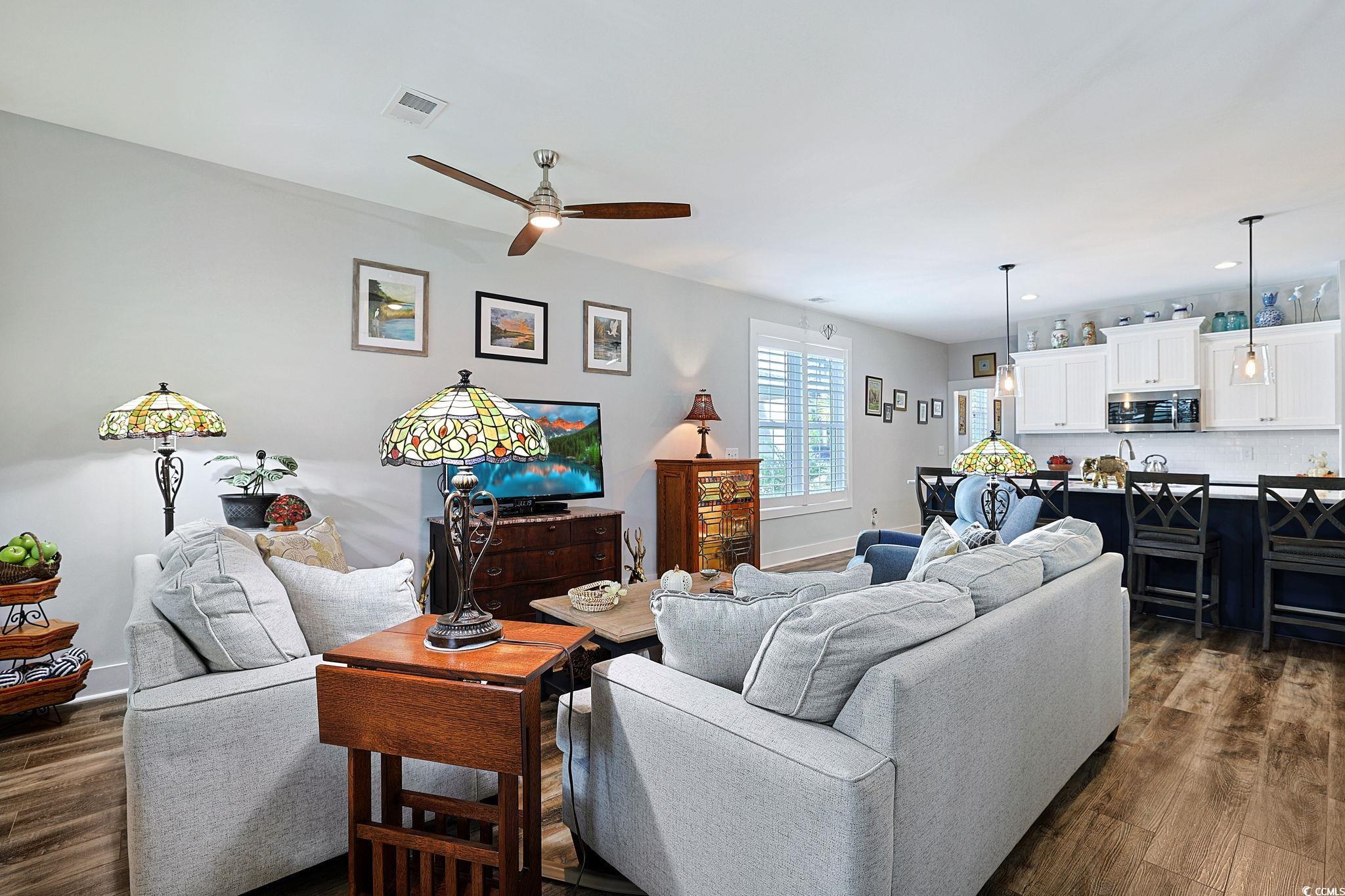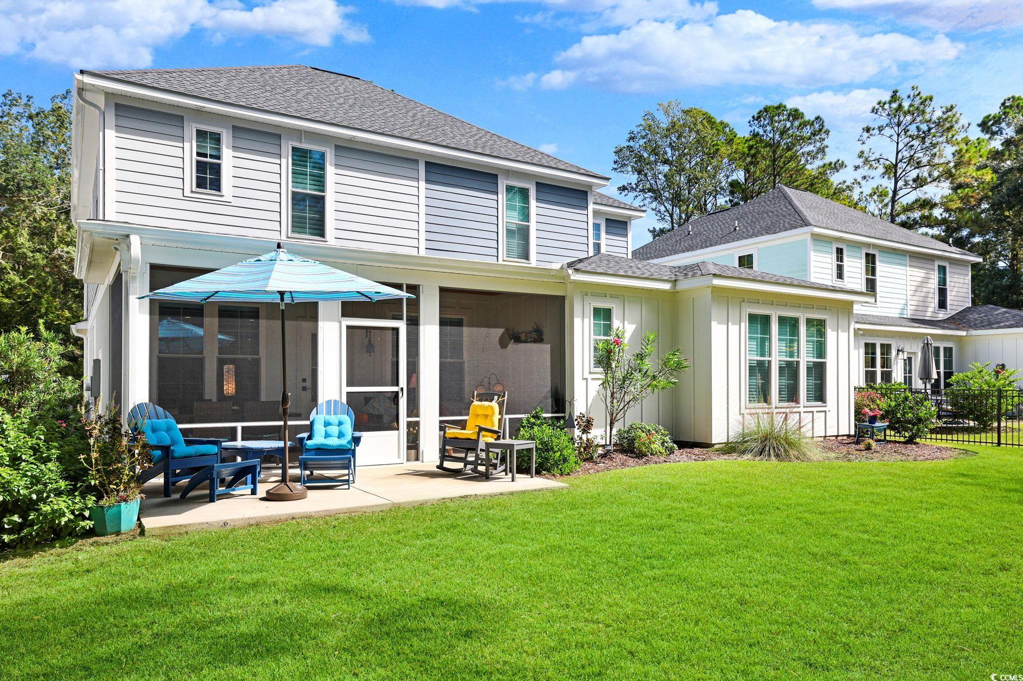 Presenting this distinctive 3 bedroom, 2.5 bath 2 story townhome located in the very quiet Indigo Trace community. This piece of paradise features a welcoming front porch, wood look LVP & tile flooring, smooth flat ceilings, plantation blinds, upgraded ceiling fans, a guest powder room with a vessel sink. The open concept floor plan creates a seamless flow between kitchen, dining and living room and showcases access to the delightful screened-in back patio that includes a natural wood shiplap ceiling with recessed lighting along with a sun shade, ceiling fan, and with cable TV access. The family friendly kitchen is equipped with a stainless steel appliance package, elegant marble counter tops, cabinets topped with crown moulding, a coffee niche, and a practical kitchen island with a breakfast bar. As you venture upstairs you will find the primary bedroom with a ceiling fan, ensuite bath hosting a dual sink vanity, an extra cabinet, a deluxe step-in shower, and a large walk-in closet. The upstairs level also includes two additional bedrooms connected by a full Jack & Jill bath with barn doors, and an ideal laundry room. This memorable home is finished with an uncovered extended patio great for grilling or relaxing. A single car attached garage with built-in storage shelves. This home is perfect for buyers looking for a newer structure with upgraded finishes, and easy access to the beaches, golfing along with other activities in Myrtle Beach, Georgetown, and Murrells Inlet including great restaurants, award winning off-Broadway shows, public fishing piers, Marsh Walk, and exceptional shopping adventures along the Grand Strand. Conveniently located to your everyday needs, including grocery stores, bakeries, banks, post offices, medical centers, doctors’ offices, and pharmacies. Approx. 70 miles to historic Charleston. Check out our state of the art 3-D Virtual Tour.