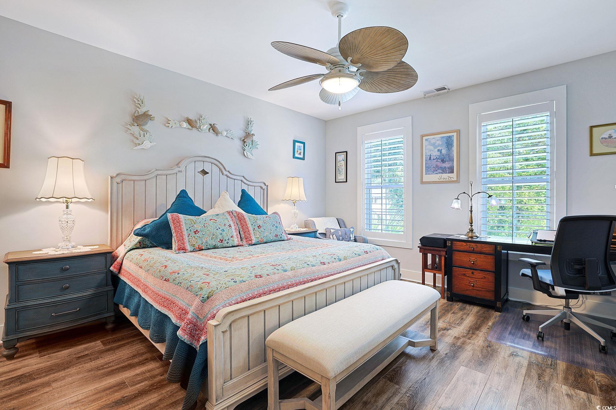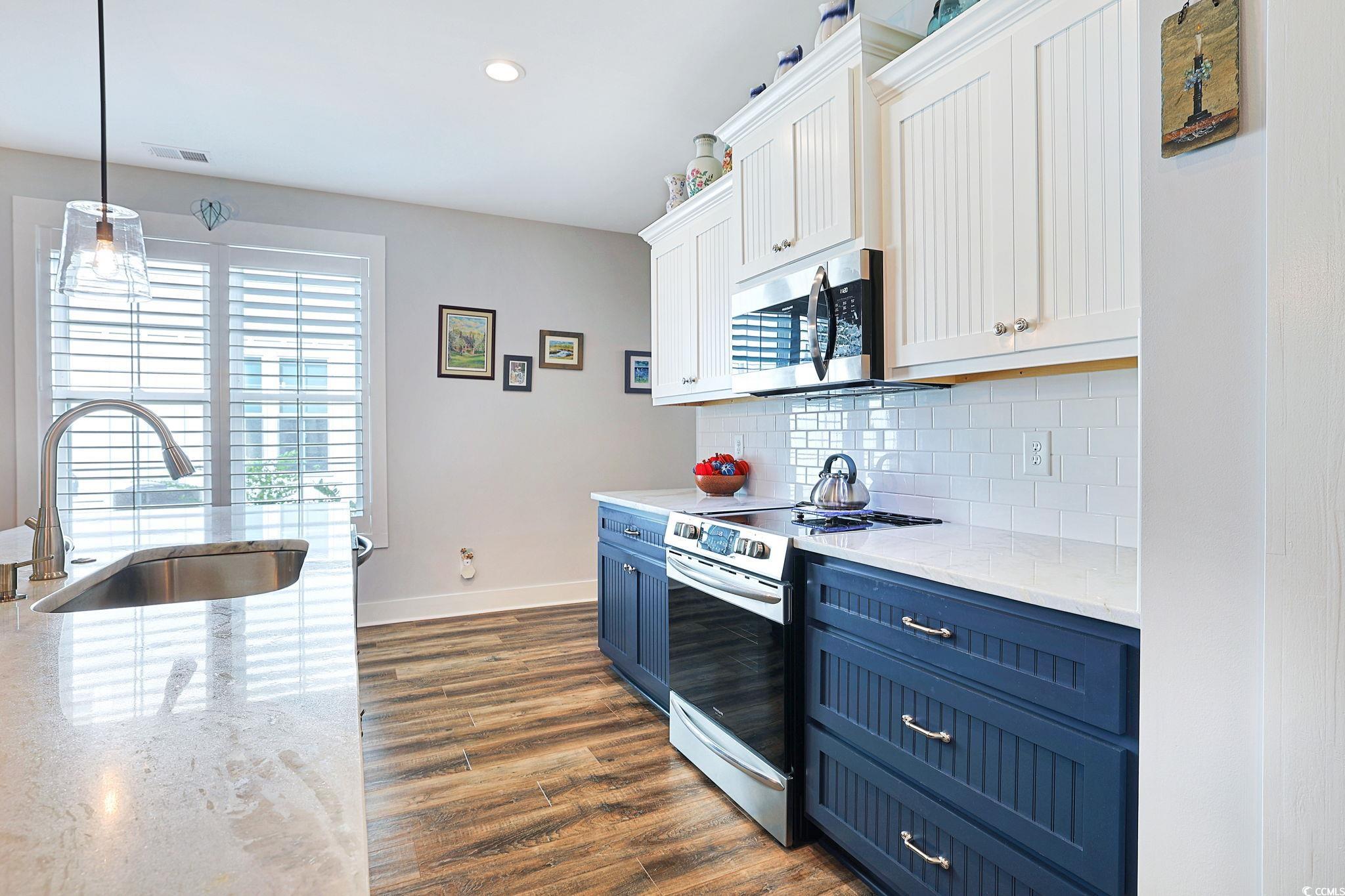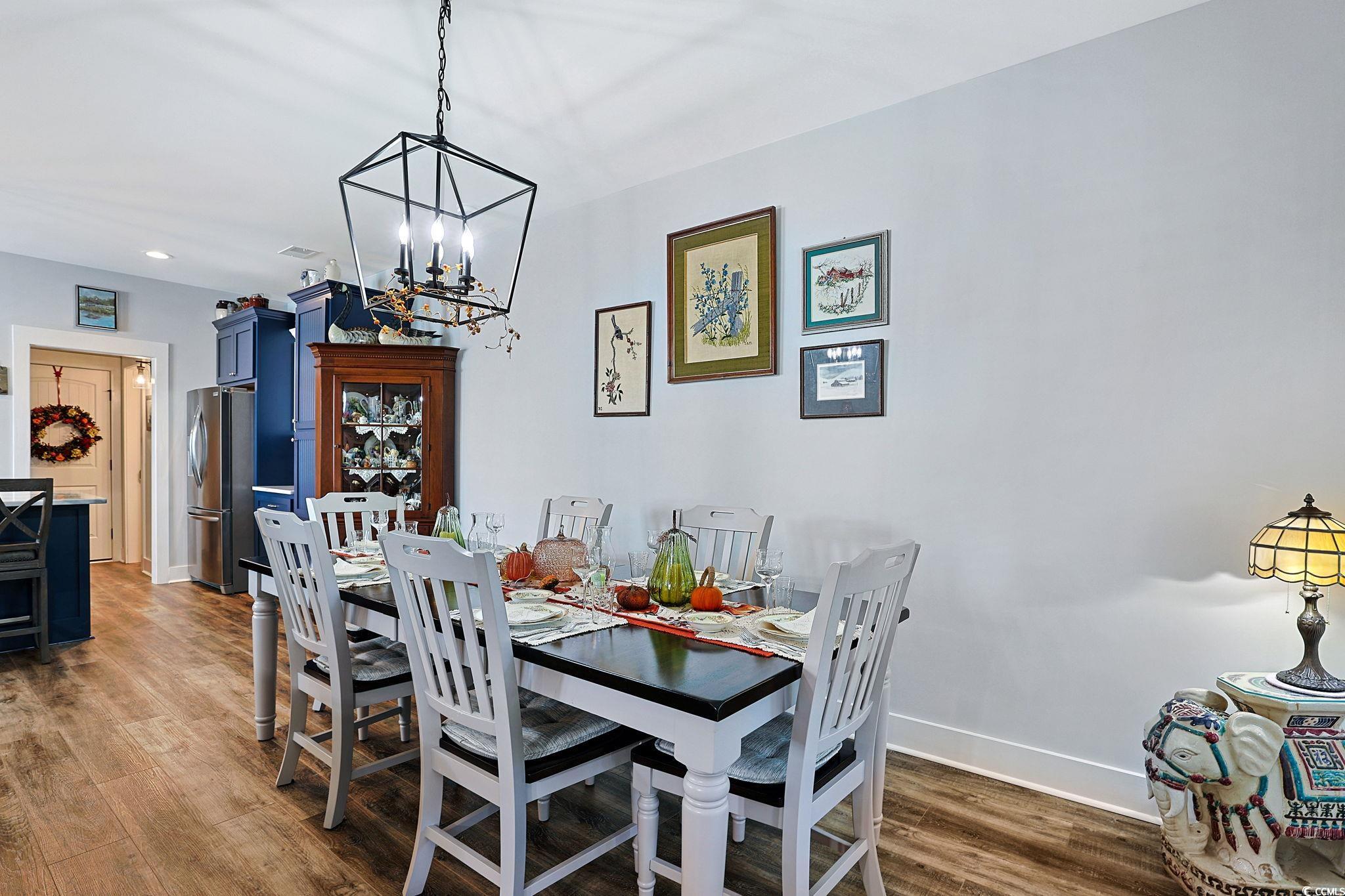 Presenting this distinctive 3 bedroom, 2.5 bath 2 story townhome located in the very quiet Indigo Trace community. This piece of paradise features a welcoming front porch, wood look LVP & tile flooring, smooth flat ceilings, plantation blinds, upgraded ceiling fans, a guest powder room with a vessel sink. The open concept floor plan creates a seamless flow between kitchen, dining and living room and showcases access to the delightful screened-in back patio that includes a natural wood shiplap ceiling with recessed lighting along with a sun shade, ceiling fan, and with cable TV access. The family friendly kitchen is equipped with a stainless steel appliance package, elegant marble counter tops, cabinets topped with crown moulding, a coffee niche, and a practical kitchen island with a breakfast bar. As you venture upstairs you will find the primary bedroom with a ceiling fan, ensuite bath hosting a dual sink vanity, an extra cabinet, a deluxe step-in shower, and a large walk-in closet. The upstairs level also includes two additional bedrooms connected by a full Jack & Jill bath with barn doors, and an ideal laundry room. This memorable home is finished with an uncovered extended patio great for grilling or relaxing. A single car attached garage with built-in storage shelves. This home is perfect for buyers looking for a newer structure with upgraded finishes, and easy access to the beaches, golfing along with other activities in Myrtle Beach, Georgetown, and Murrells Inlet including great restaurants, award winning off-Broadway shows, public fishing piers, Marsh Walk, and exceptional shopping adventures along the Grand Strand. Conveniently located to your everyday needs, including grocery stores, bakeries, banks, post offices, medical centers, doctors’ offices, and pharmacies. Approx. 70 miles to historic Charleston. Check out our state of the art 3-D Virtual Tour.