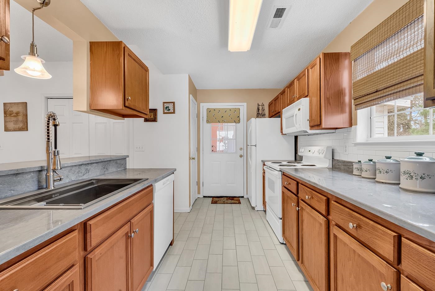 Step onto the inviting front porch and enter a bright, open living and dining area that flows seamlessly into the kitchen. The kitchen features elegant granite countertops, abundant cabinet space, and a charming window that fills the space with natural light. A spacious family room off the living area offers endless possibilities, use it as a game room, a second living space, or even convert part of it into an additional bedroom. Enjoy your morning coffee or afternoon tea in the enclosed porch area, which offers a cozy retreat. The primary bedroom boasts private access to the porch and an en-suite bathroom, while the second bedroom is generously sized for comfort. Plus, the one-car garage provides extra storage and convenience for parking or a potential workshop space. Just minutes from shopping, dining, and less than 15 minutes from the beach! Don't miss out on this wonderful home, schedule your showing today!
