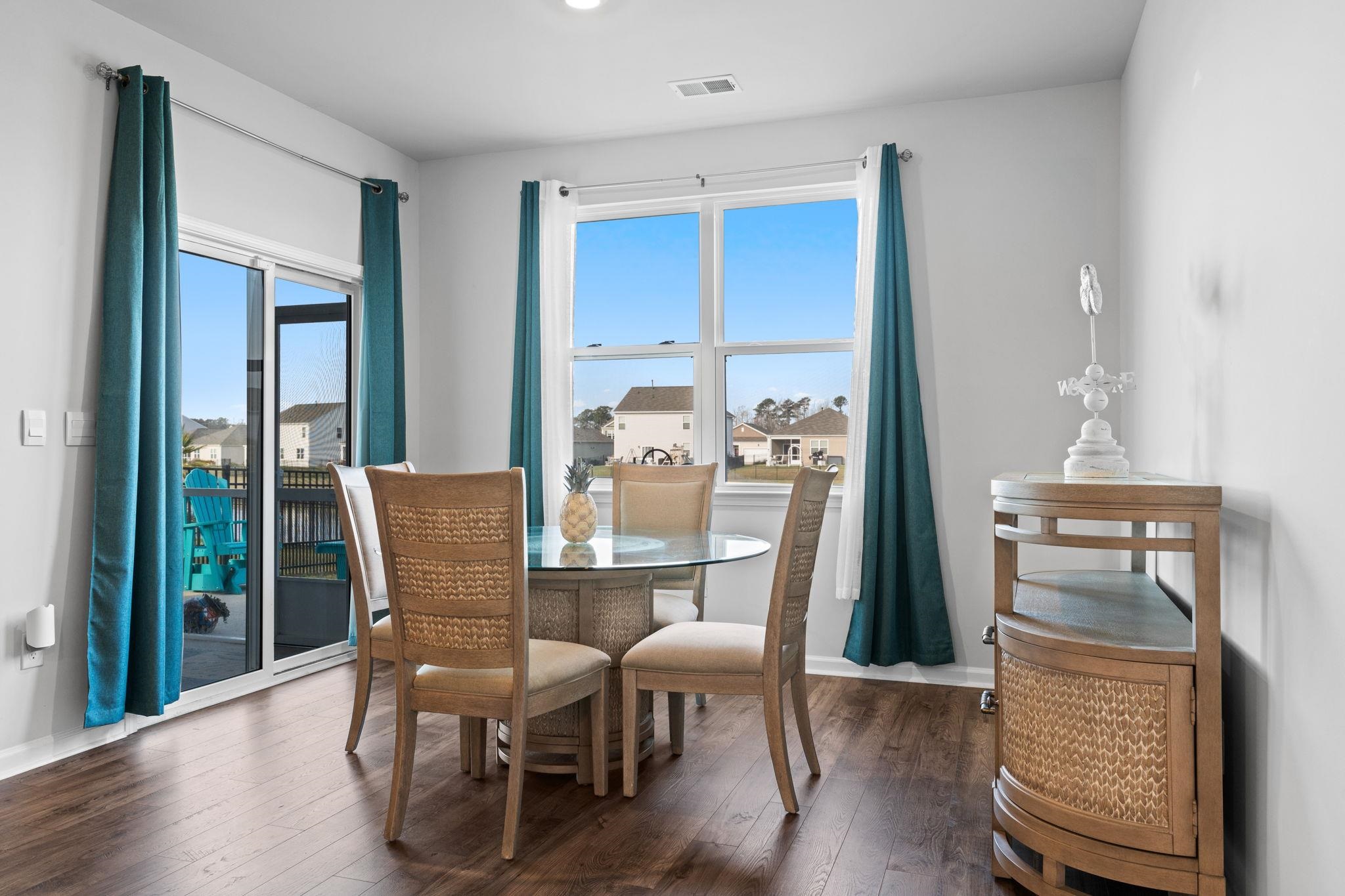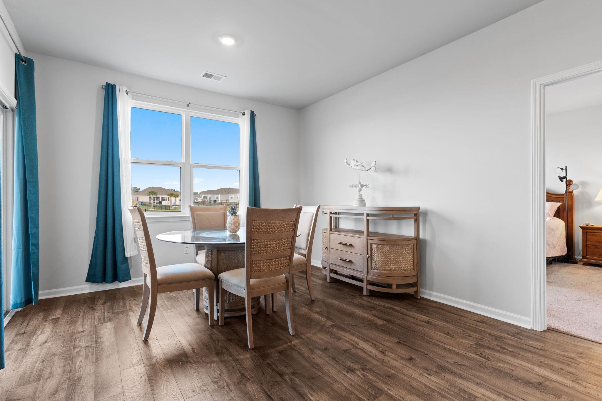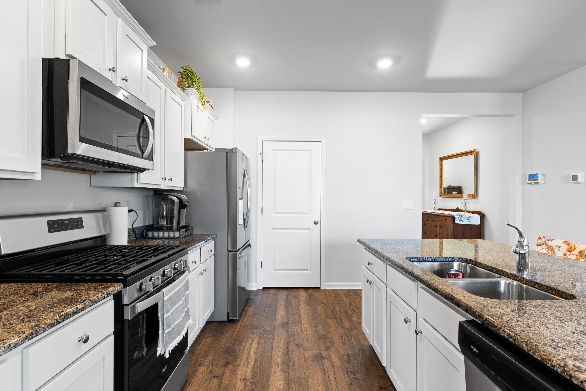 The Aria floor plan offers easy, comfortable living designed to fit every season of life whether you’re stepping into homeownership for the first time or looking to simplify with a thoughtfully designed layout. The open living and kitchen area creates a welcoming space that’s perfect for hosting friends or enjoying quiet evenings at home. You’ll love the stylish finishes, including painted cabinetry, granite countertops, stainless steel appliances, and durable wood-look flooring throughout the main living spaces. Tall ceilings enhance the airy feel, while a spacious pantry provides plenty of storage. The split-bedroom layout offers added privacy, with a serene primary suite tucked away from the secondary bedrooms. Step outside to a covered back porch overlooking a peaceful pond view even better, the yard is fully fenced, making it ideal for pets, play, or simply relaxing and enjoying the scenery. This home is also equipped with smart home technology, allowing you to control features like keyless entry and video doorbell access with ease modern convenience designed to keep up with your lifestyle. Located in a community known for its exceptional amenities, this property truly combines comfort, style, and convenience in one beautiful package.