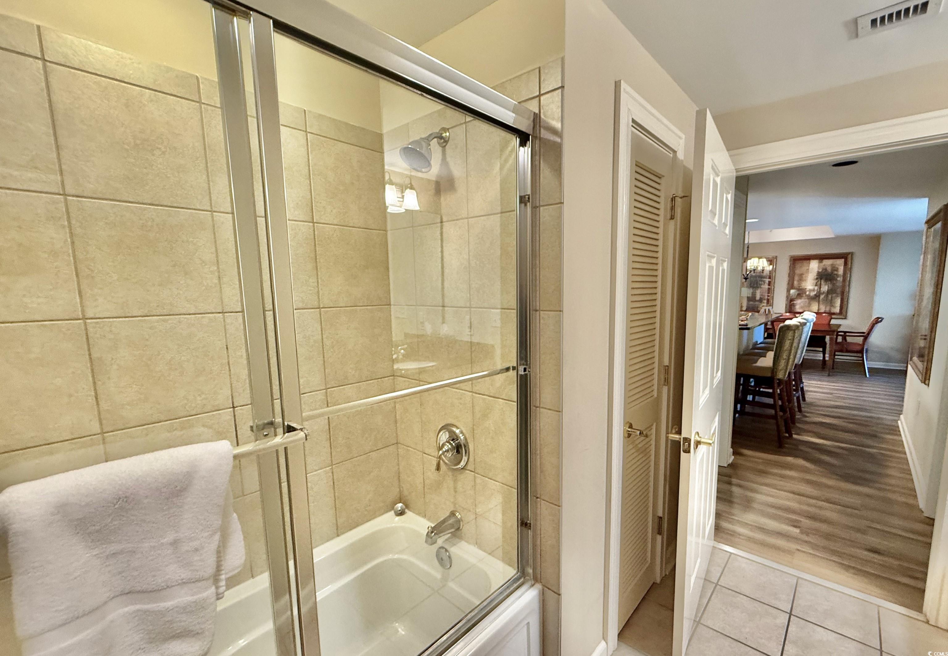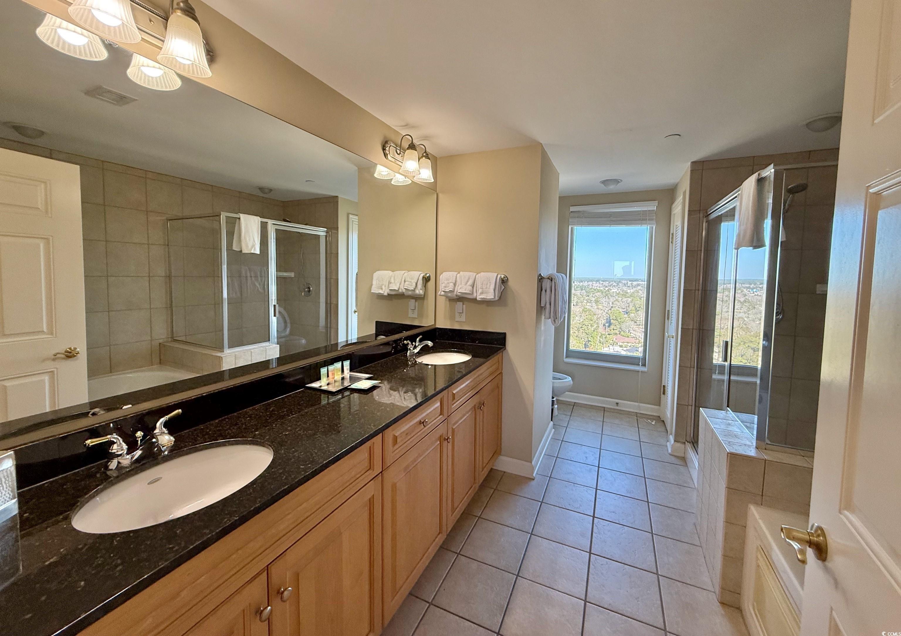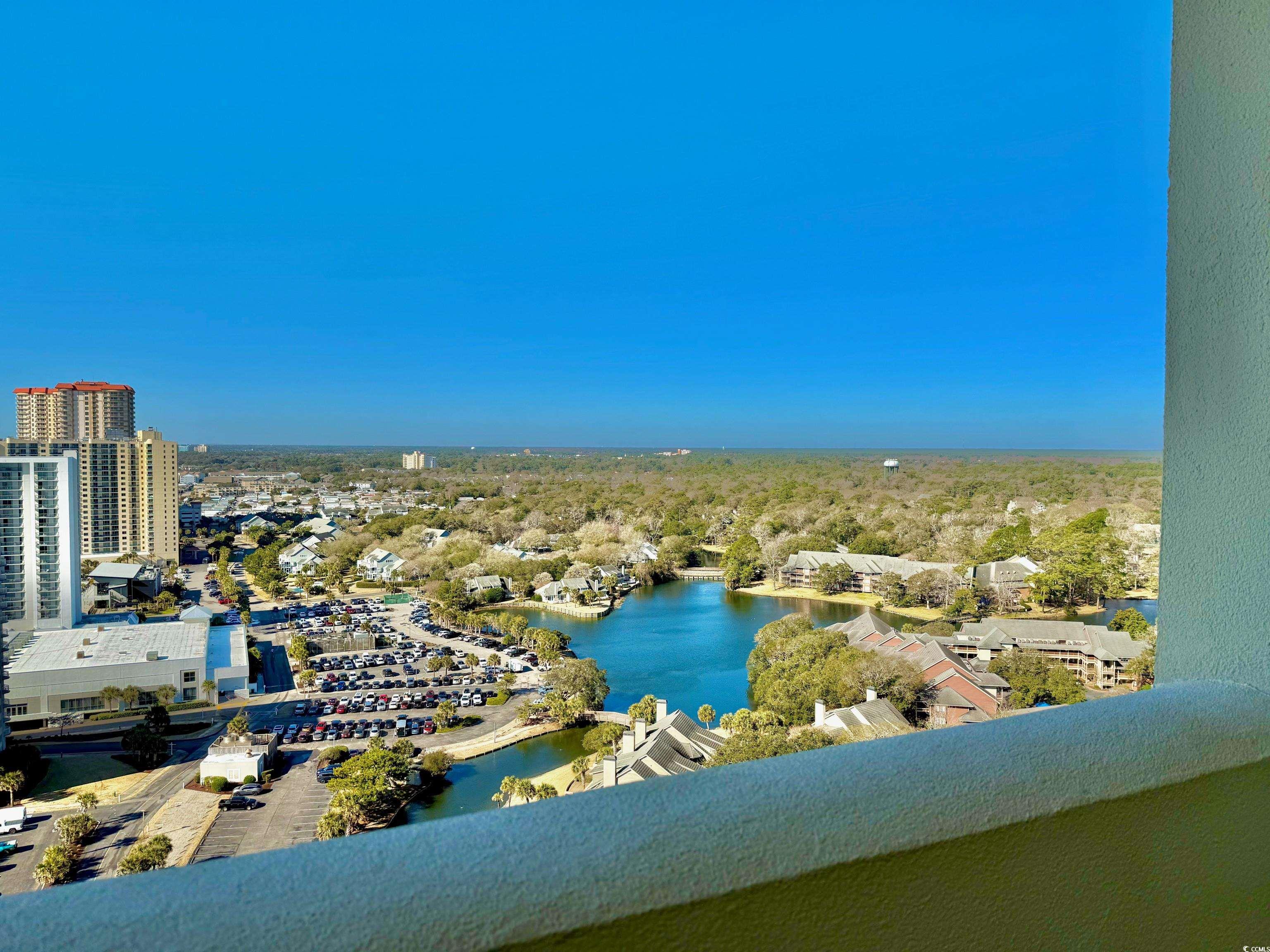 Enjoy breathtaking views of the ocean from every corner of the living room and master bedroom of this three-bedroom, three-bathroom condo in the prestigious Royale Palms. The Royale Palms is connected by a covered glass walkway to the Myrtle Beach Hilton Hotel. Located on the 21st floor, this oversized condo offers an unparalleled combination of luxury, convenience and scenic beauty. Open concept living - the expansive living and dining area boasts stunning ocean views, with direct access to a spacious balcony, perfect for enjoying the coastal breeze. The dining area comfortably seats eight, while the kitchen features elegant wood and granite finishes, stainless steel appliances, and a breakfast bar with four stools. The master bedroom offers a tray ceiling, balcony access, and mesmerizing ocean views right from the bed. The attached private bath is a true retreat, featuring a whirlpool tub, a separate walk-in shower, and a double vanity with granite countertops. Enjoy spectacular inland views from this oversized bath. The guest bedrooms feature two double beds, offering plenty of space and stunning inland views. The second bedroom has a private bath with a tiled shower, while the third bedroom shares a hall bath with a tub and shower. This condo offers easy access to the beach, as well as Hilton's restaurants and bars, making it an ideal choice for a second home, vacation rental or a primary residence.