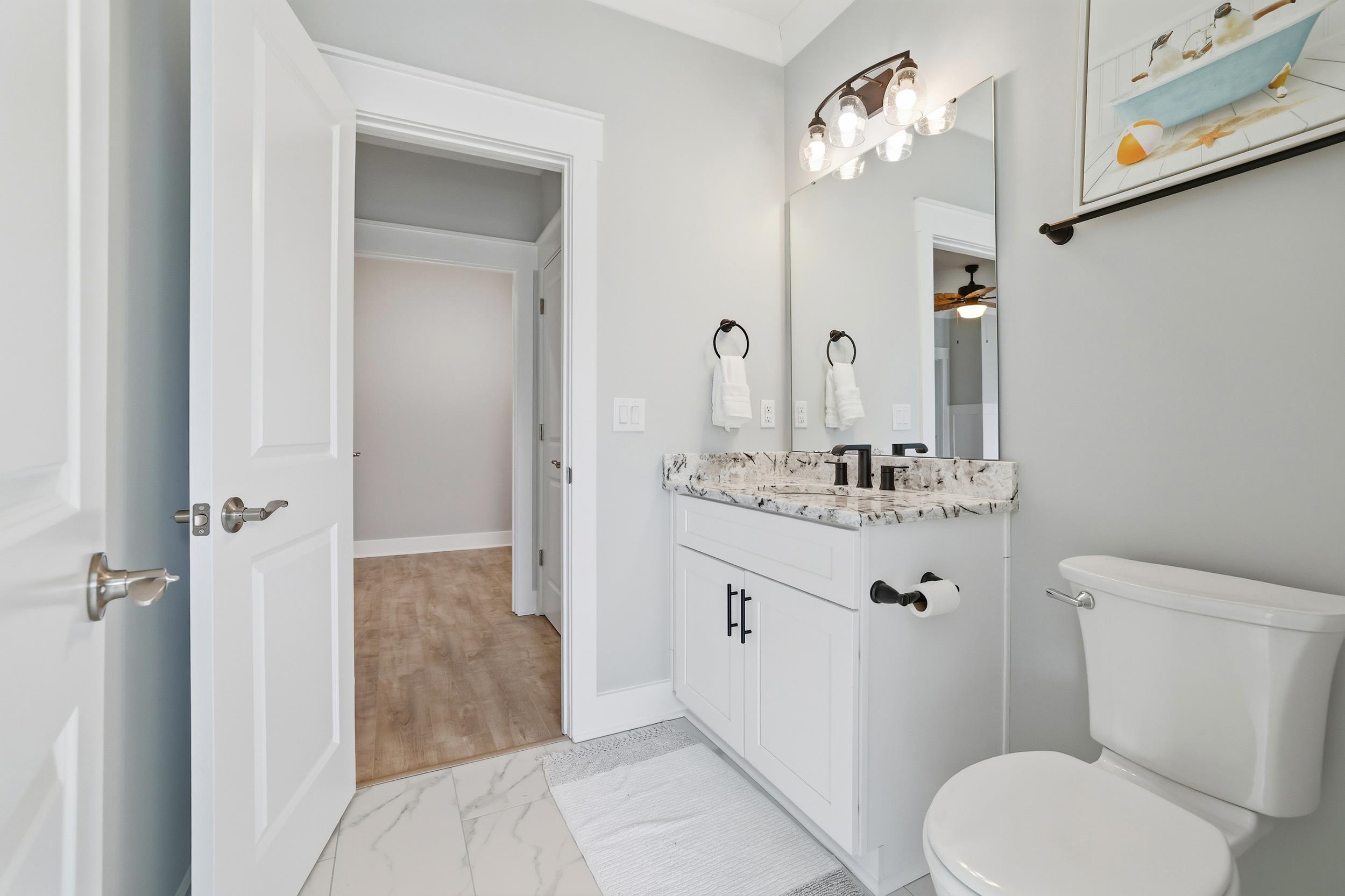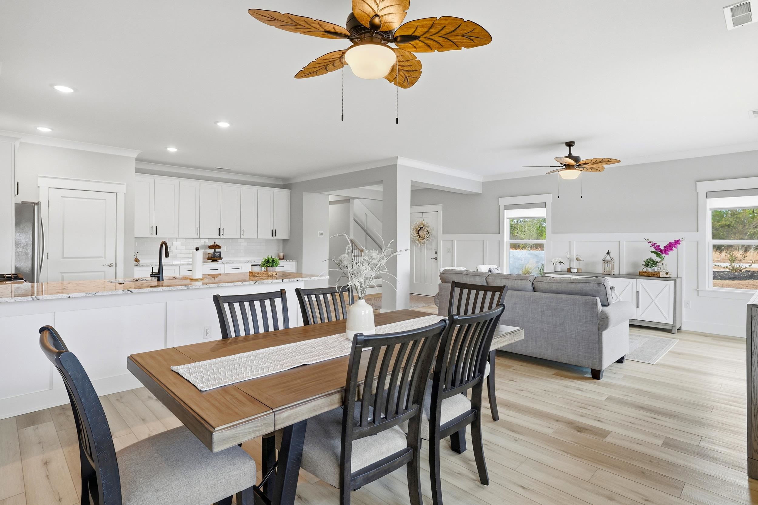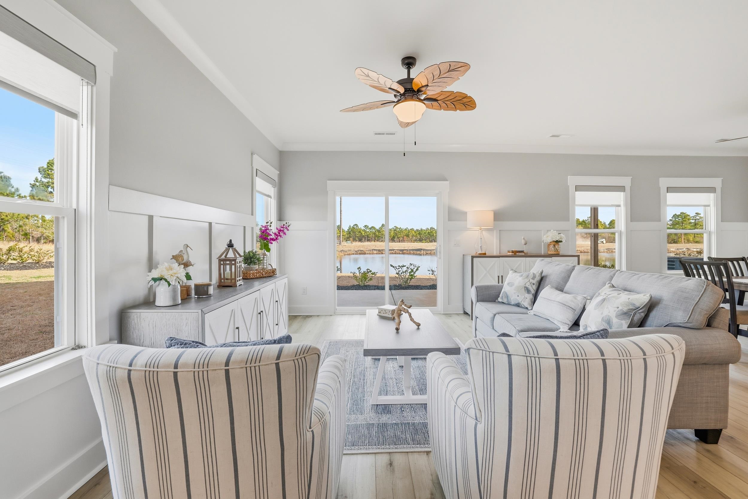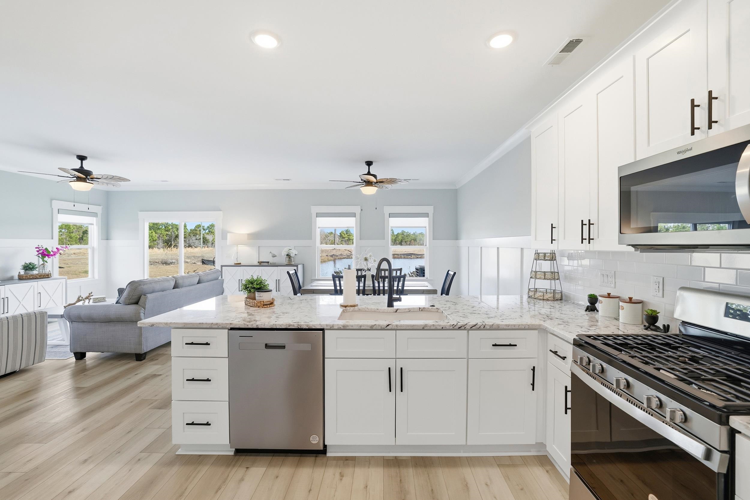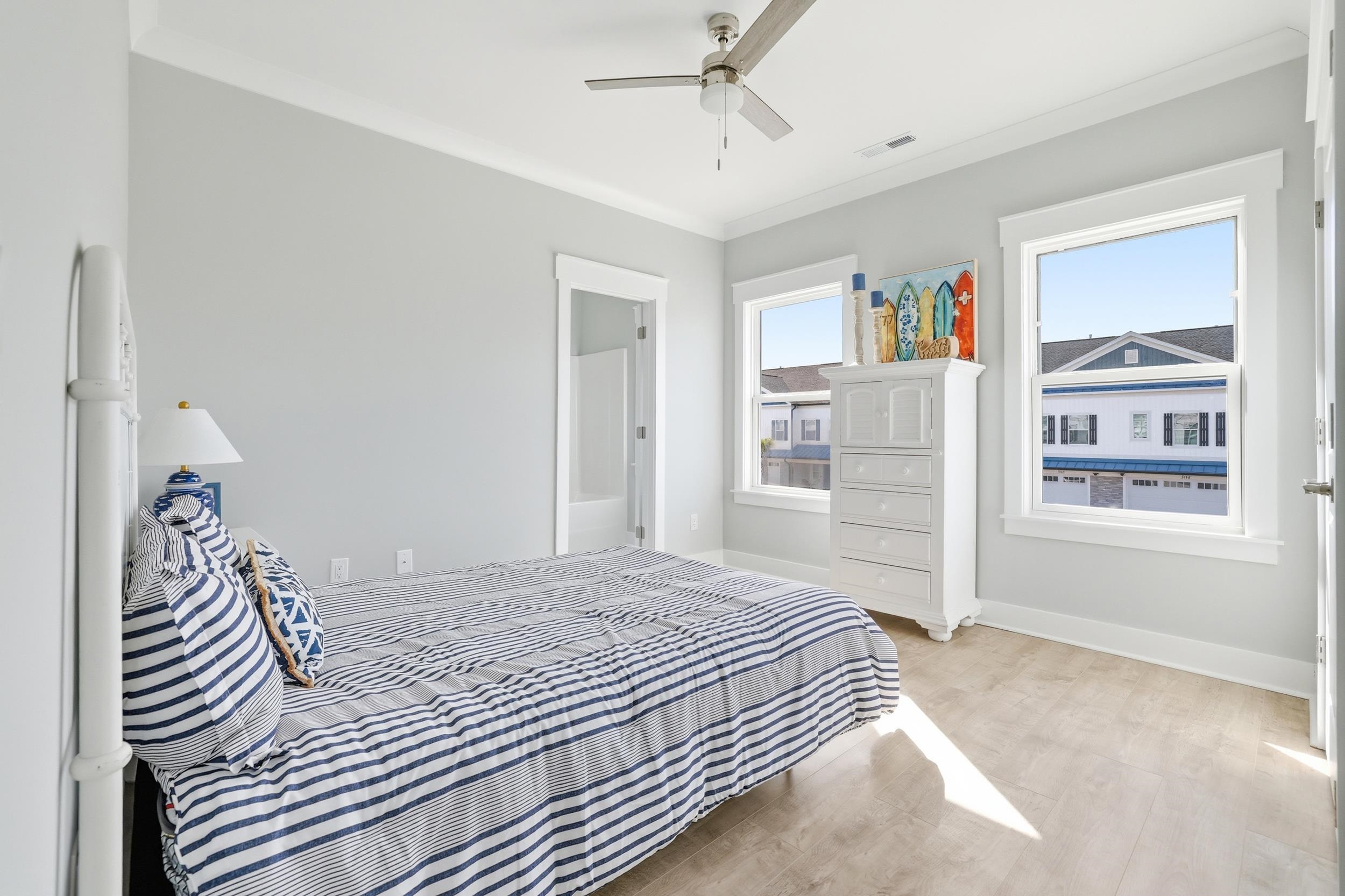 Coastal living, short term rental potential, and resort style amenities all just minutes from the beach and Barefoot Landing. Welcome to Watertower Estates, one of North Myrtle Beach’s most sought after new construction communities, offering a rare combination of true townhome ownership, ownership of the land, short term rentals permitted, natural gas service, and low HOA fees. This modern 5 bedroom 3.5 bath with loft area townhome is fully completed and move in ready, allowing buyers to skip construction delays and rising costs while still enjoying contemporary design. Inside, 9 foot ceilings, luxury vinyl plank flooring, crown molding, 3¼ window trim, and 5¼ baseboards create a clean upscale feel throughout. The open concept layout flows into a stunning kitchen with granite countertops, tile backsplash, stainless steel appliances including refrigerator, large breakfast island, and a spacious walk in pantry, ideal for entertaining and everyday coastal living. The main level includes a half bath, generous laundry room, and access to a finished 2 car garage with painted walls and hung drywall for a polished low maintenance experience. Upstairs, the owners suite offers a private retreat with sitting area, dual walk in closets, double vanity, private water closet, tiled walk in shower, and a private balcony overlooking the pond, perfect for quiet mornings and relaxed evenings. Two additional bedrooms share a Jack and Jill bath, offering flexibility for guests, family, or maximizing rental potential. Life at Watertower Estates feels effortless, with an amenity rich setting that includes a pool, pickleball courts, clubhouse, and peaceful lake views woven into the community. Whether your day starts with a swim, a morning round of golf, pickleball with friends, or a quiet walk by the water, every detail is designed to feel like a getaway. Step outside the neighborhood and you are just minutes from North Myrtle Beach beaches, shopping, dining, and championship golf, creating a location that consistently performs for both lifestyle buyers and investors. Opportunities that combine modern construction, strong rental appeal, and this level of access to everything the area offers do not come around often, and this is a property that continues to make sense long after closing.